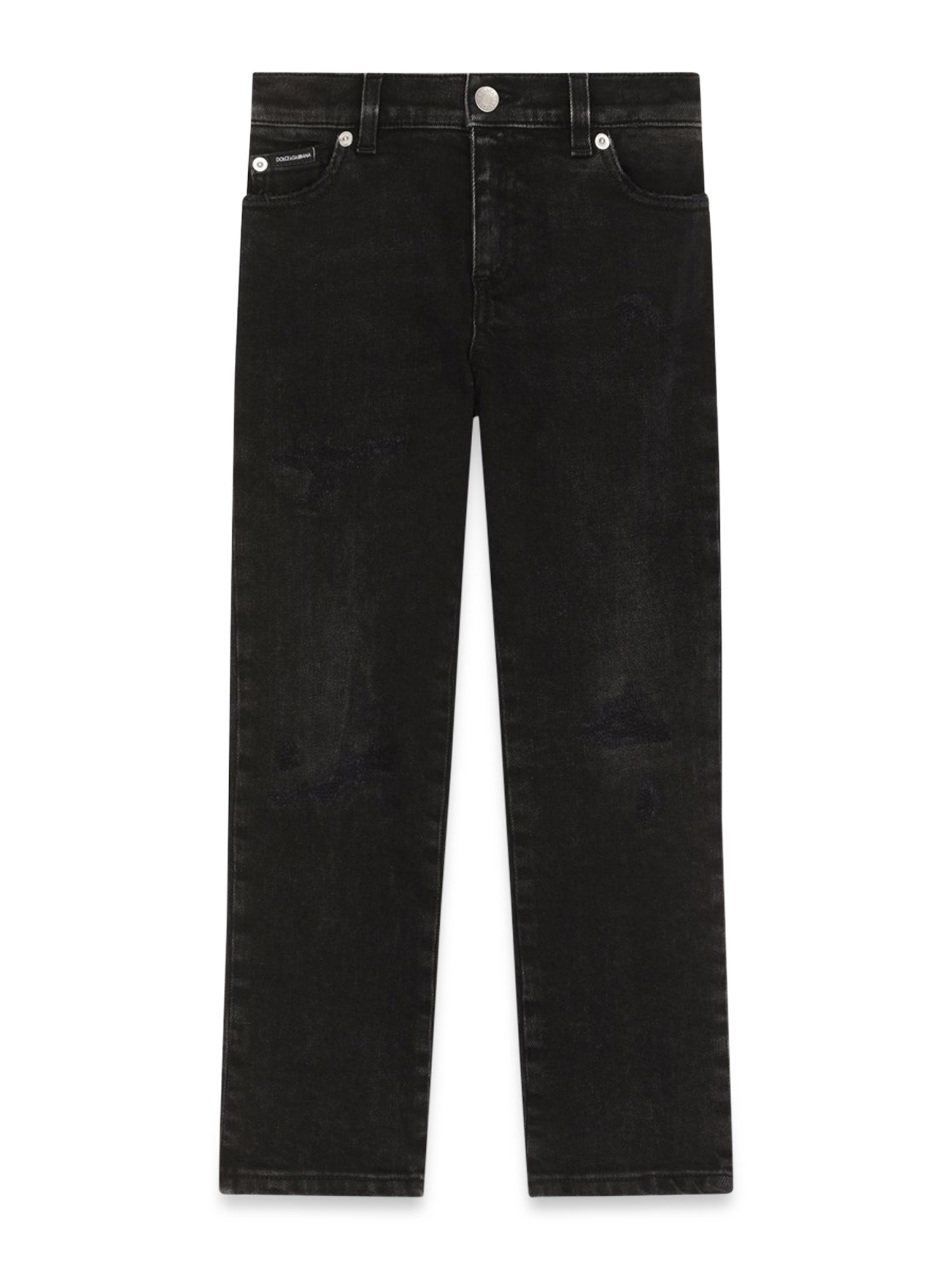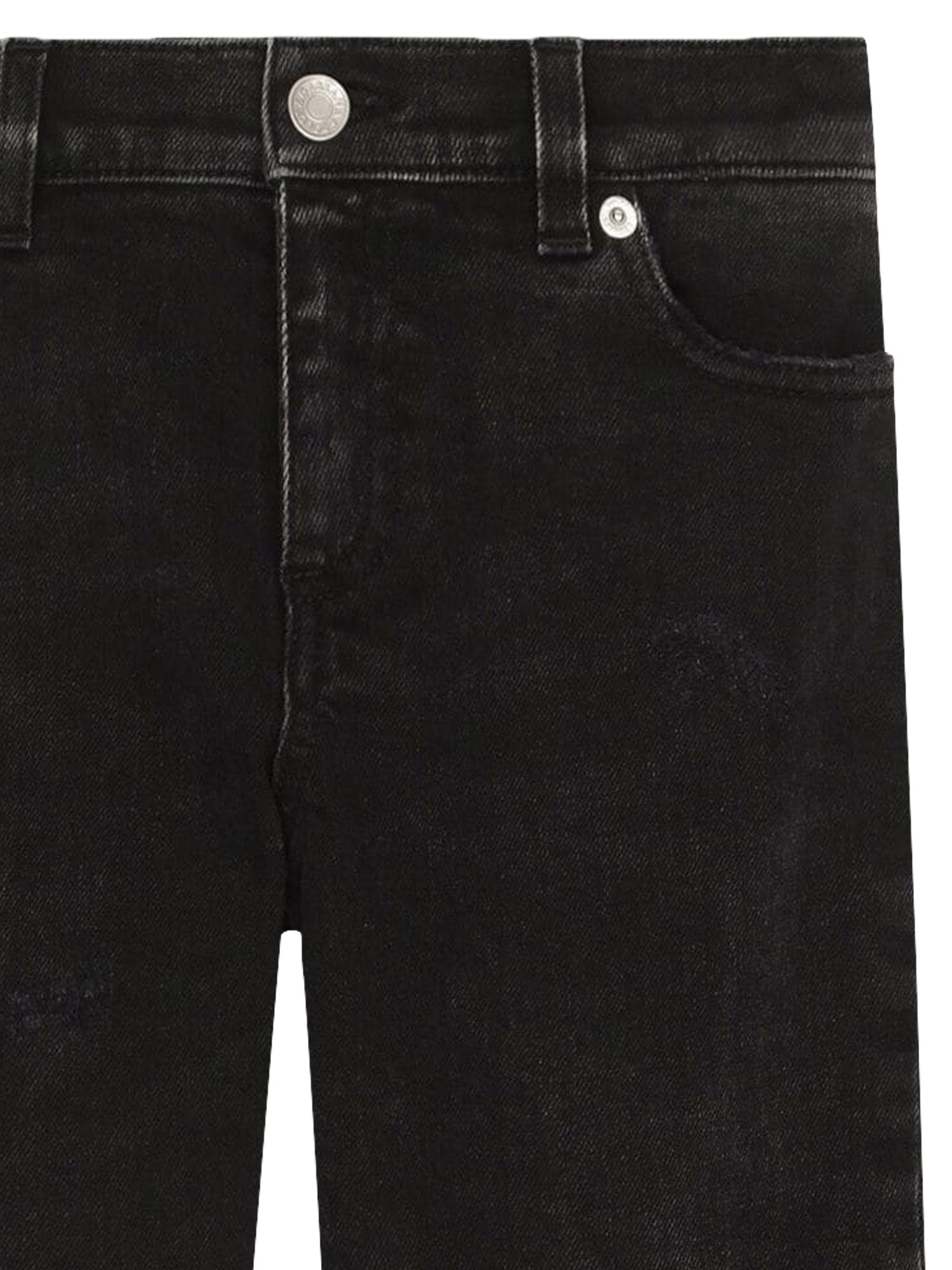 Worn effect black jeans from Diesel Kids are made with a stretch fabric that is comfortable and durable. These jeans are a great addition to your casual wardrobe. They are a darker colour and have a worn effect to them. They are made of a stretchy, soft, stretch denim.