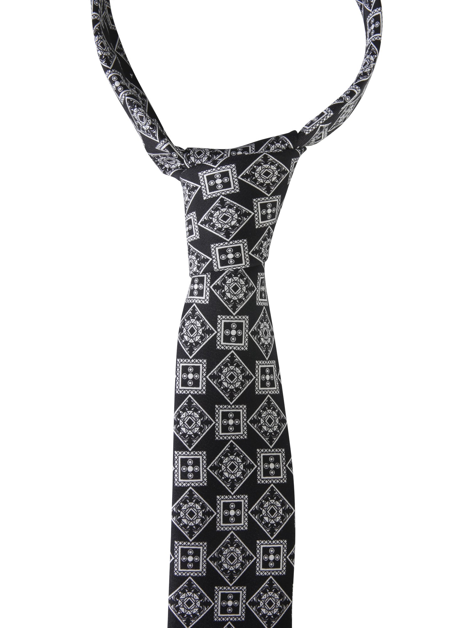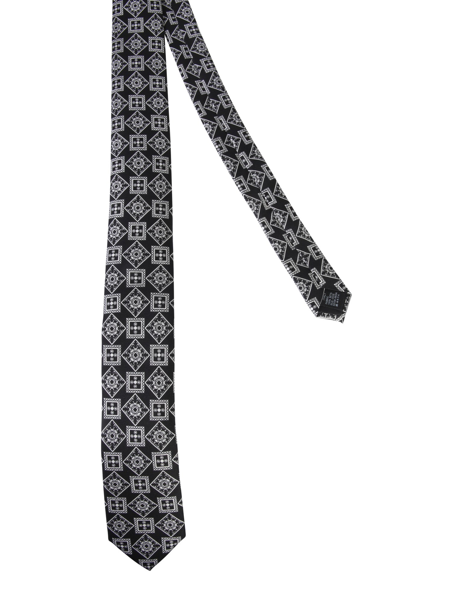 Complete your formal attire with this silk tie from Dolce & Gabbana. The tie is fabricated from good quality silk to ensure a shiny and smooth surface. It features a geometrical pattern all over the surface. You can pair it with a dashing two-piece suit to have a complete look. Also, this tie will make a perfect father’s day gift.