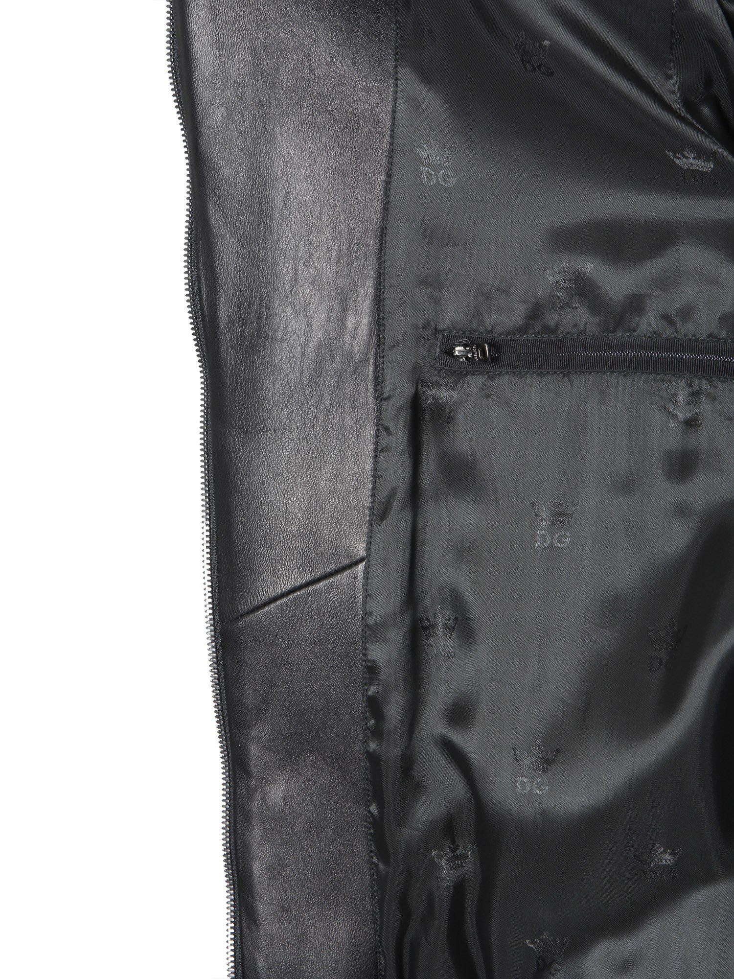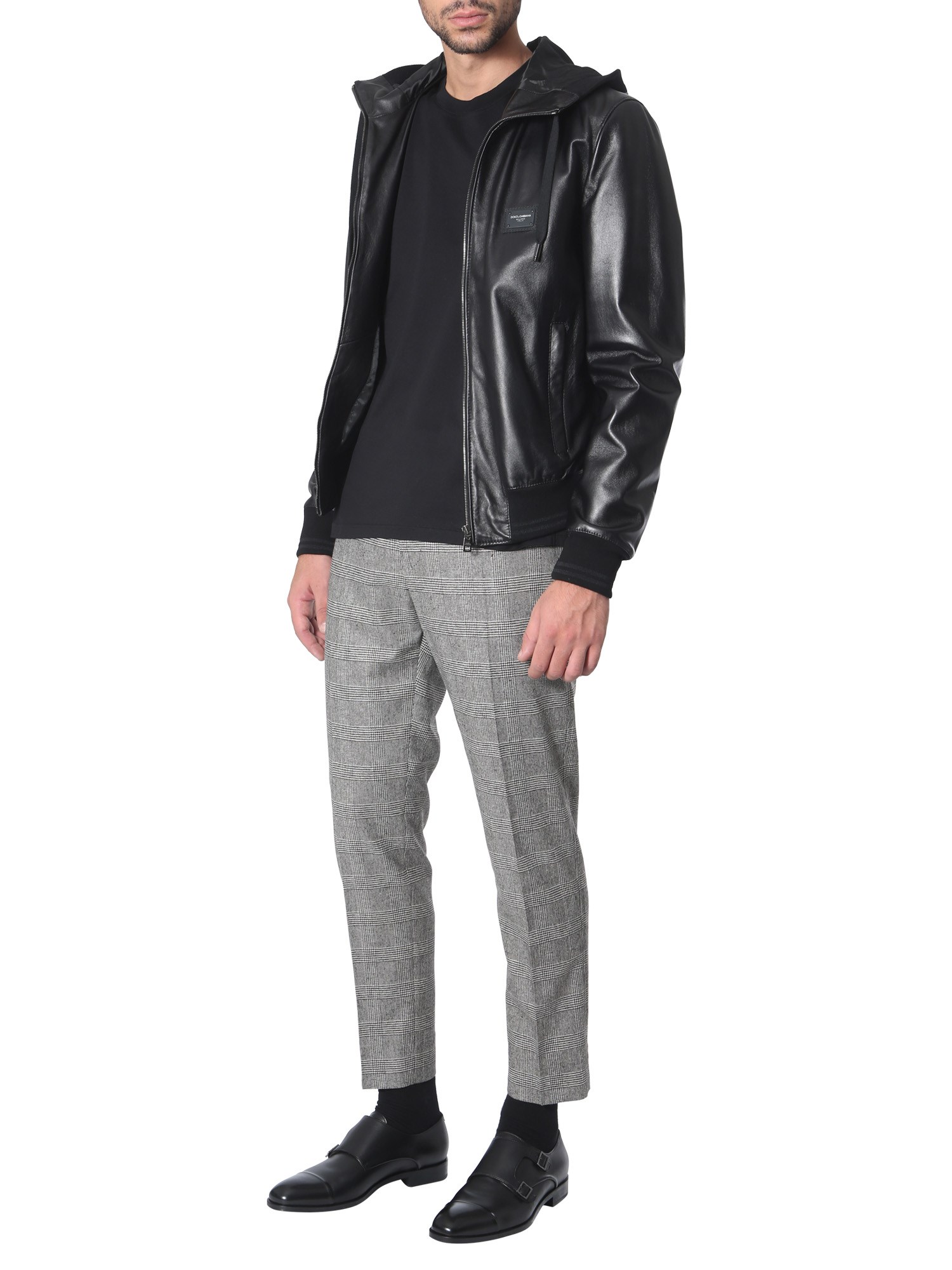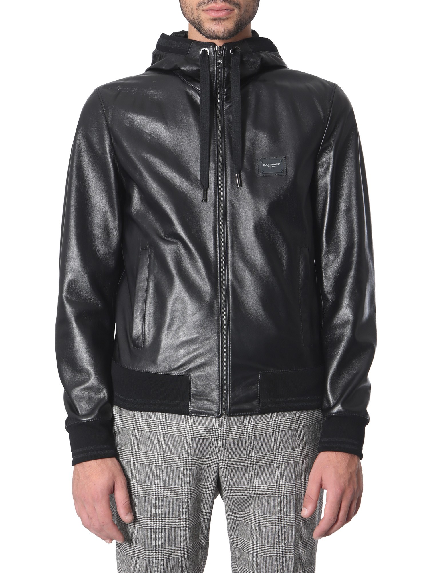 Get ready with a biker look with this hooded jacket presented by Dolce & Gabbana. It has a soft and shiny surface. Made with 100% lambskin, the lined interior will provide a soft touch against your skin.