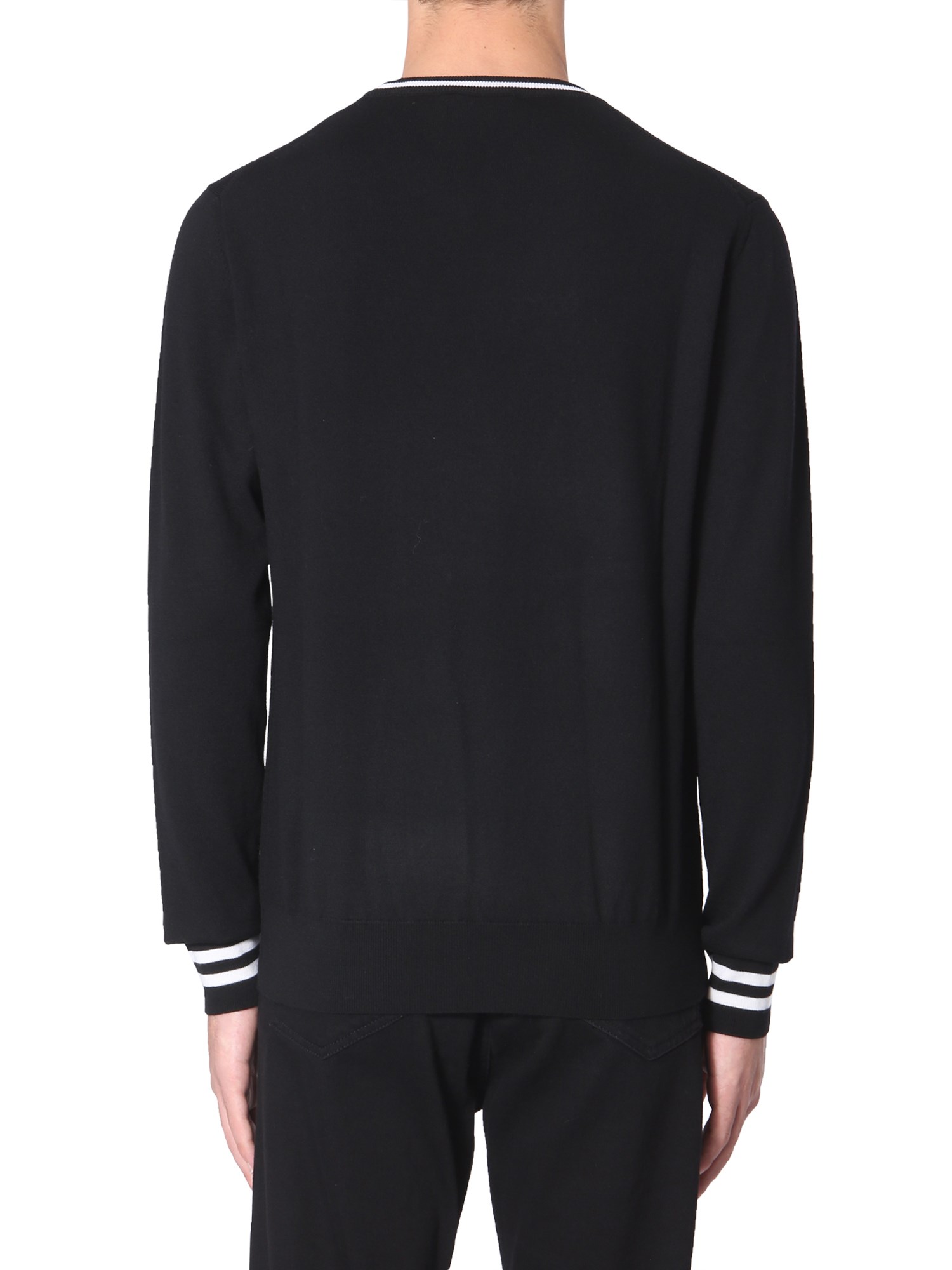 Redefine your winter wardrobe with this crew neck sweater brought to you by Dolce & Gabbana. The sweater is fabricated from good quality wool that ensures utmost warmth while feeling soft against your skin. The contrasting lines on the neckline and ribbed cuffs add a refined touch to its design.