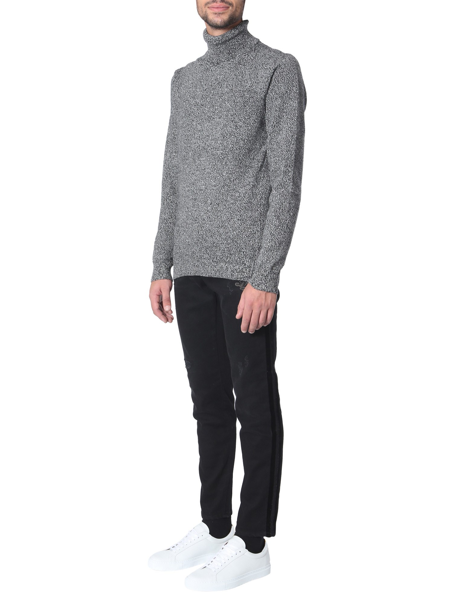 Add variety to your winter wardrobe with this turtleneck sweater from Dolce & Gabbana. The sweater is knitted from fine quality wool that renders it a soft and smooth texture. The simple and subtle front panel will allow you to match it with a number of trousers. The high neck design ensures utmost comfort.
