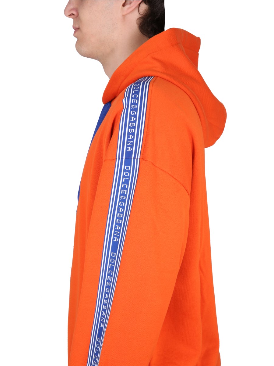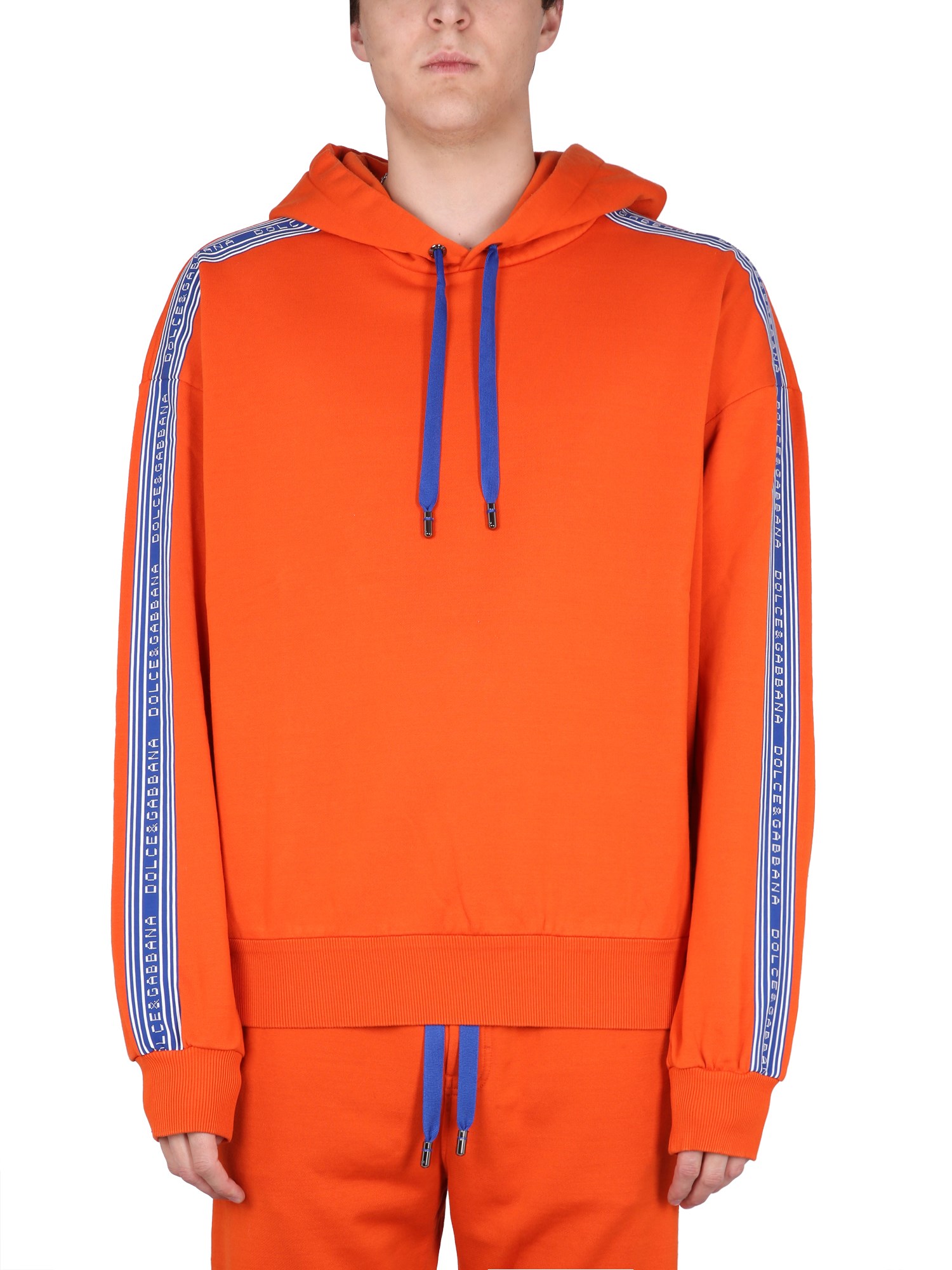 The sweatshirt from Dolce & Gabbana is a cosy, comfortable, and warm top for the fall season. It is made of a cotton blend fabric that is soft to the touch and lightweight. The sweatshirt has a hood with a drawstring logoed band on the sleeves. It is great for wearing on the chilly days of fall and winter. This 100% cotton hoodie is a great choice for staying warm in the fall and winter. It has a drawstring logoed band on the sleeves and an embroidered logo on the left chest.