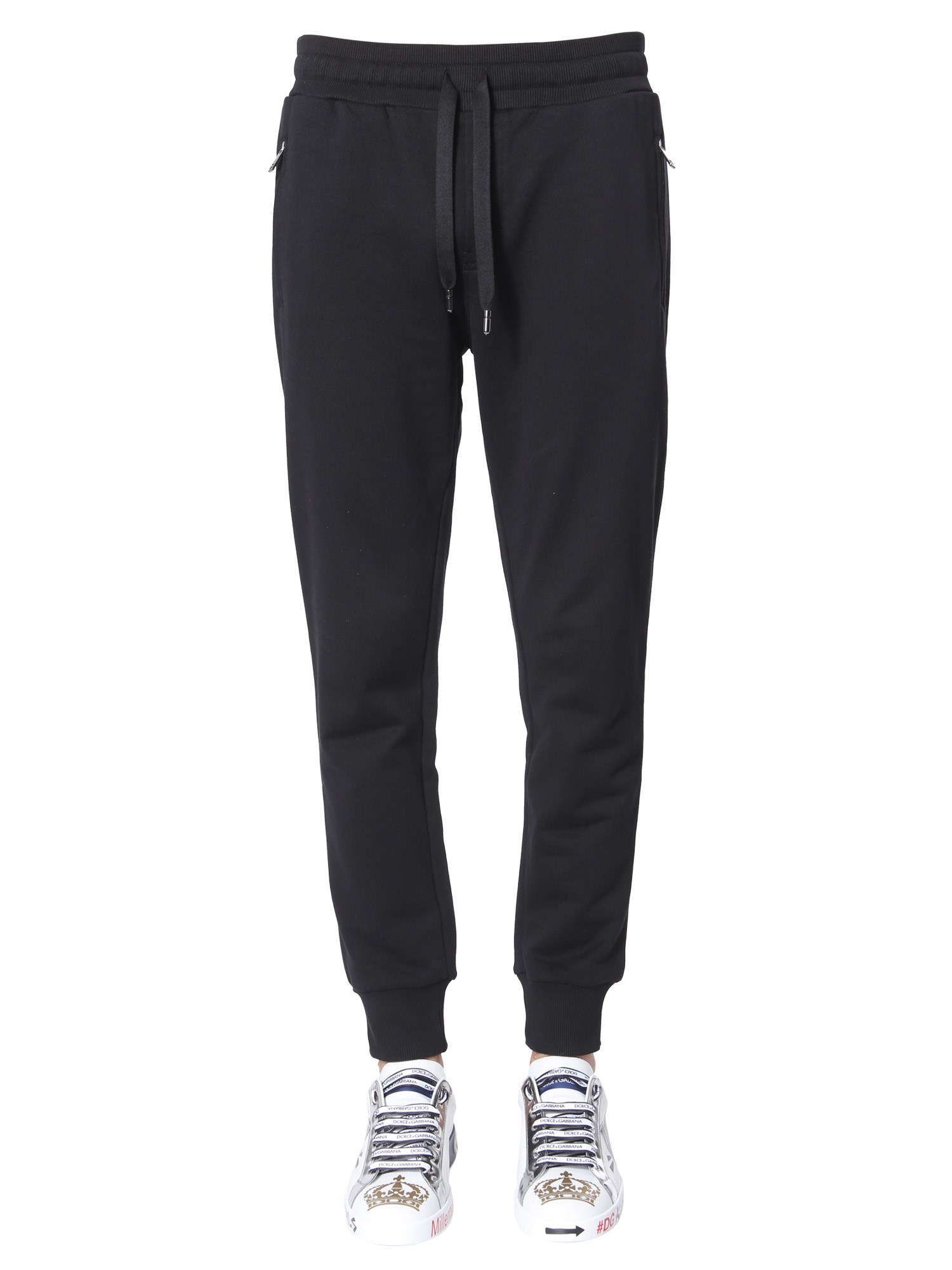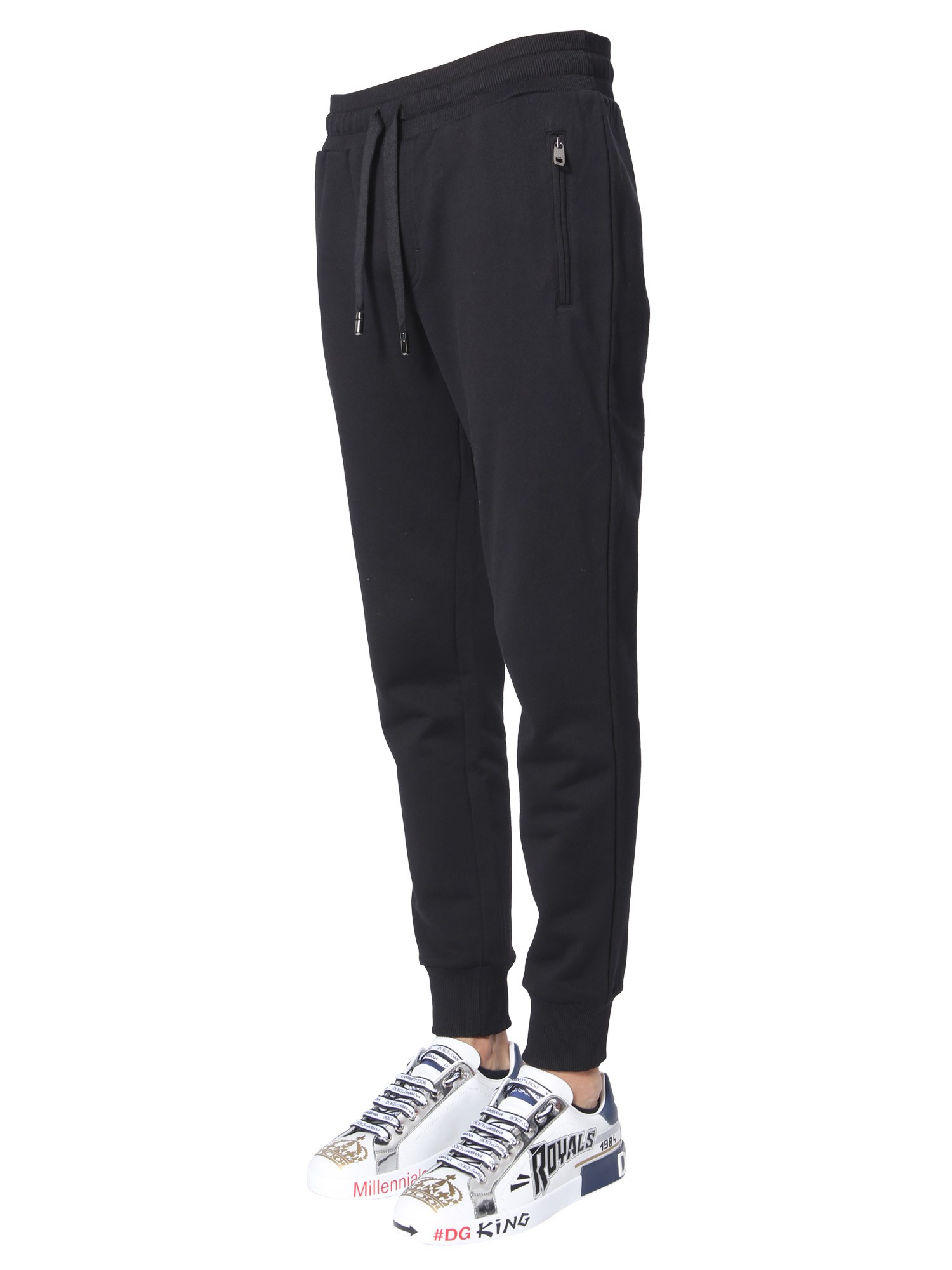 Hit the gym in style with these jogging pants from Dolce & Gabbana. Designed from fine quality cotton, these pants can absorb excess moisture to keep you dry all day long. The elasticated coulisse closure perfectly hugs around your waist to provide a comfortable fit. The plain and simple front panel will help you pair them with a basic T-shirt for complete look.