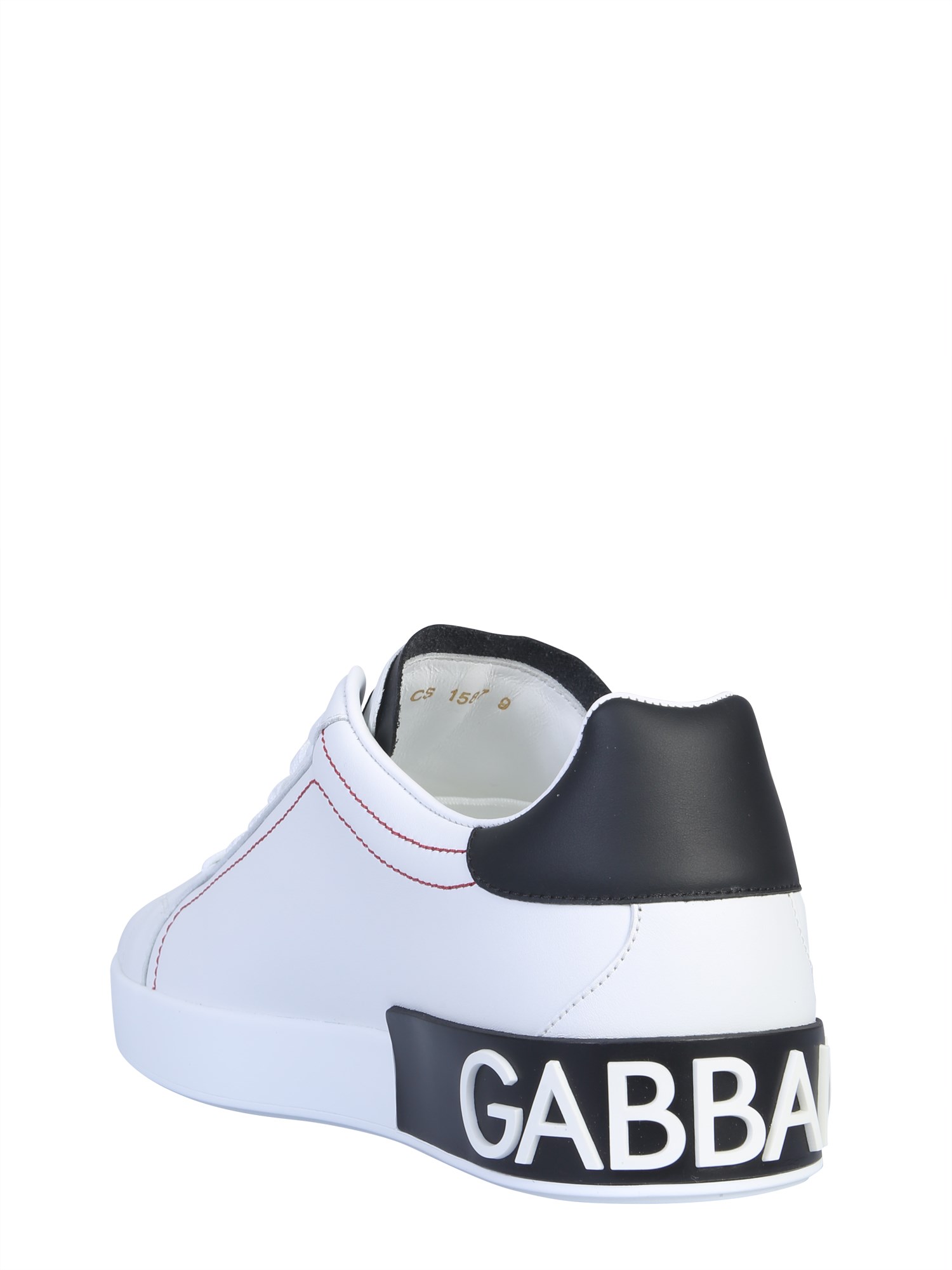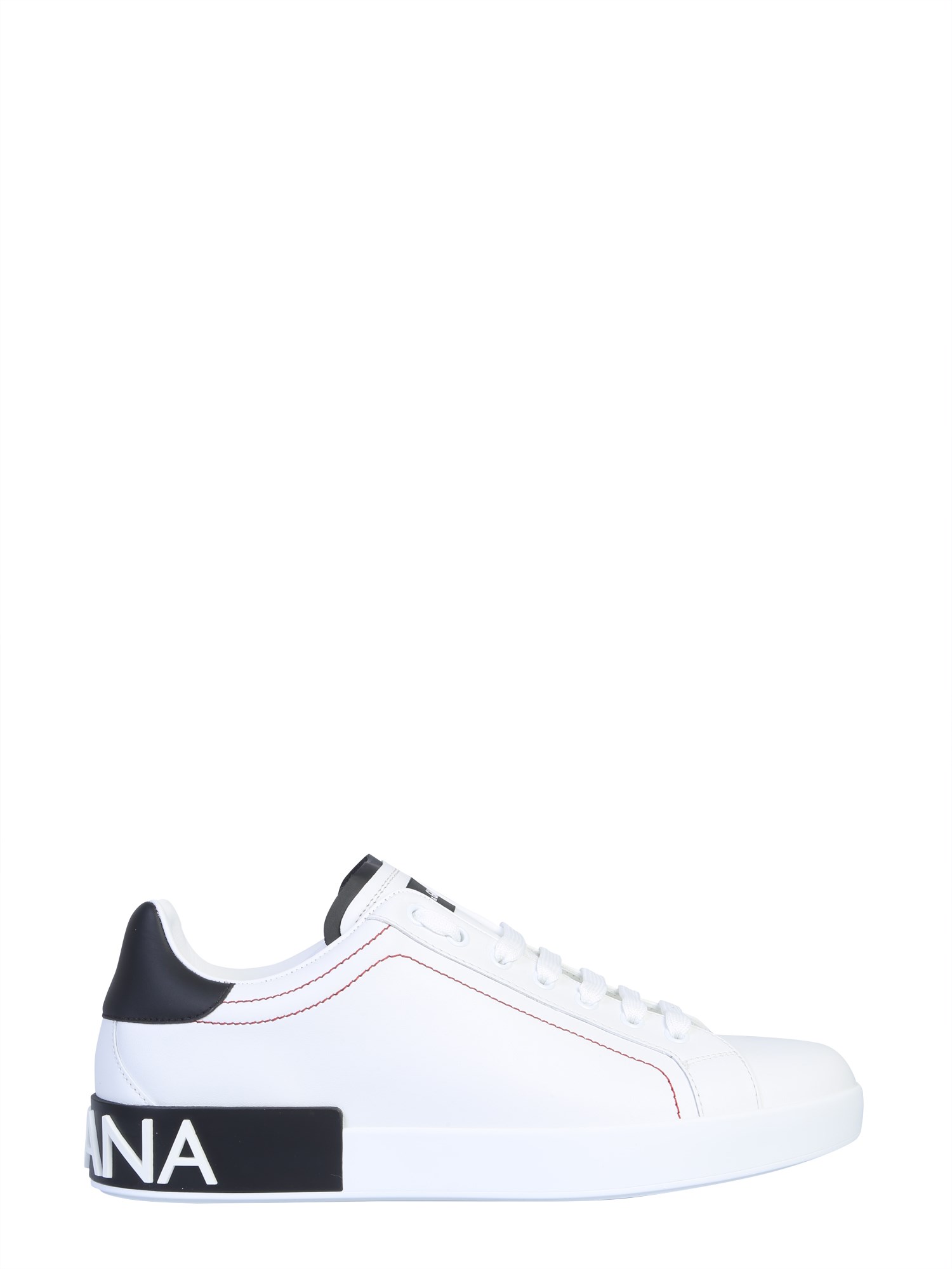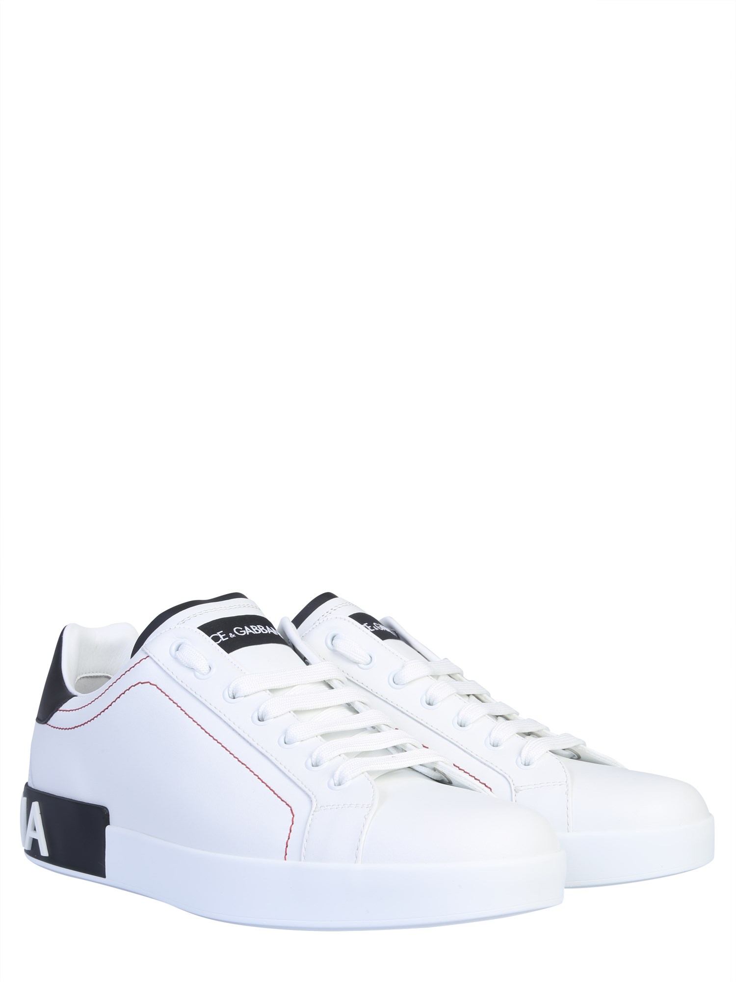 These portofino sneakers from Dolce & Gabbana will easily become your favourite footwear in no time. These classy shoes have a round toe and lace-up front that will never to give a casual touch to your look. The use of calf leather in their manufacture makes them long lasting and easy to maintain. The embossed logo on the heel completes their trendy design.