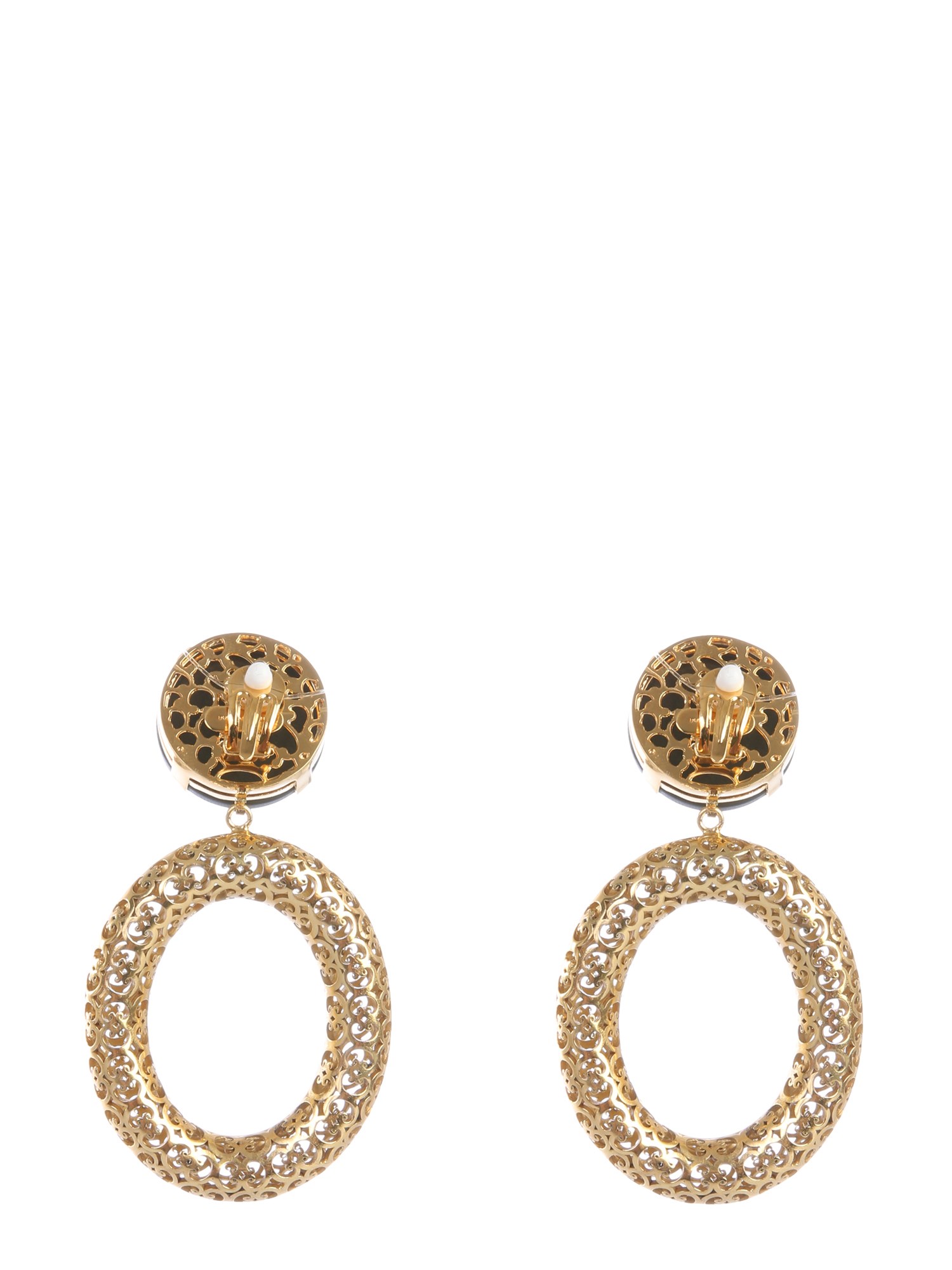 Revamp your accessory collection with the pendant earrings by Dolce & Gabbana. These designer earrings have decorative elements as well as the logo as embellishments. They have a clip closure to ensure that the earrings don’t fall off. You can pair them up with both formal as well as casual outfits.