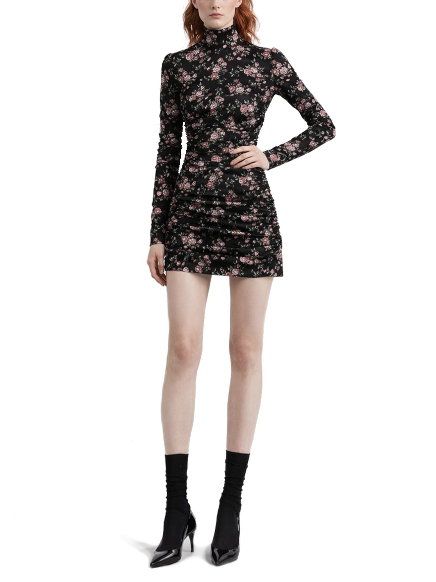 SILK DRAPED DRESS WITH ROSE PRINT