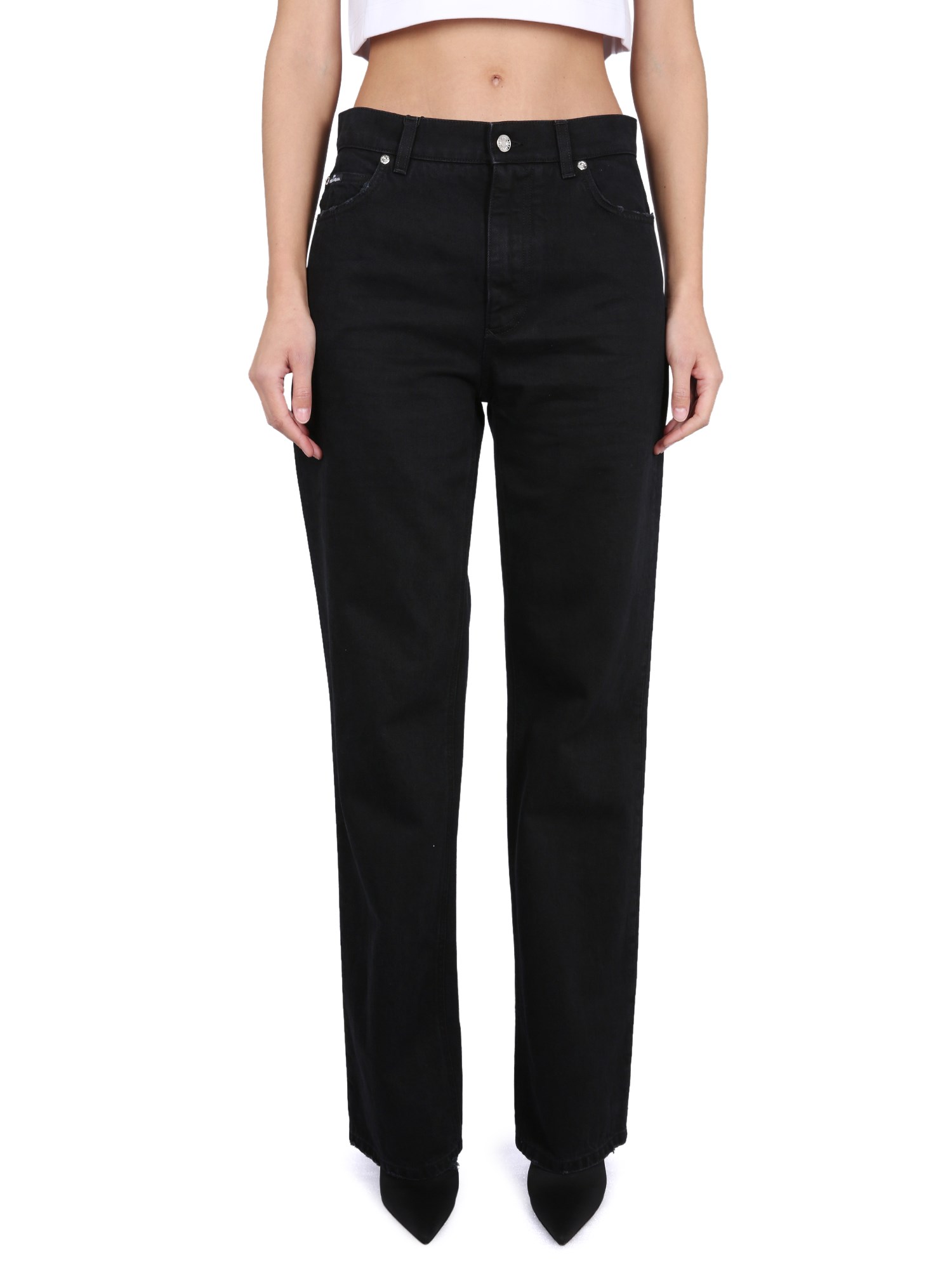 You will be on the forefront of style and fashion with these pair of jeans from Dolce & Gabbana. They are a high waist flare fit, five pockets, and have a zipper and button closure. The jeans also have a label and logo on the front, and are made from cotton. It is designed for fashion-forward women who want a look that is chic and sleek, but with a modern, wearable fit.