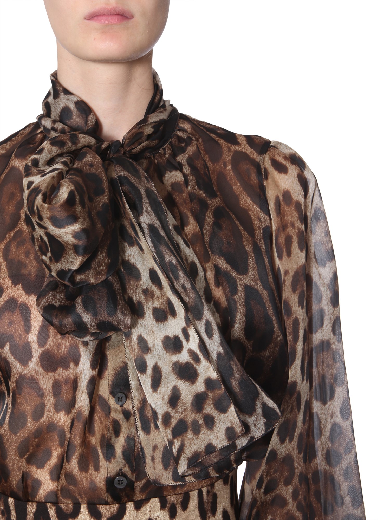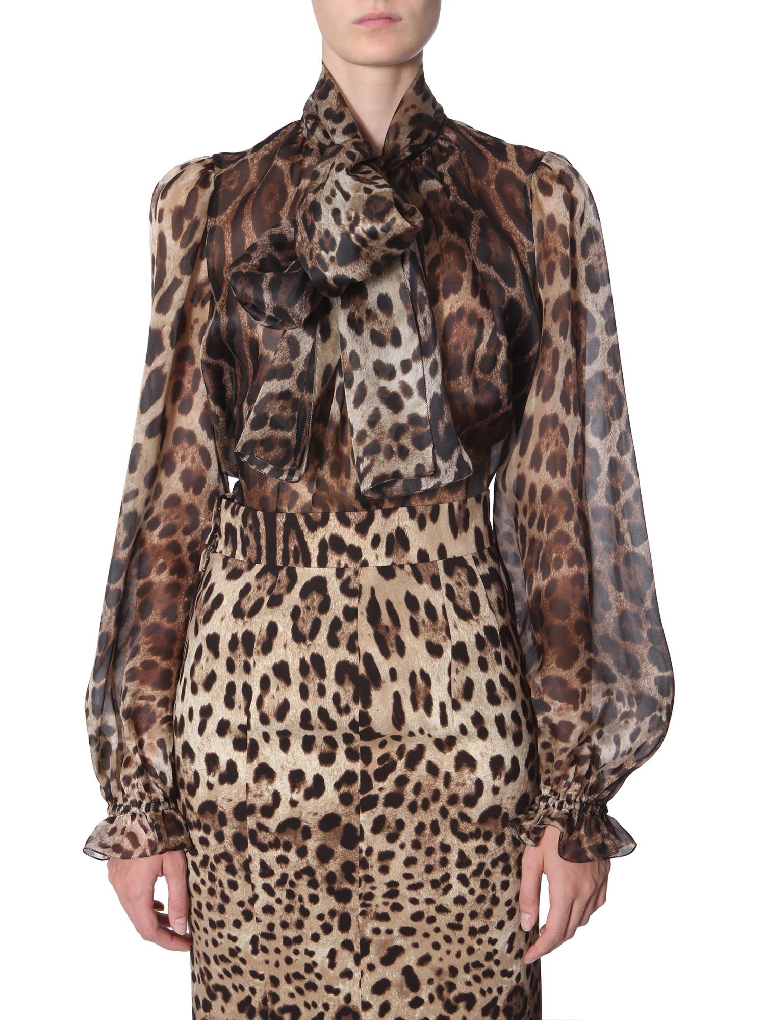 Add a dash of sophistication to your wardrobe with this shirt with a bow from Dolce & Gabbana. The shirt is designed with a stylish scarf bow knot on the front that is aptly complemented by bishop sleeves. It has an all-over leopard print that renders a glamorous touch. You can pair it with black bell-bottom pants and stilettos while getting ready for office.