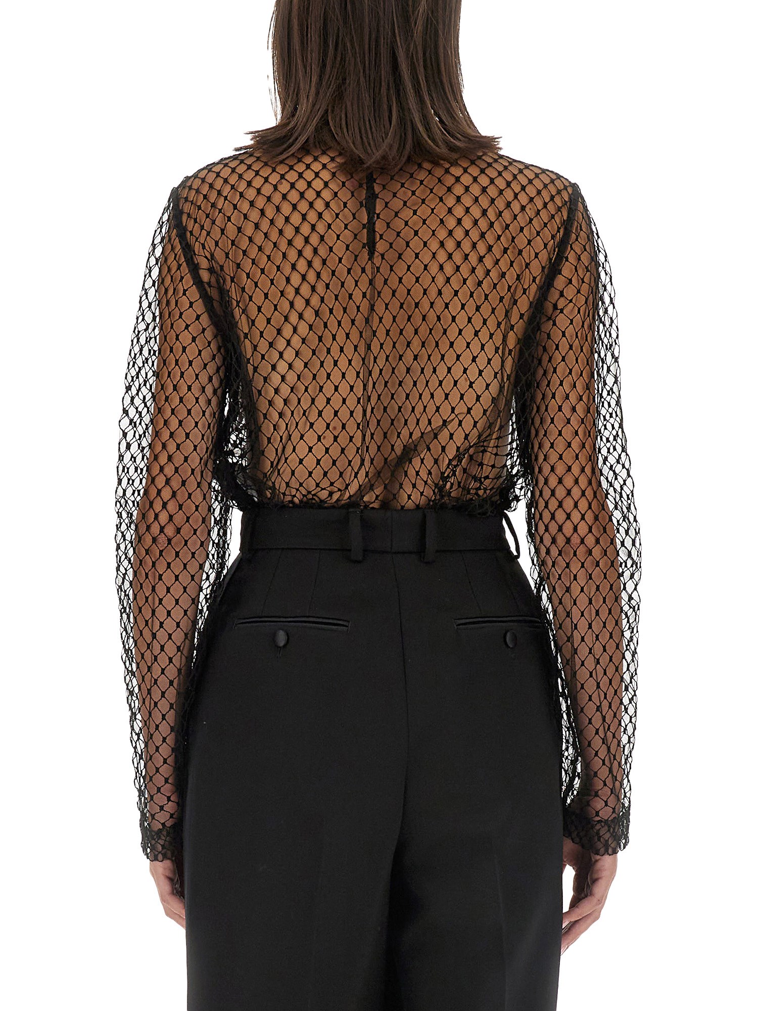 The Viscose Mesh Black Top from Dolce & Gabbana exemplifies elegance and sophistication, crafted from high-quality viscose mesh for a lightweight and breathable feel. This stylish top features a contemporary design that seamlessly blends comfort with luxury, making it a versatile addition to any wardrobe. Ideal for both casual and formal occasions, it showcases the brand's signature attention to detail and commitment to exquisite craftsmanship.