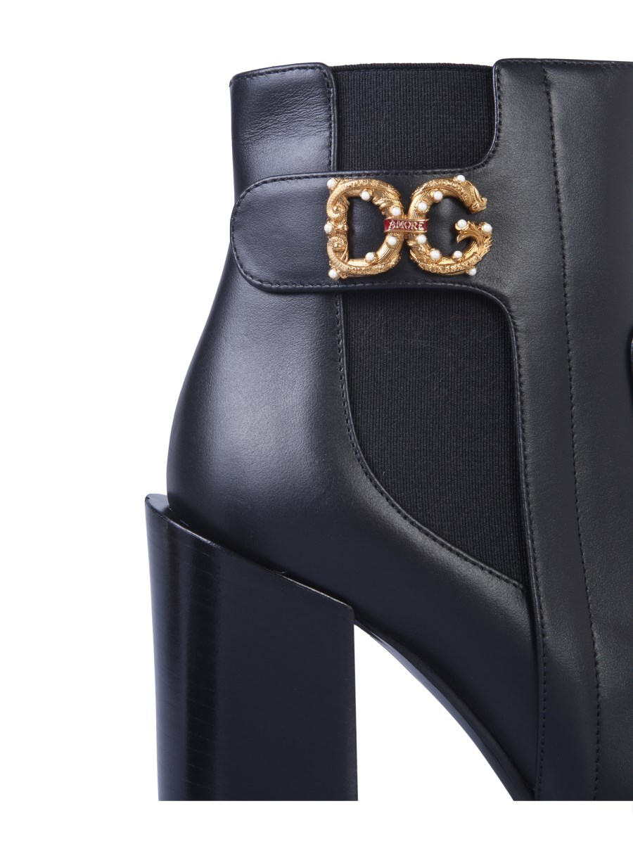 For the ladies who love authenticity, Dolce and Gabbana brings you the "DG Love" leather boots. These shoes have a smooth and breathable upper with a side zip closure. The elastic bands on the side quarters make them adjustable and comfortable to wear. Also, with a 9.5 cm heel, these shoes are suitable for formal wear.