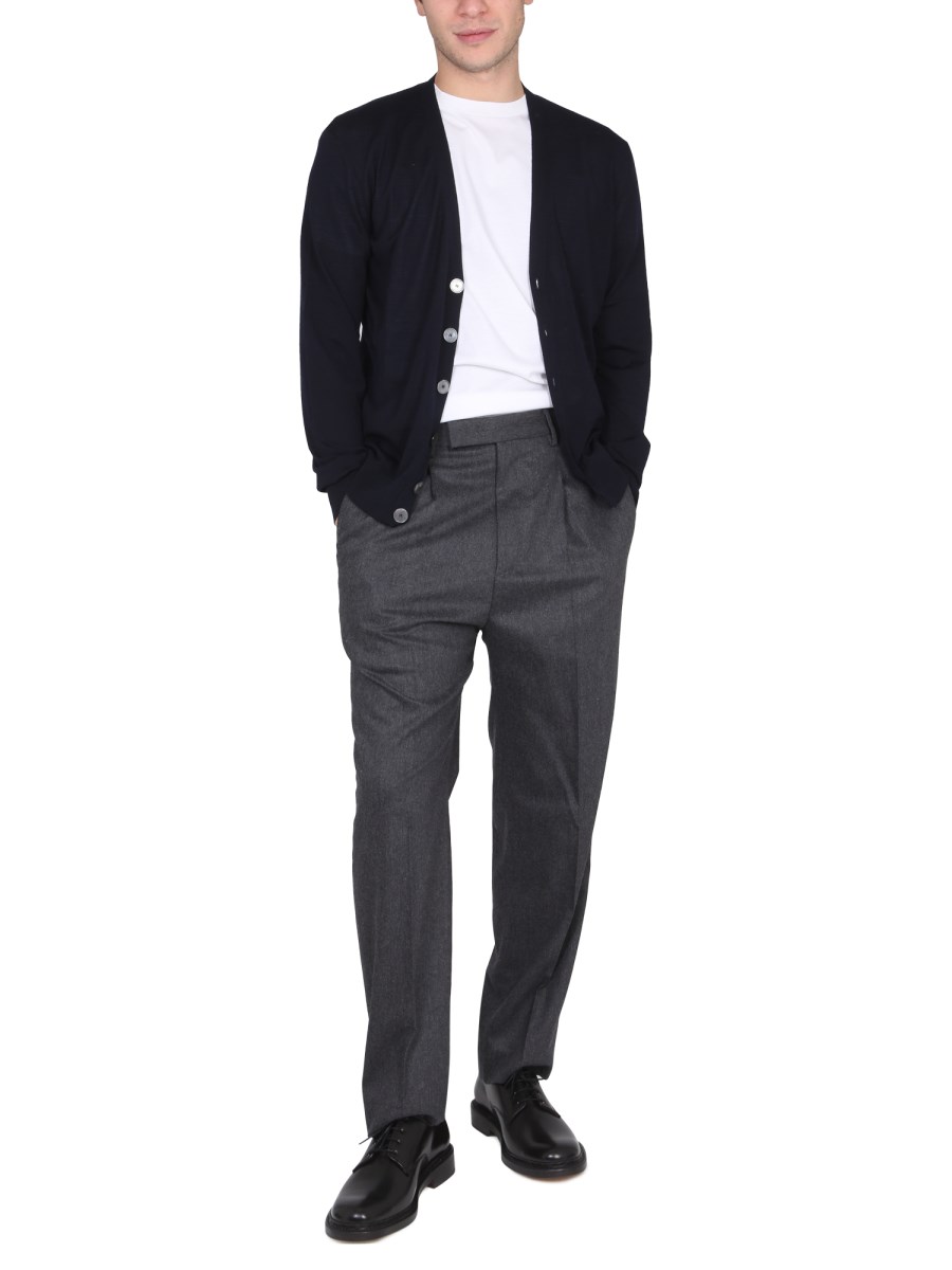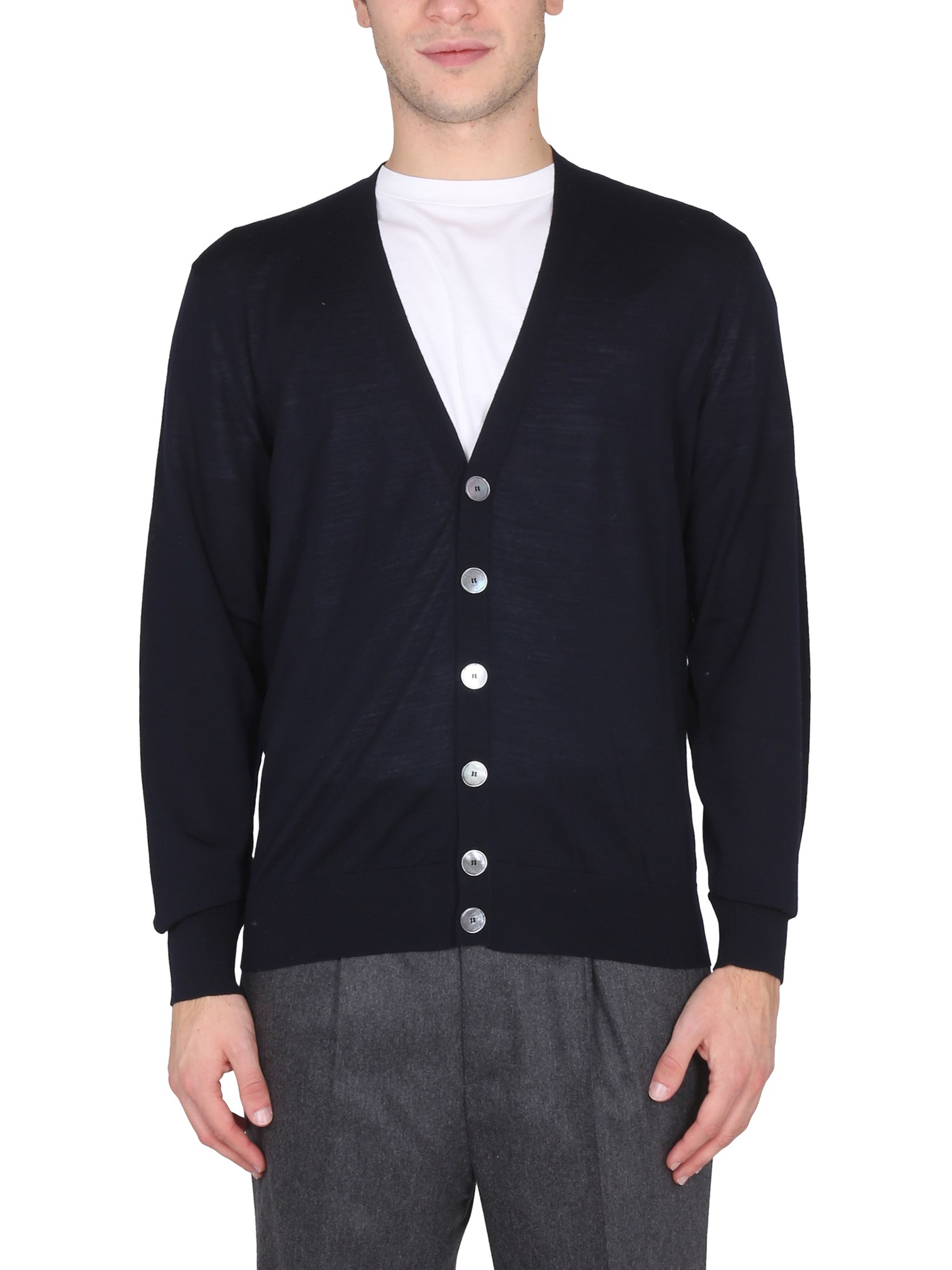 Wool cardigans from Zegna are a great choice for those who are looking for a cosy, lightweight garment that can be worn for both fall and winter. This V-neck button closure cardigan is made from a soft wool blend and features ribbed trims on the sleeves, hem, and collar.