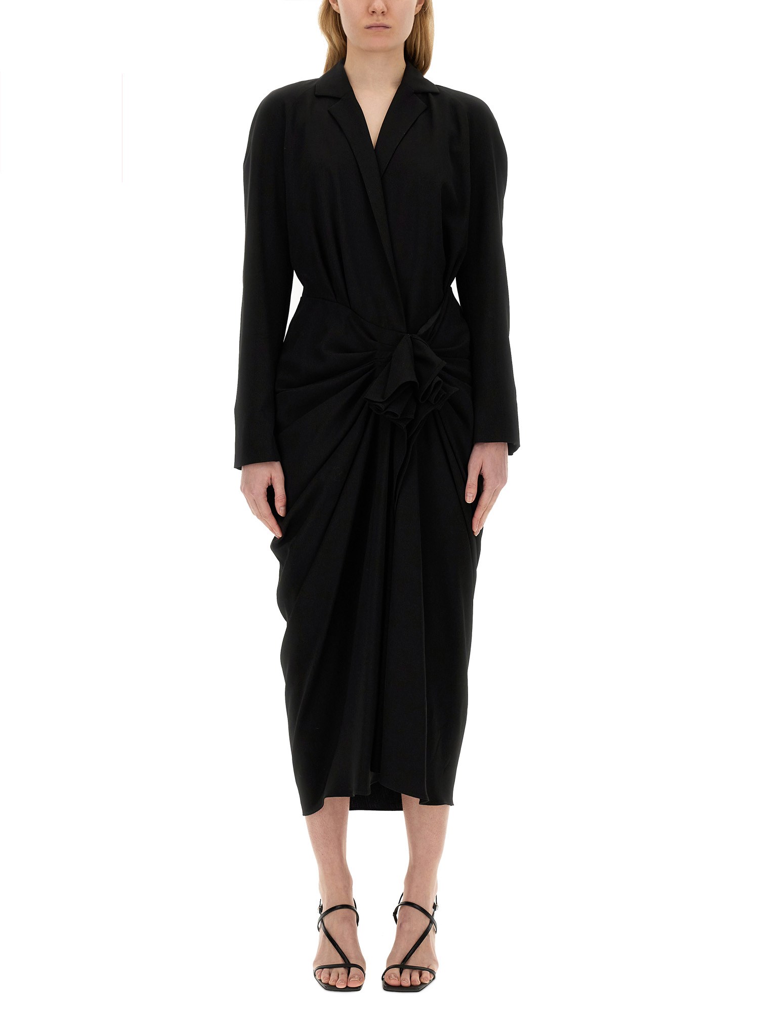 This dress from Dries Van Noten exudes sophistication and grace, perfect for both casual and formal occasions. Made with superior quality fabric, this dress feels luxurious against your skin and drapes beautifully on your silhouette. The V-neckline adds a touch of femininity and flattery to your neckline, while the full sleeves keep you warm and stylish. The midi length offers a versatile and timeless look that can be dressed up or down with ease.