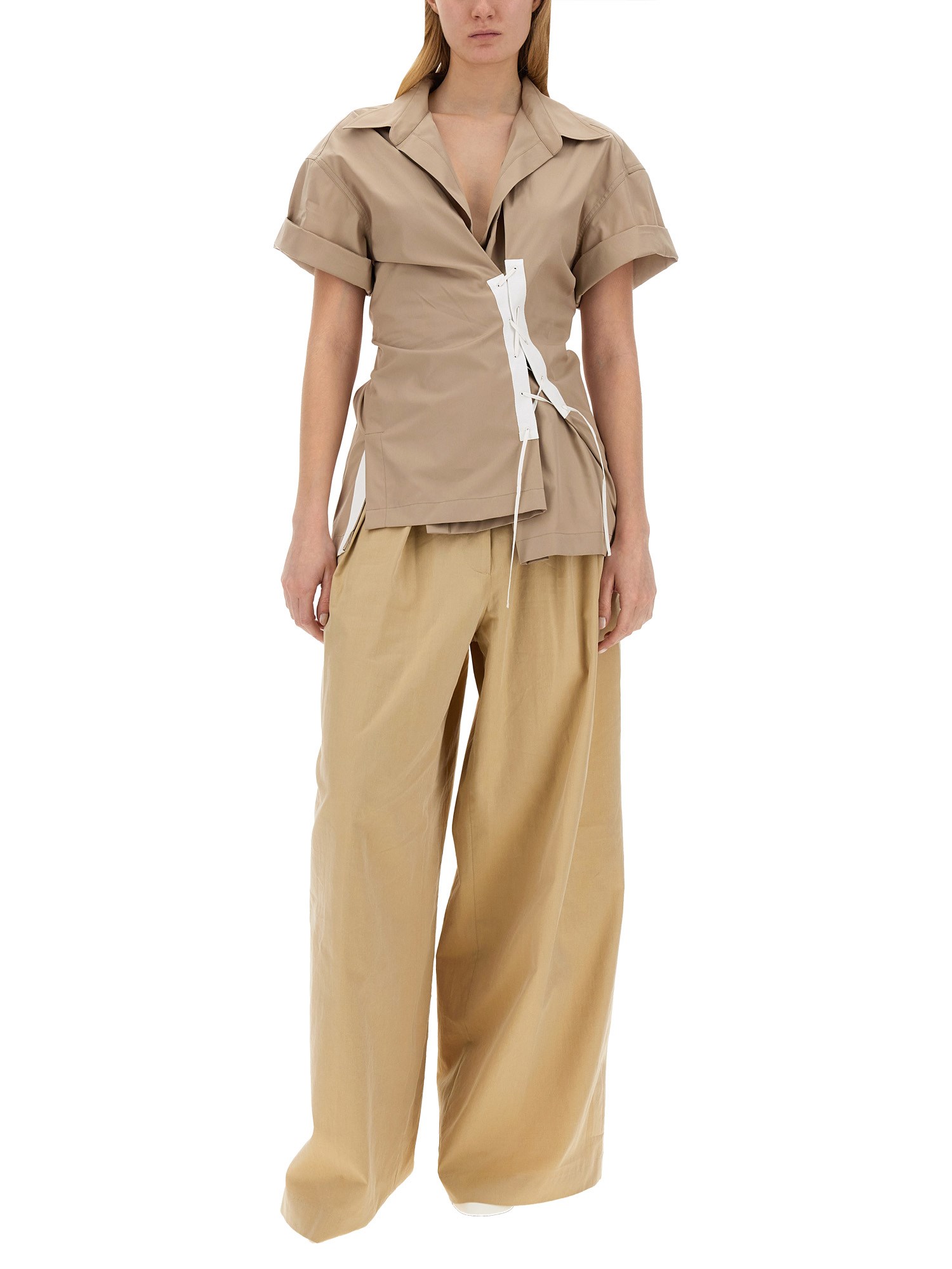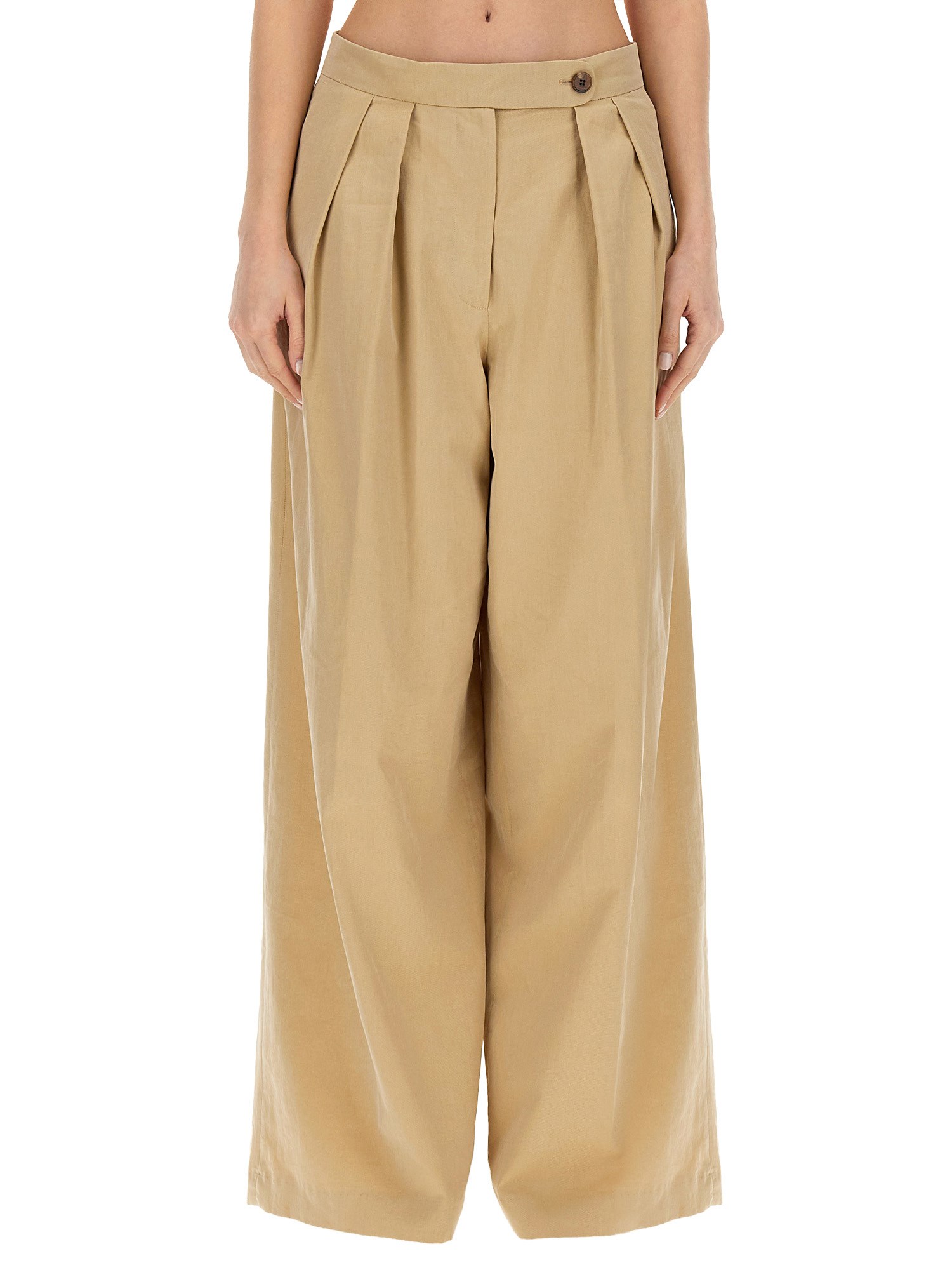 Stay stylish and comfortable with these Wide Leg Pants from Dries Van Noten. Crafted with the finest quality, these pants feature a zip-fly and button closure for a secure fit. The pleat detail adds a touch of sophistication to your look. Whether you're dressing up for a special occasion or need a chic everyday option, these wide-leg pants are perfect for any fashion-savvy individual.