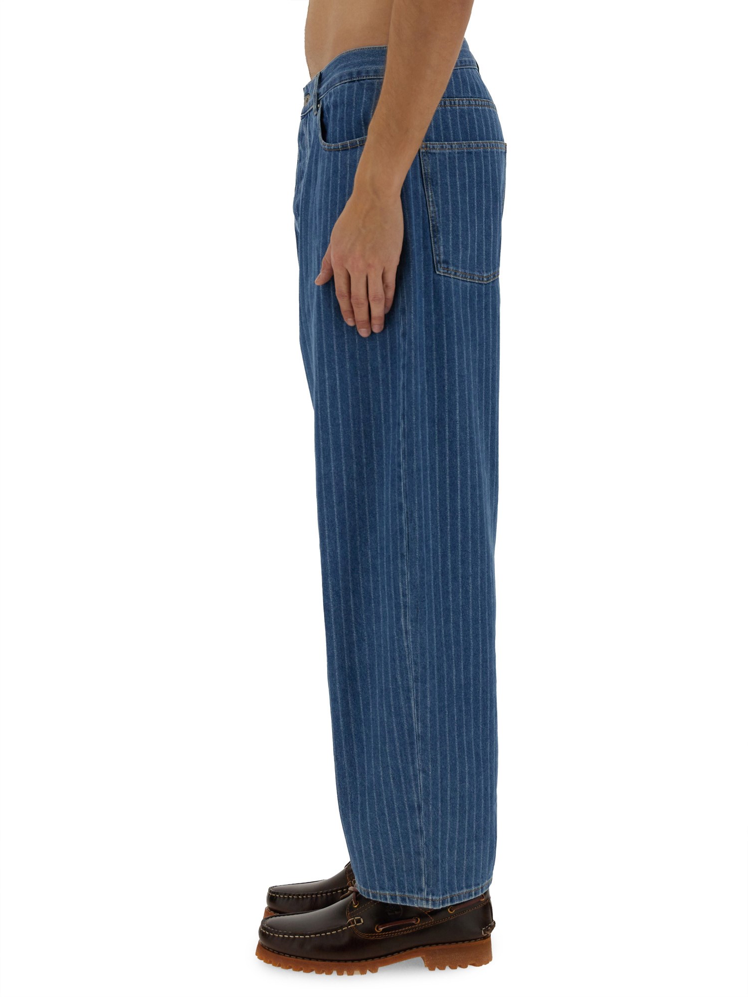 Experience effortless style with the Baggy Jeans from Drôle de Monsieur. Crafted from high-quality denim, these jeans offer a relaxed fit that combines comfort with contemporary fashion. The unique design features a classic five-pocket layout and a versatile wash, making them perfect for both casual outings and laid-back gatherings. Elevate your wardrobe with this essential piece that embodies the perfect blend of sophistication and streetwear flair.