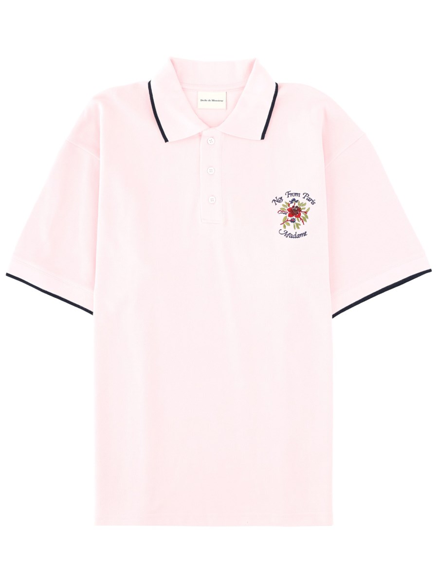COTTON POLO SHIRT SLOGAN ROSE