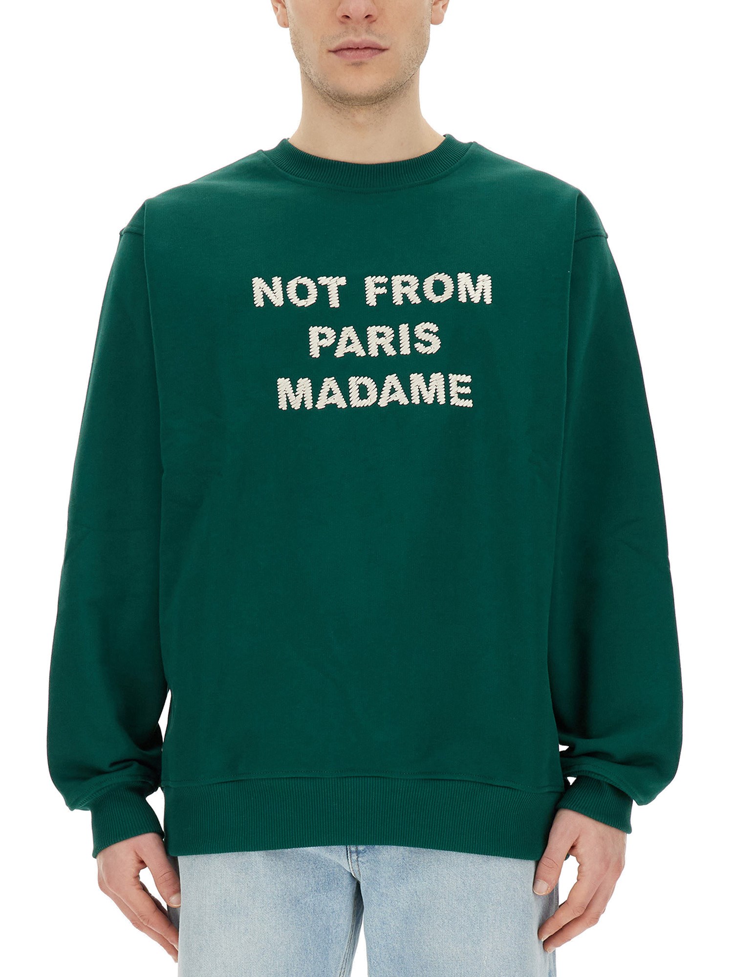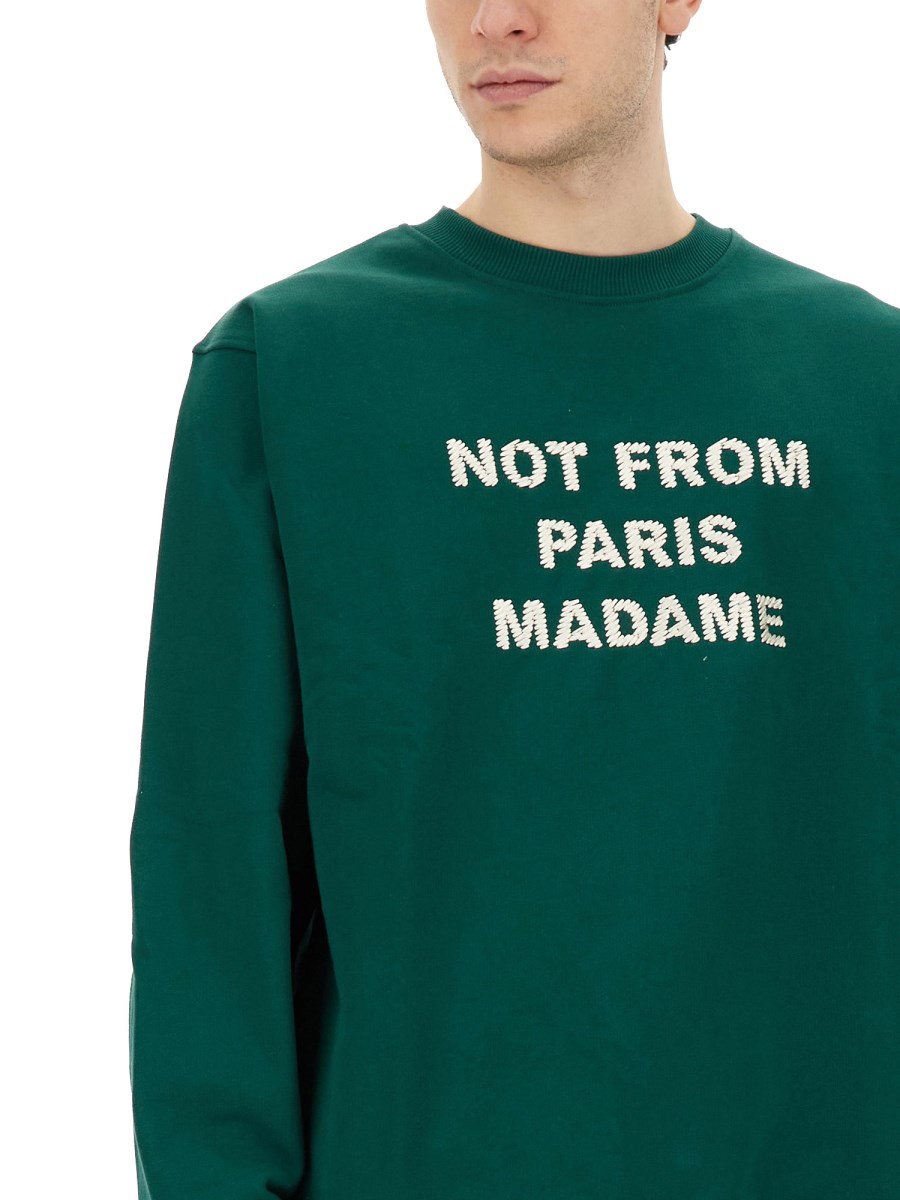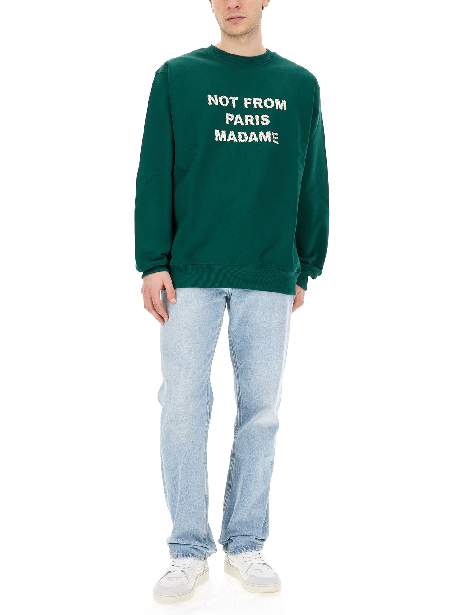 This sweatshirt from Drôle De Monsieur combines style, comfort, and versatility all in one. Made from soft and breathable cotton fabric, it provides a cosy and relaxed fit that you can enjoy all day long. The vibrant green colour adds a pop of freshness to your outfit, while the front logo print gives it a trendy and fashionable appeal.