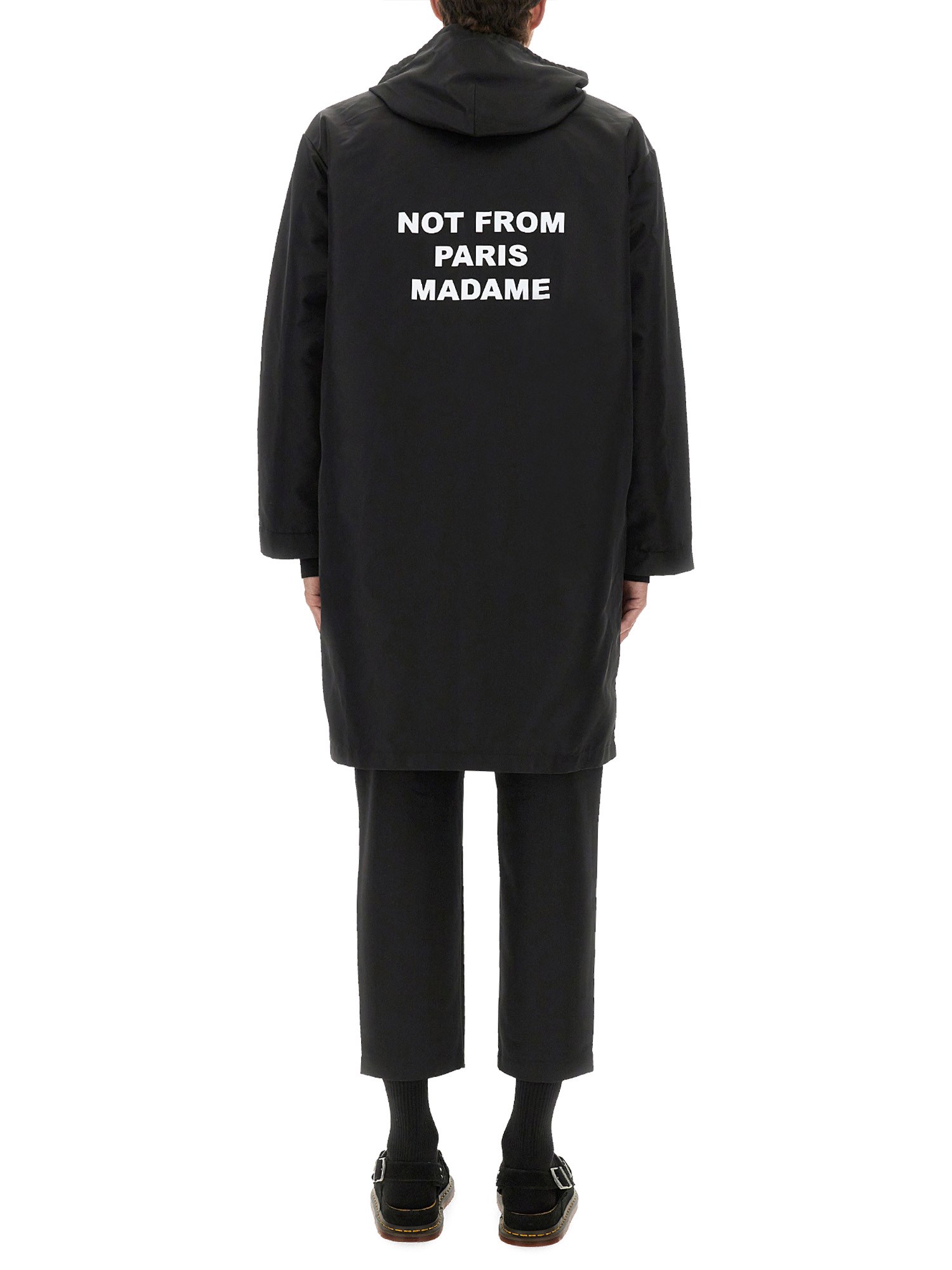 HOODED PARKA WITH SLOGAN PRINT