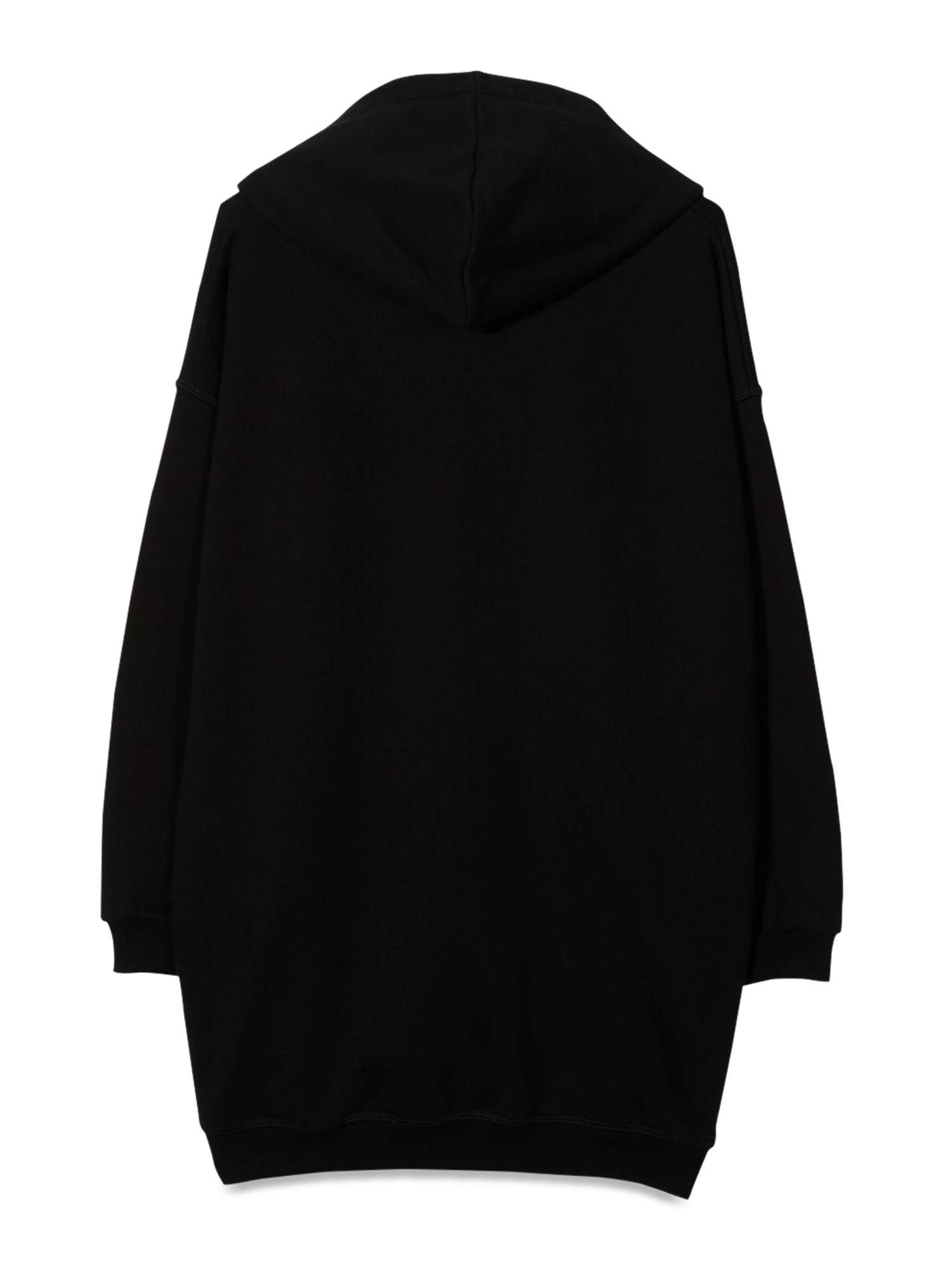The black full-sleeve hooded sweatshirt dress from Dsquared is a stylish and comfortable dress that you can wear with or without leggings. It is perfect for the cold weather and can be dressed up or down. This black full-sleeve hooded sweatshirt dress is a super comfortable and stylish piece.