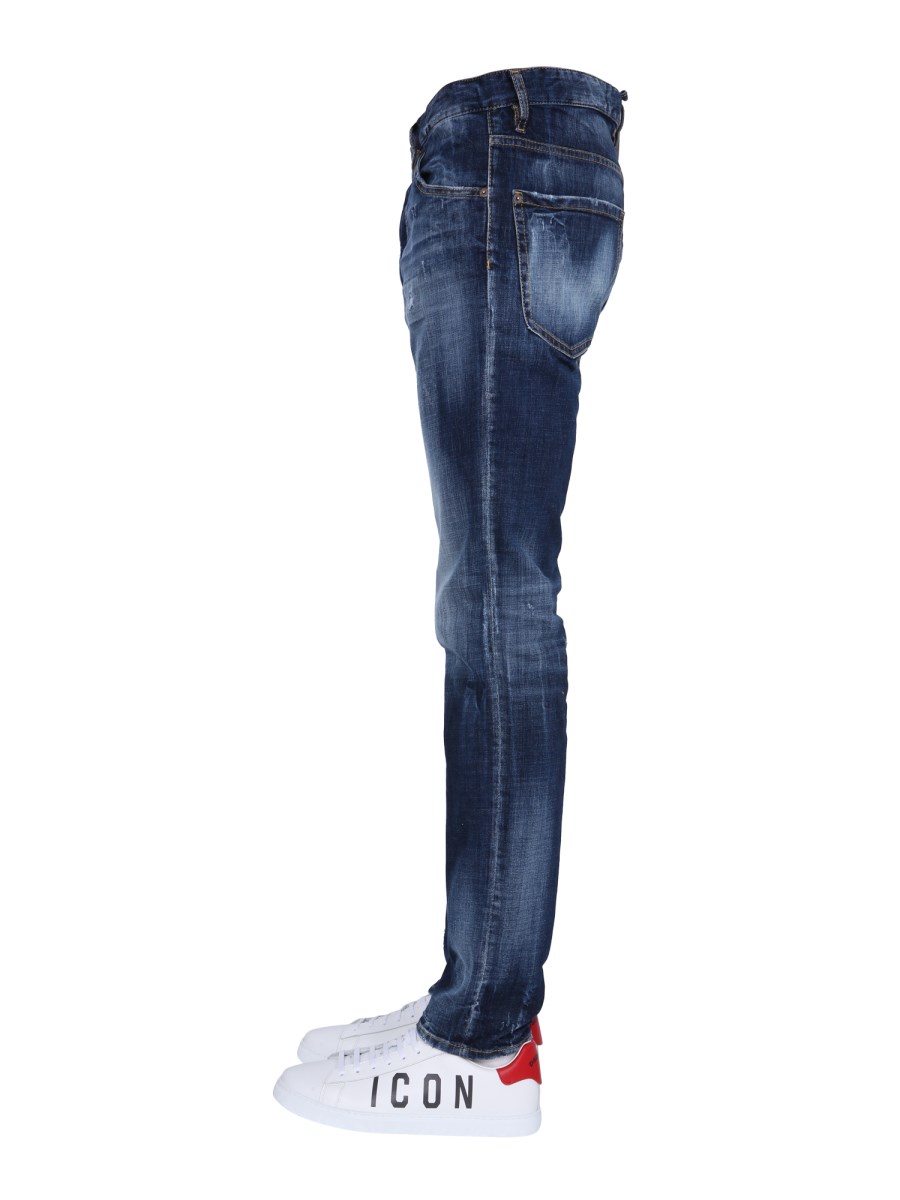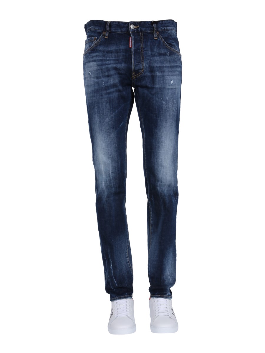 Make your everyday denim interesting with these Denim Jeans from Dsquared. This pair of jeans have five pockets and hidden buttons for its closure. Moreover, it has intentionally worn and stained areas to give a distressed outlook. The jeans have a skater fit to them and are designed with a logo label on the buttons and the back. The cotton material with a little elastic gives you a comfortable and stretchy experience while you wear it.