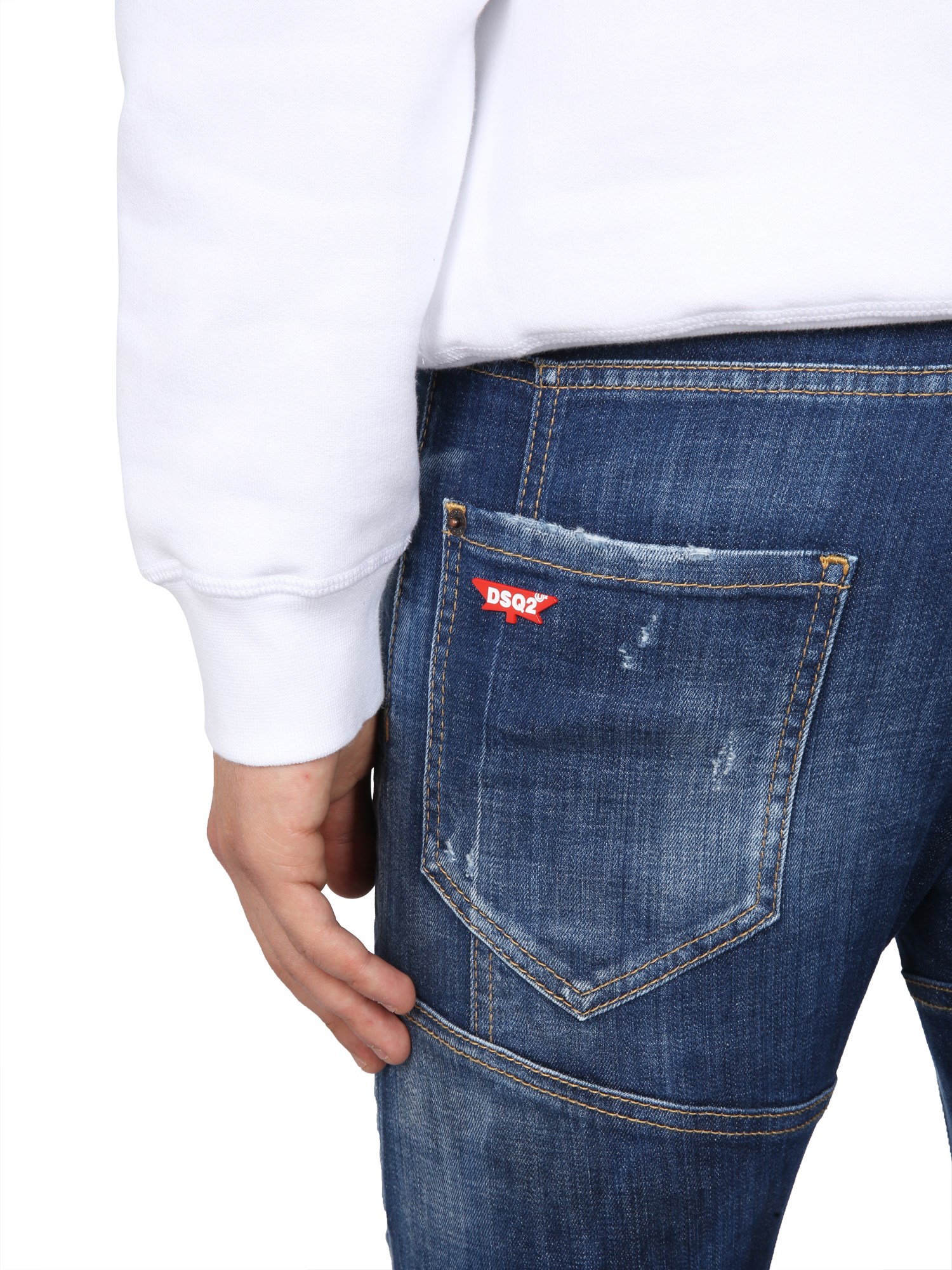 Fashion-forward, Sailor has its unique style. The Sailor jeans from Dsquared have belt loops on the waist with a zip-fly and button closure. They also have a regular fit that allows you to move with ease. They have a delave effect and are finished with a five-pocket design.