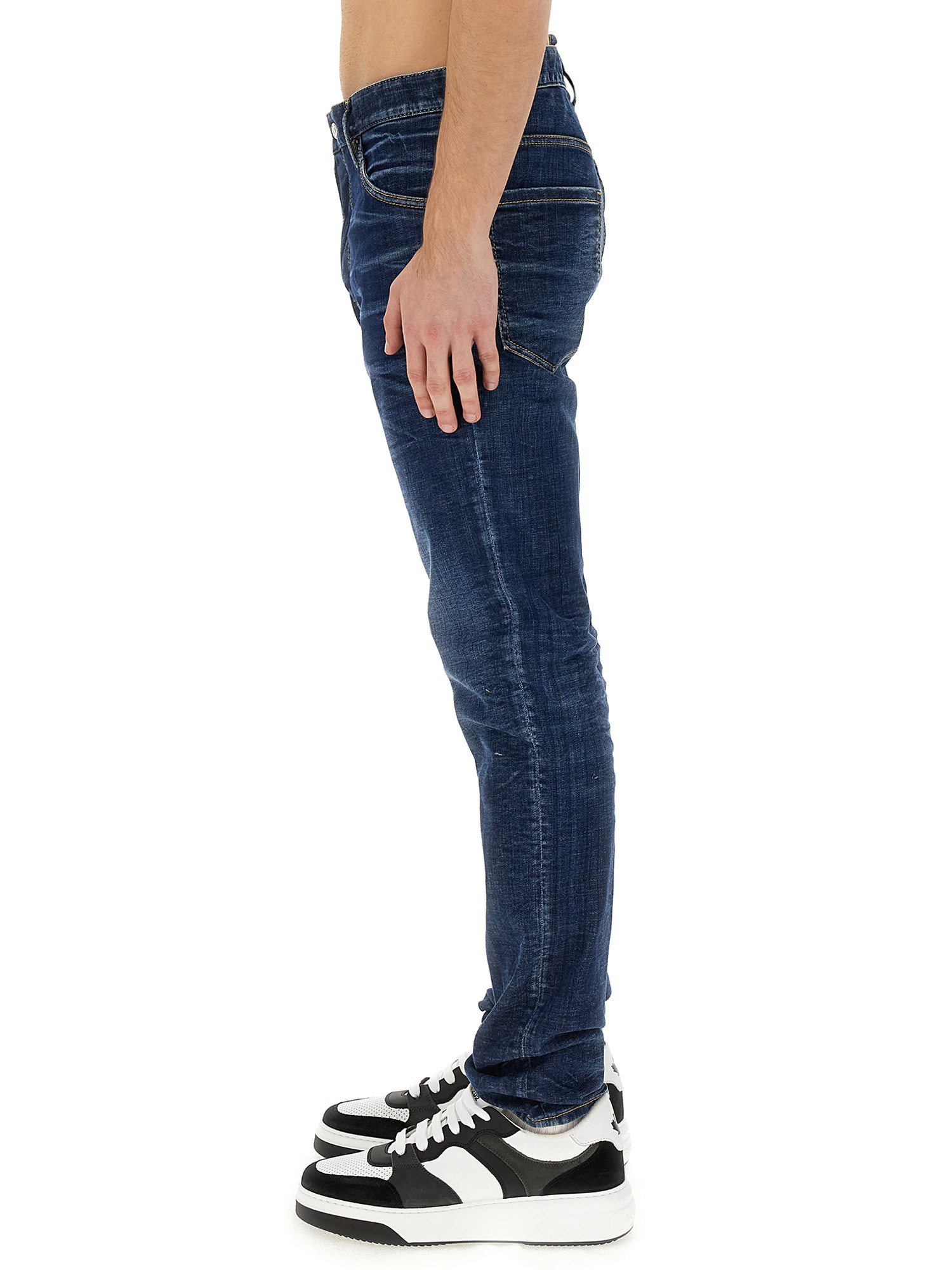 These jeans from Dsquared are designed to provide both style and comfort. The classic button and zipper closure adds a touch of sophistication, giving you a sleek and polished look. Whether you're heading to work, going out with friends, or simply running errands, these jeans will keep you looking effortlessly stylish.