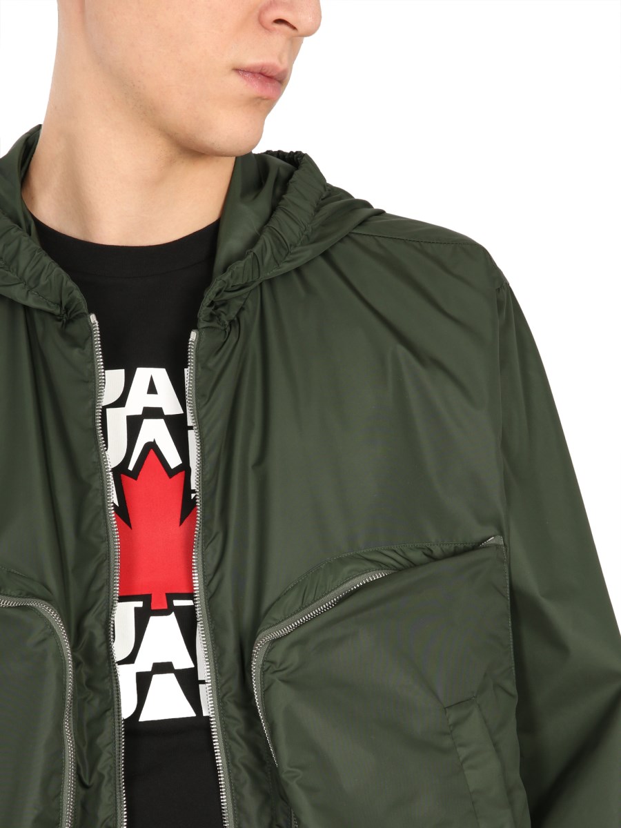 Protect yourself from those harsh weather conditions with the Windproof Jacket brought to you by Dsquared. Constructed with 100% polyamide, the jacket visualizes hooded neckline, a zippered front closure and long sleeves with elasticized cuffs, all meant for providing you with enhanced security from the adverse weather elements. The two side pockets are cozy while the two maxi zippered front pockets add functionality to this jacket.
