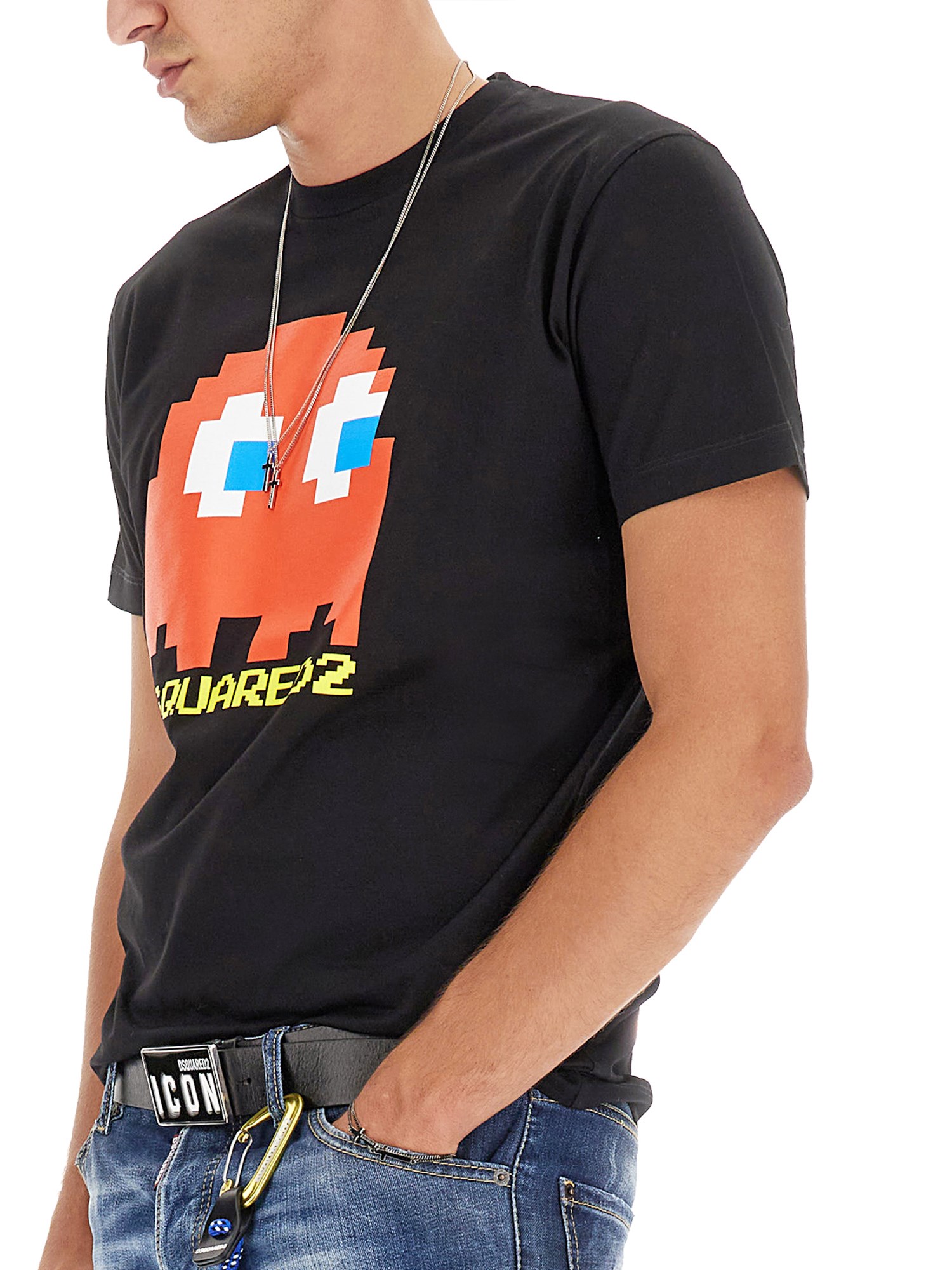 This soft cotton T-shirt from Dsquared is essential for anyone who loves the classic game. With the famous character and logo front and center, this is a must-have for any retro fan. It has a comfy crew neckline, short sleeves, and a straight hemline. It has a regular fit that allows you to move with ease.