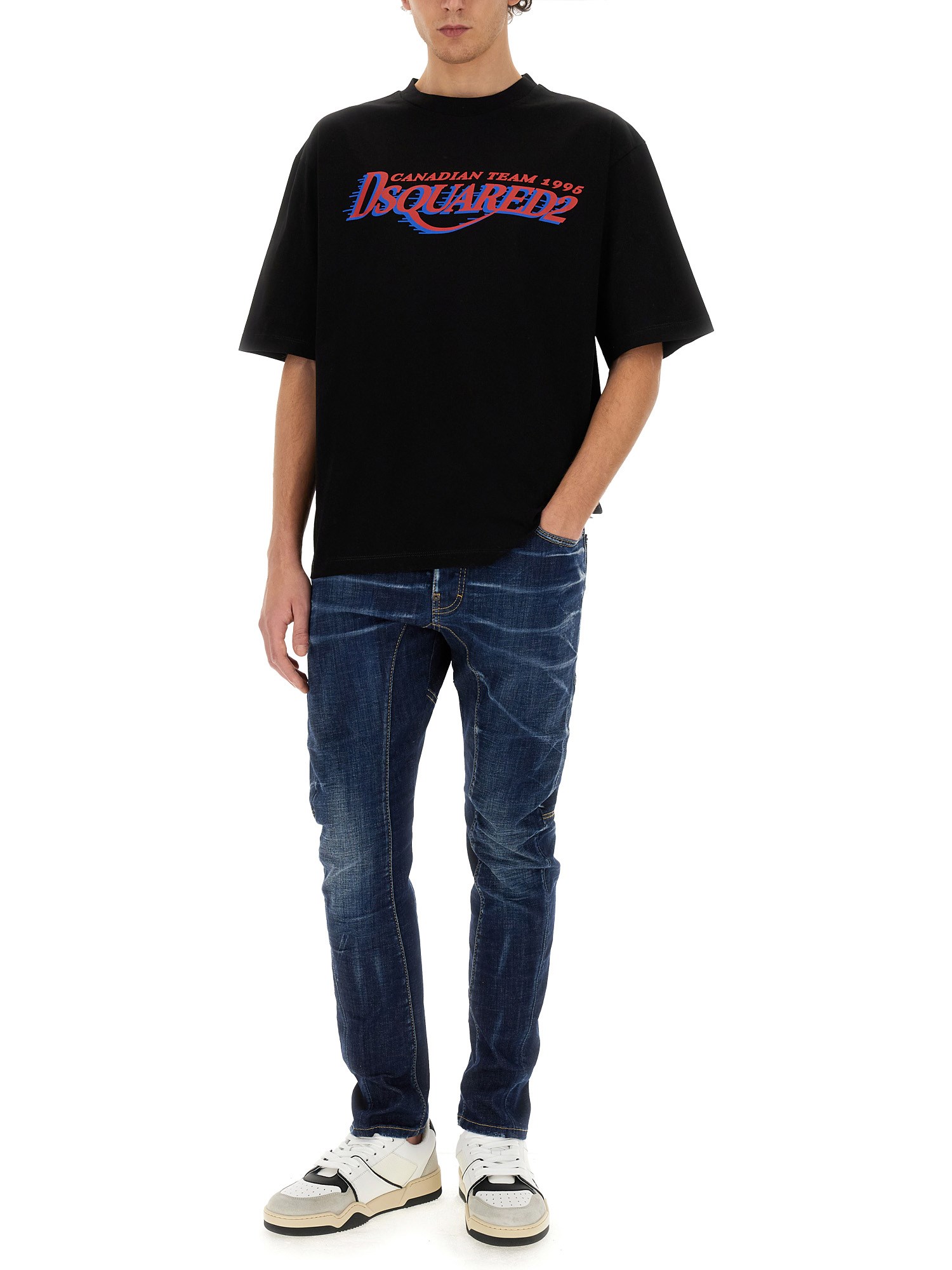 This T-shirt from Dsquared offers a combination of comfort, style, and durability. Featuring a sleek black colour, this T-shirt is perfect for any occasion. The black hue adds a touch of sophistication, making it an ideal choice for both casual outings and more formal events. The front logo print adds a trendy and eye-catching element to the shirt.