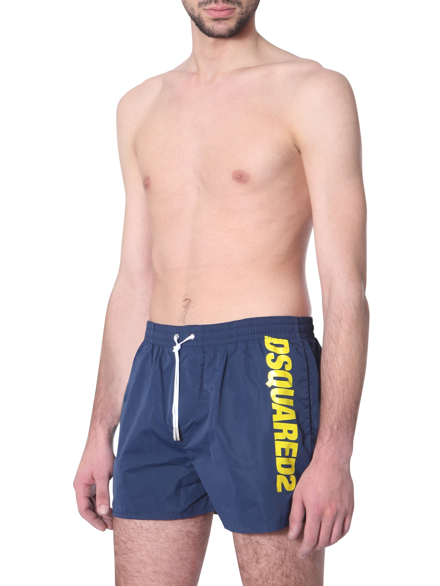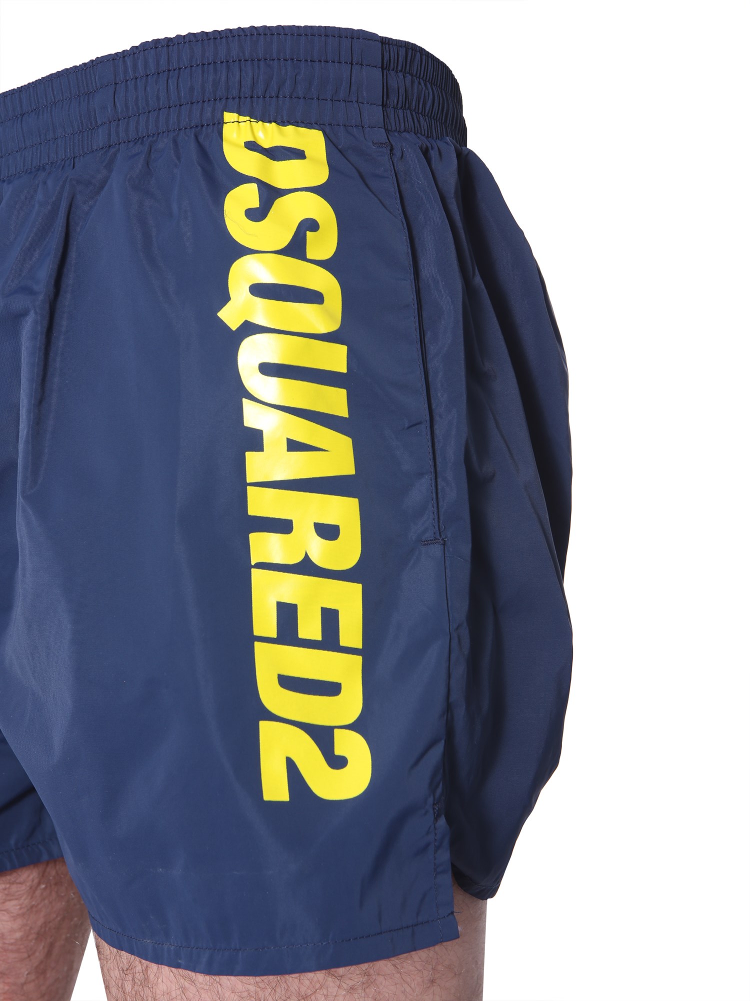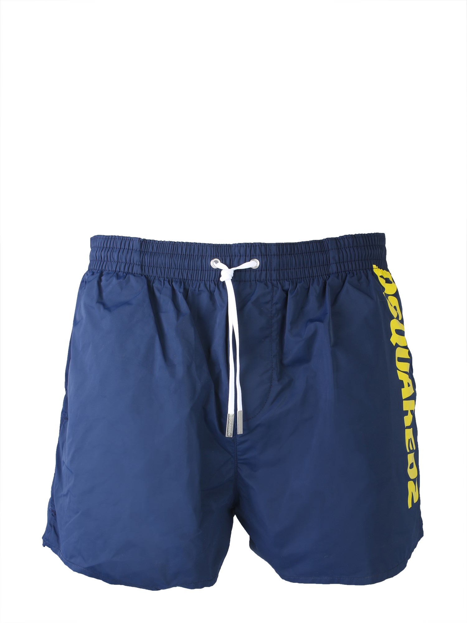 Slip on style with this boxer swimsuit brought to you by DSquared. The shorts are made from good quality polyamide that ensures easy maintenance with durability. It features an elastic waistband for a comfortable fit around the waist. The shiny and smooth surface makes it apt to wear it for a pool party.
