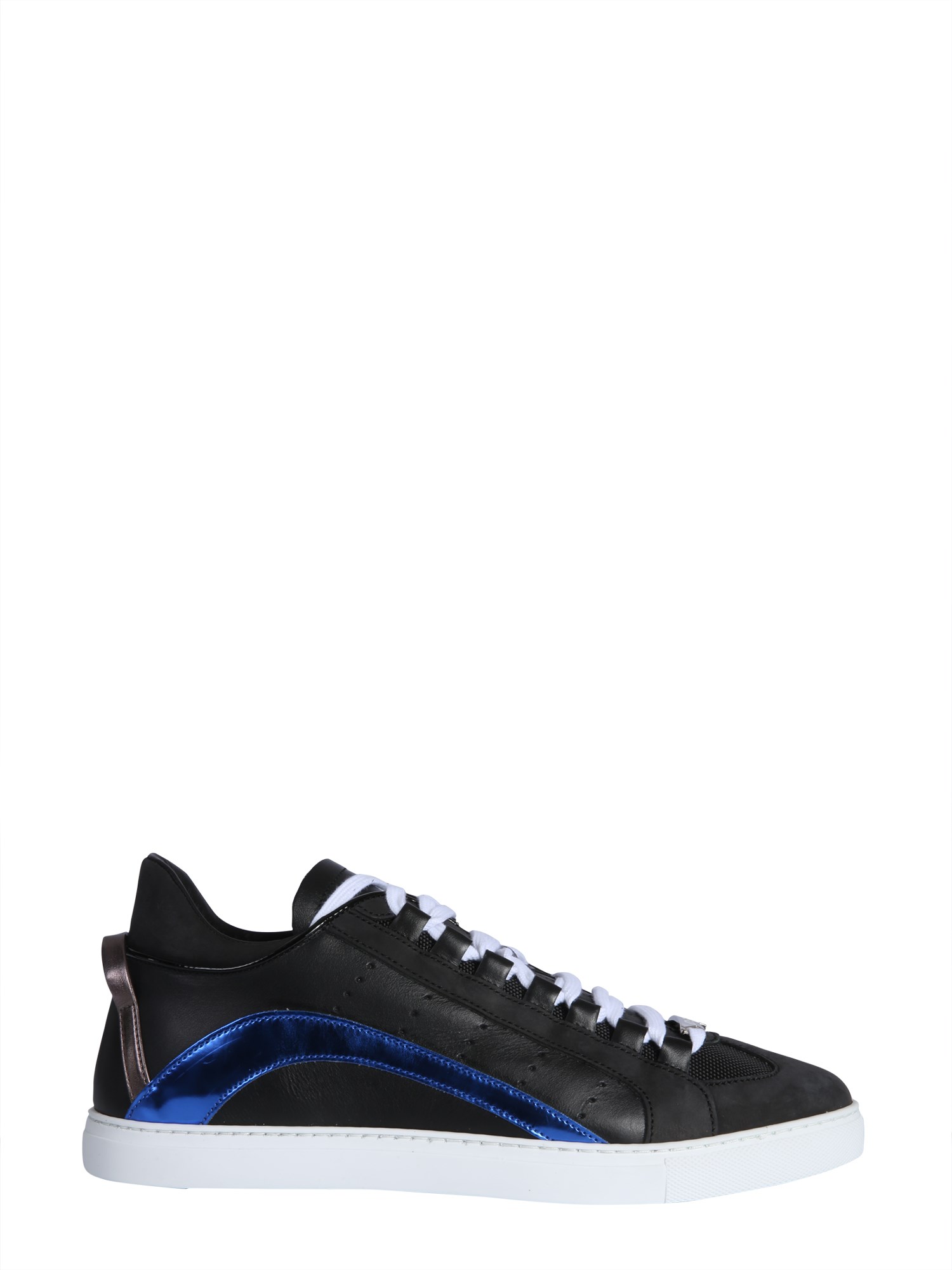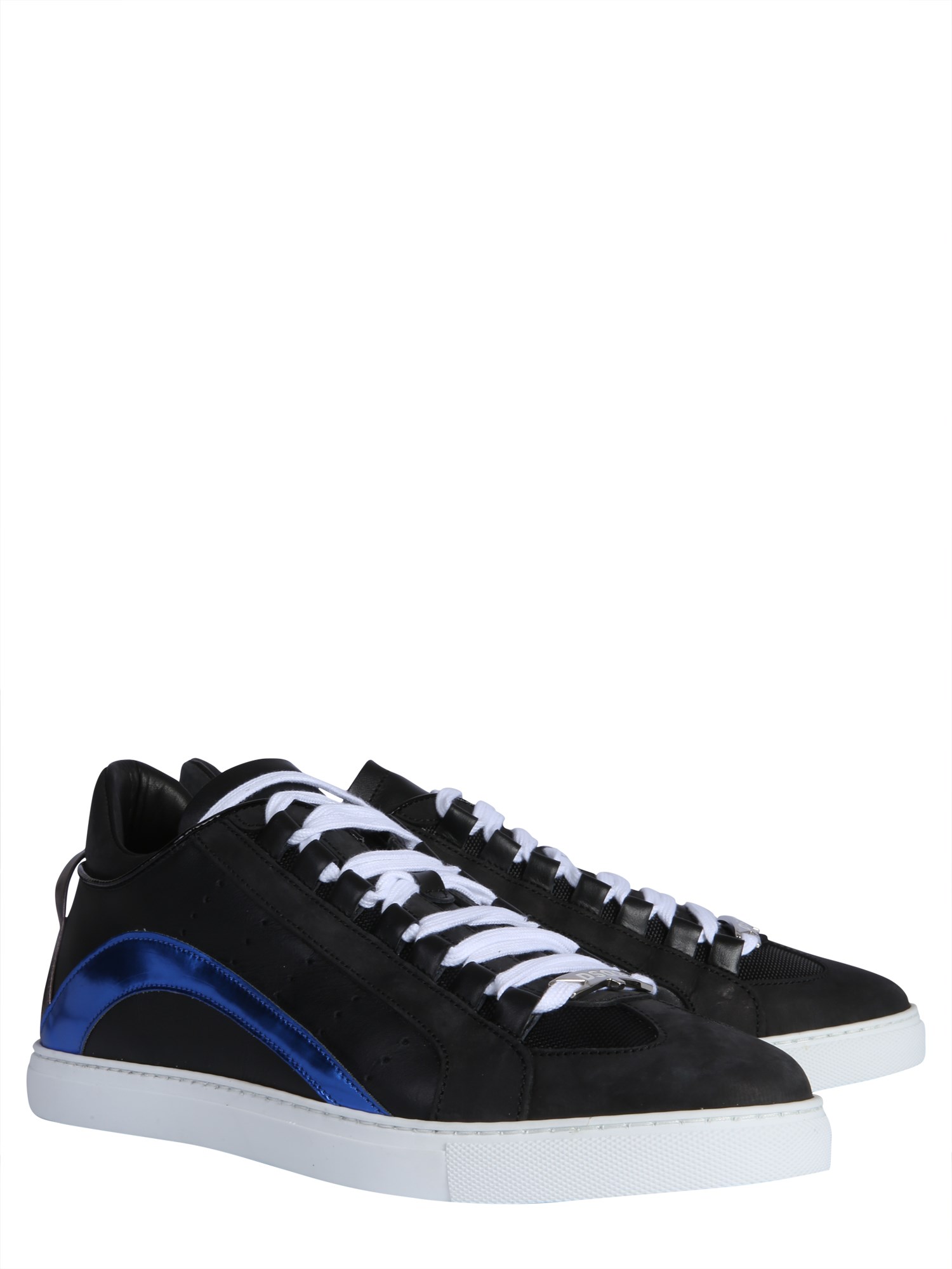 Designed by Dsquared2, these athleisure leather shoes are designed for comfort and sturdiness. Made with calf leather, the shoes intend to be a reliable partner for variety of outdoor games. With flat lace-up closure on the front, the shoes let you achieve a perfect custom-like size. Metal plate with logo icon complete their look.
