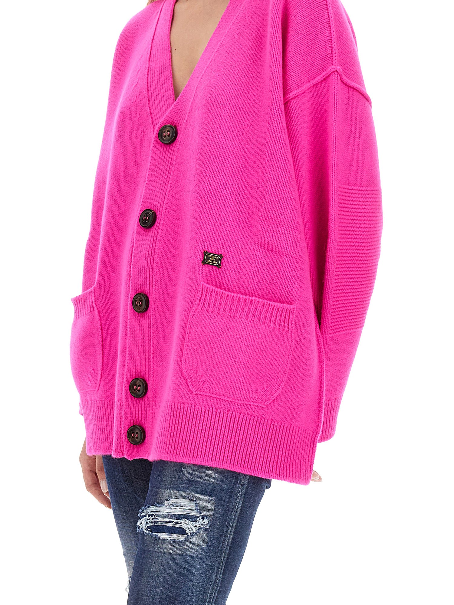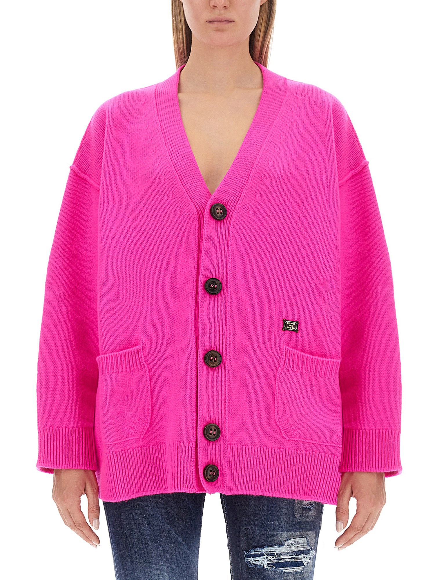 If you're in the market for a warm, cosy winter accessory, then you'll want to take a look at this wool and cashmere cardigan from Dsquared. It has a V-neckline, long sleeves, and a straight hemline. The soft cardigan has a front button closure. This sweater is a blend of both materials, giving it a luxurious, soft feel.