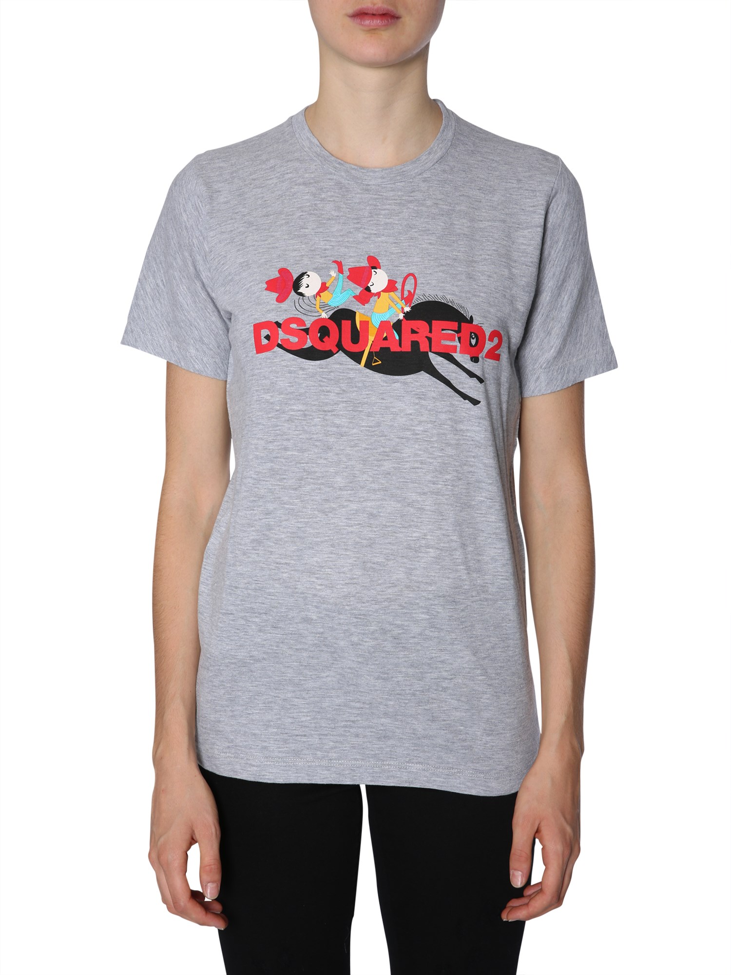 - RIBBED COLLAR - SHORT SLEEVE- FRONT COWGIRLS PRINT- LAUREN FIT- 100% COTTON- MADE IN ITALY- MODEL IS WEARING SIZE S