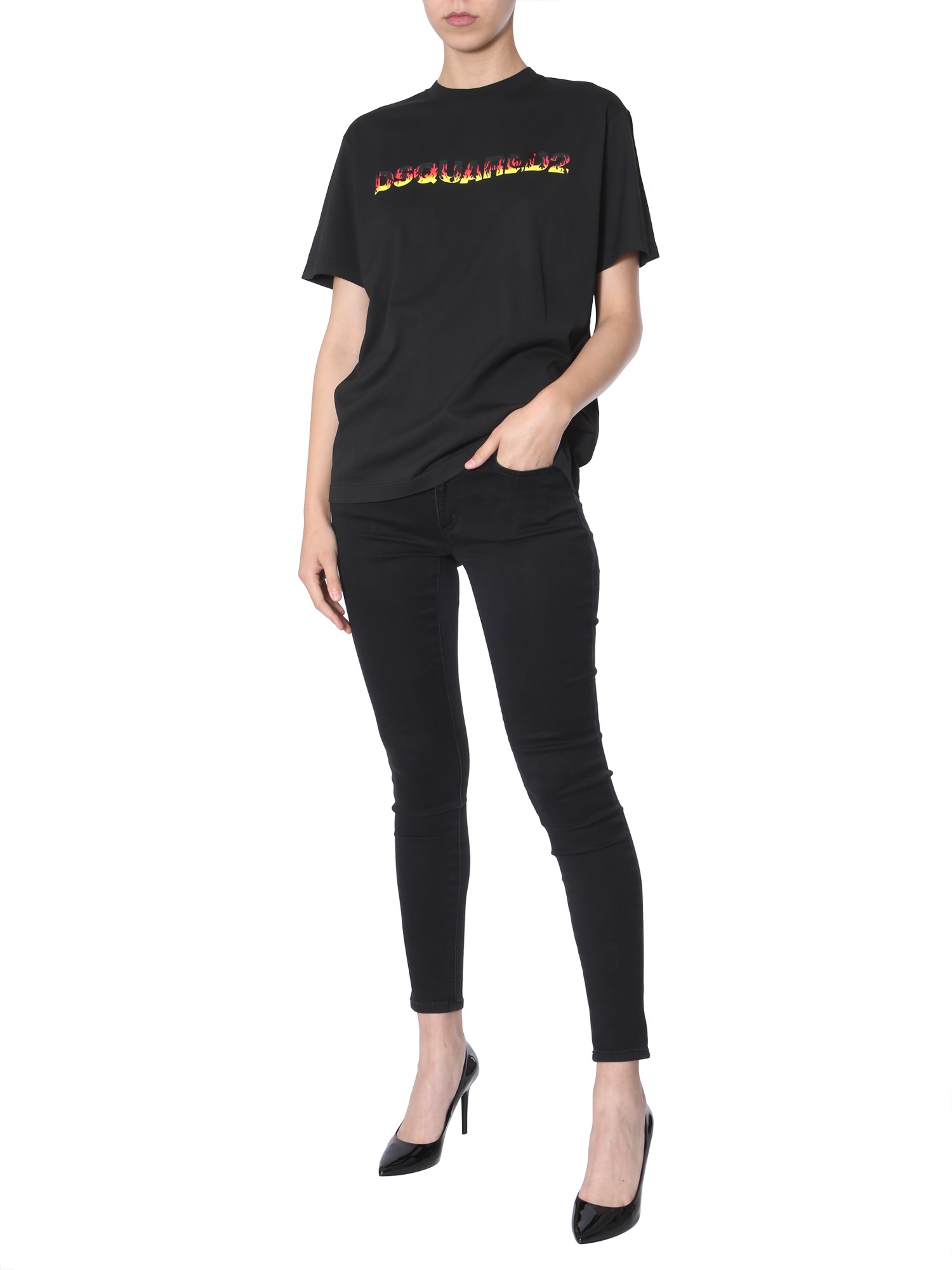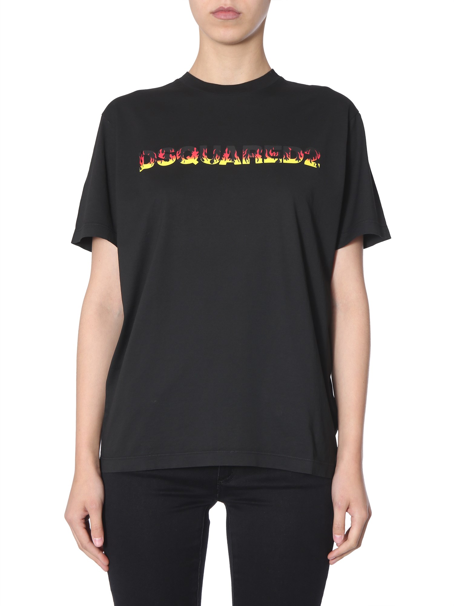 The combination of premium quality material with bold tones is what defines this smoke T-shirt from the DSquared collection. The round neck tee provides a smoke fit and is made of 100% cotton. The versatile design of this T-shirt will allow you to pair it with both casual and active wear outfit styles.