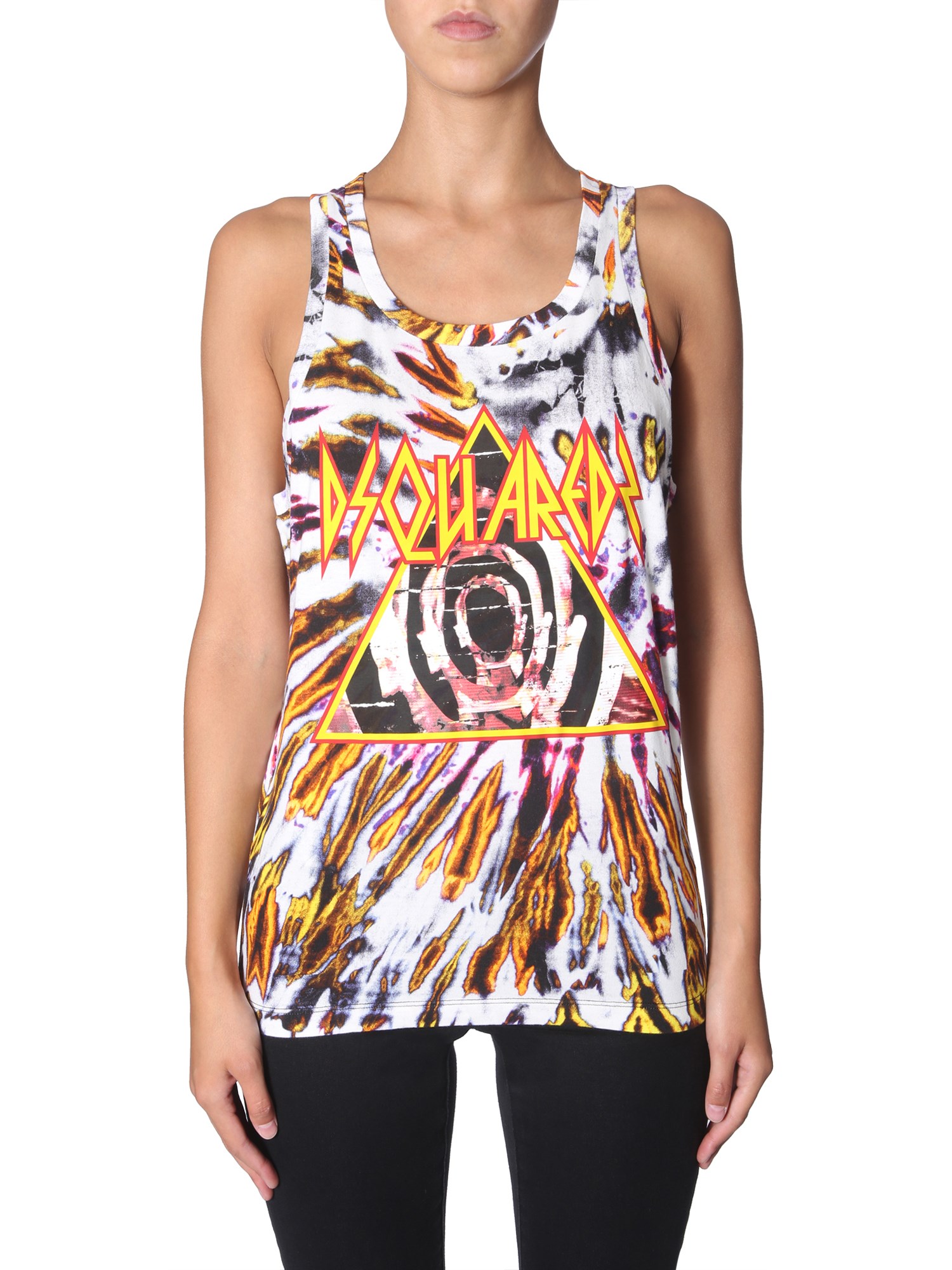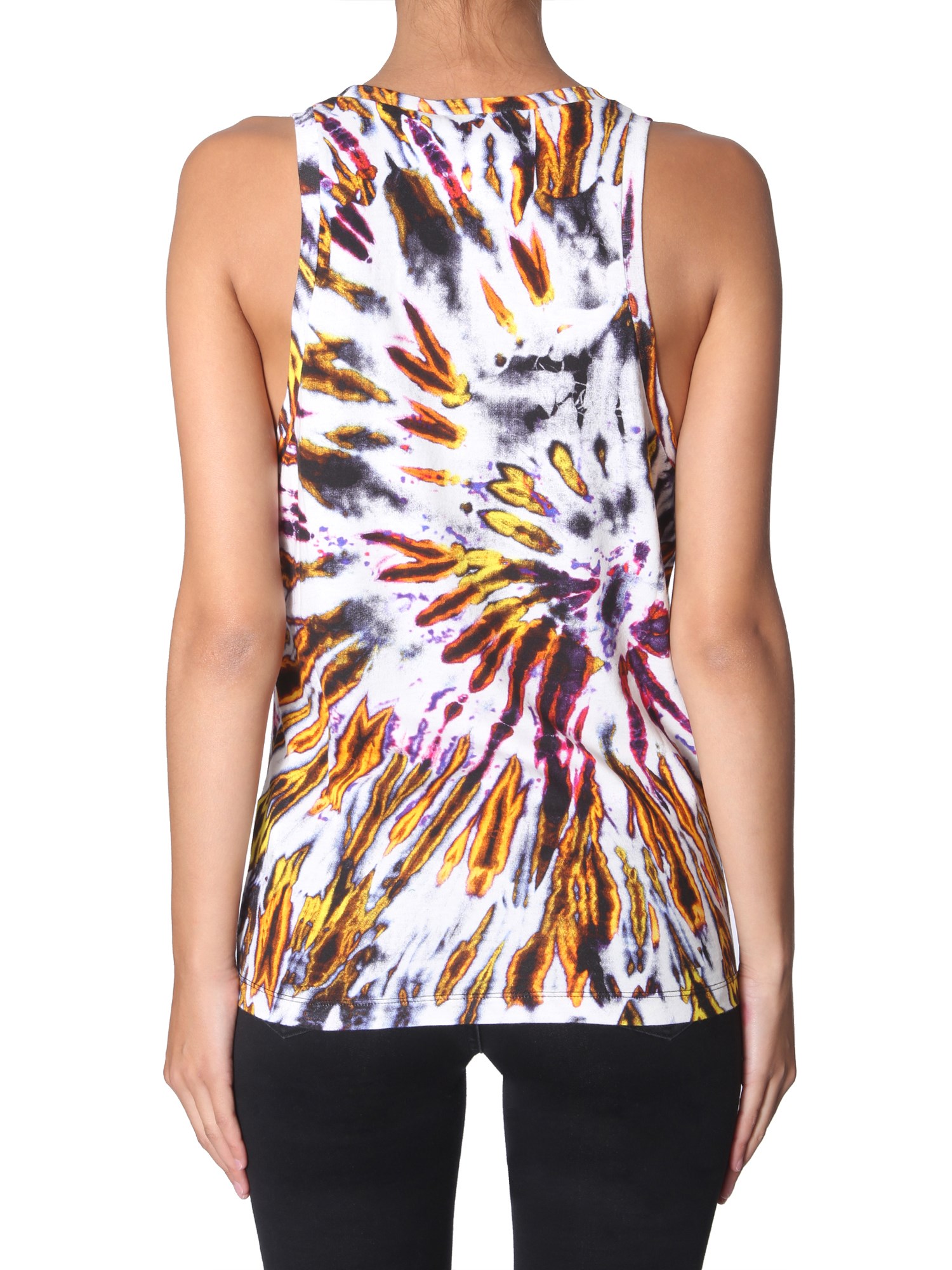 Flaunt a cool and sassy beach look with this tie and dye print top from DSquared. It is made of fine quality cotton that does not feel heavy on your skin. The overall printed surface is sure to catch some fancy compliments. The top looks amazing with denims, shorts and skirts as well.
