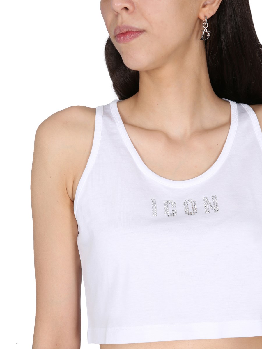 Keep it stylish and comfy by wearing the crop top from Dsquared. It has a scoop neckline, thin straps, and a straight hemline. Crafted from a soft cotton blend, the top is comfortable to wear. It also has a pull-on style and regular fit that allows you to move with ease. It also has a cropped silhouette.
