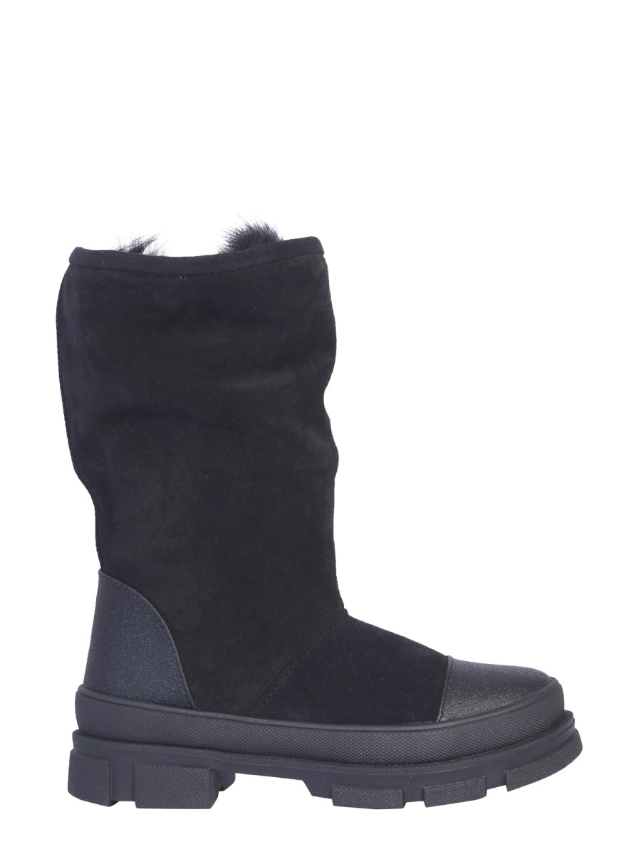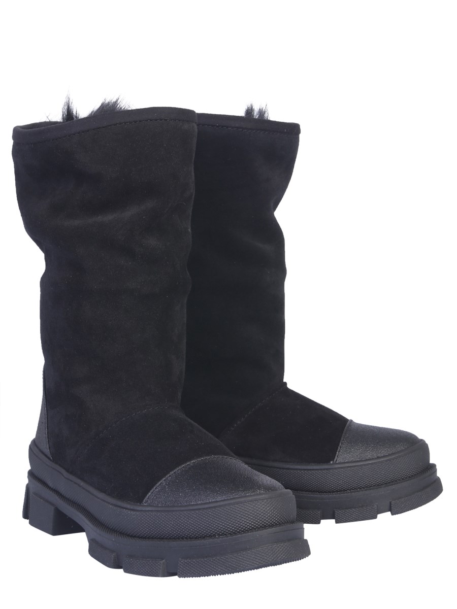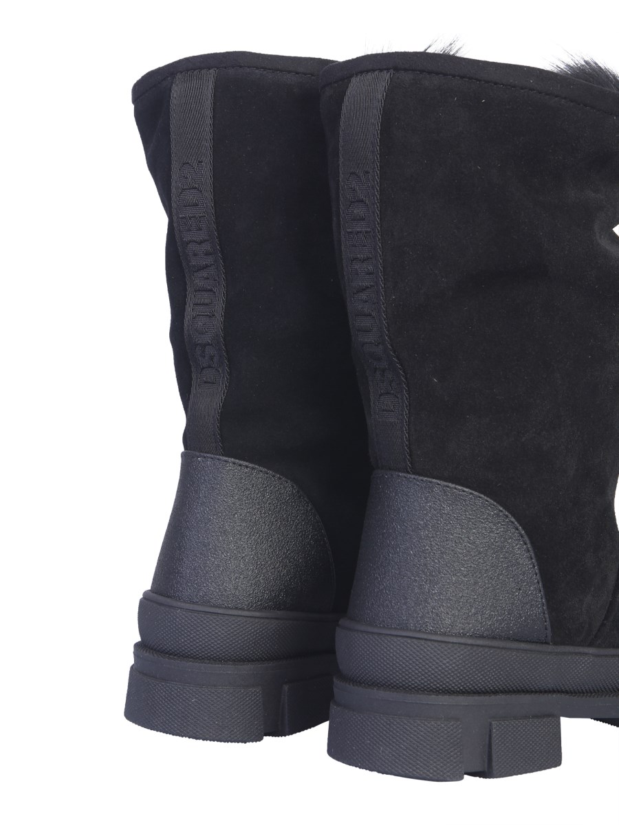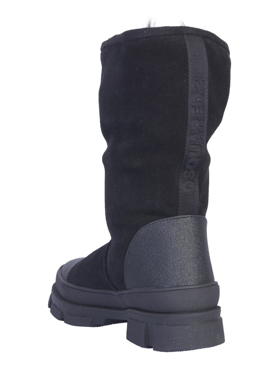 Keep your feet protected in the coldest of winters with these snow boots from DSquared. These shoes use leather material for a tough and flexible exterior, and suede lining with fur for the inside. The outsole has a uniform texture throughout to resist any damages as well as slipping on smooth surfaces.