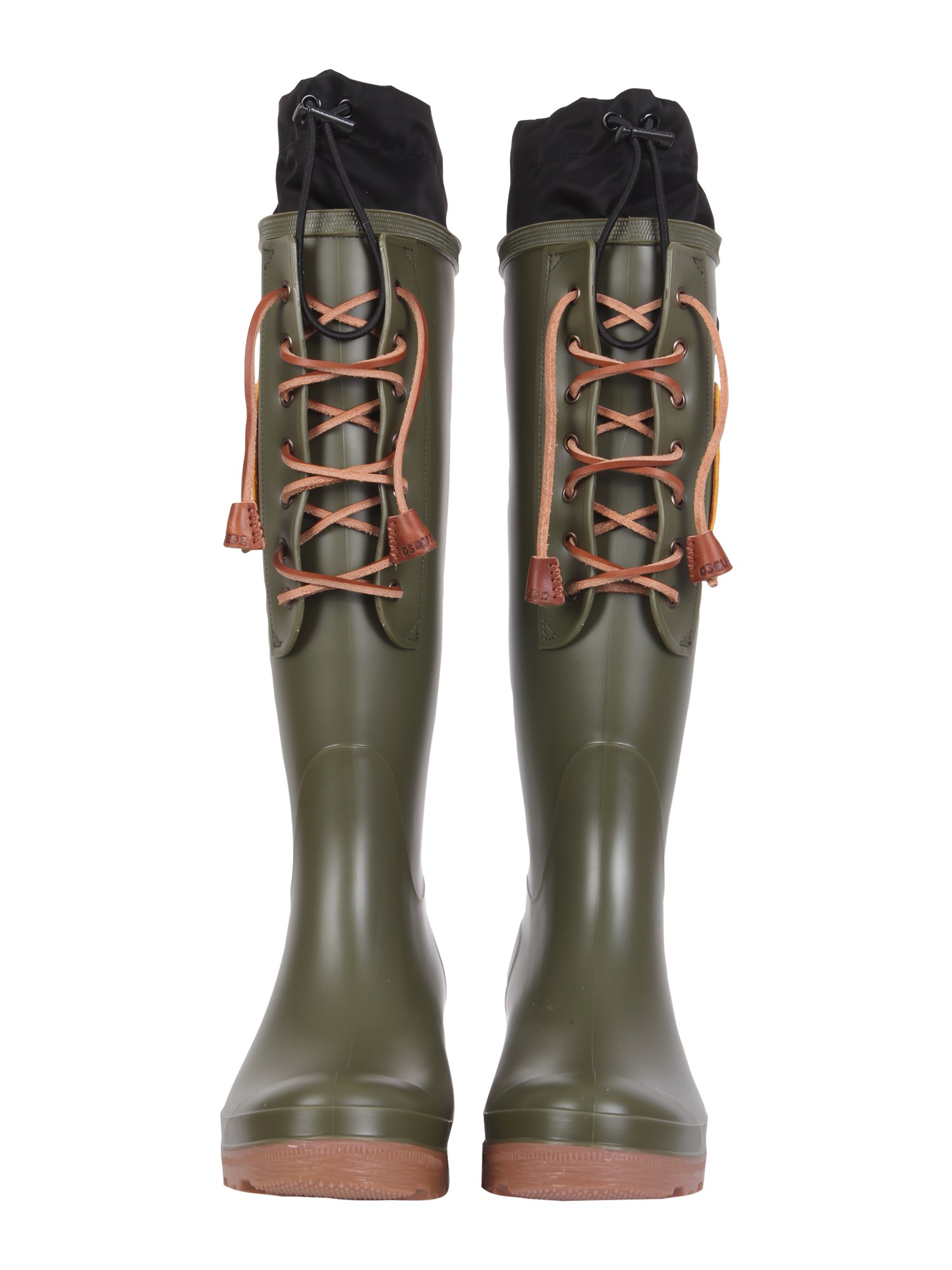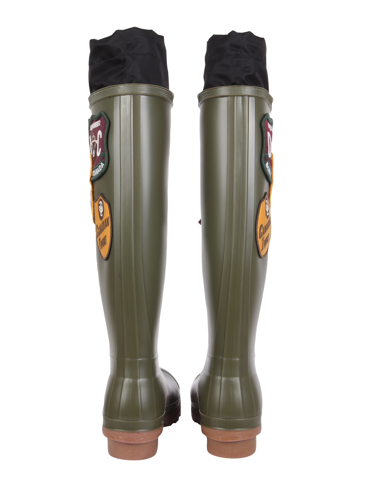 - RUBBER UPPER WITH LOGO PATCHES APPLICATION