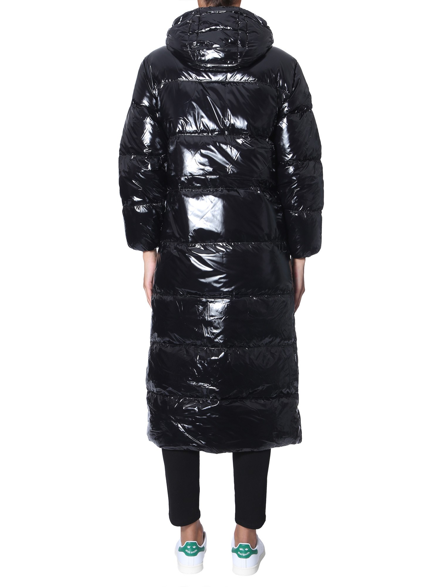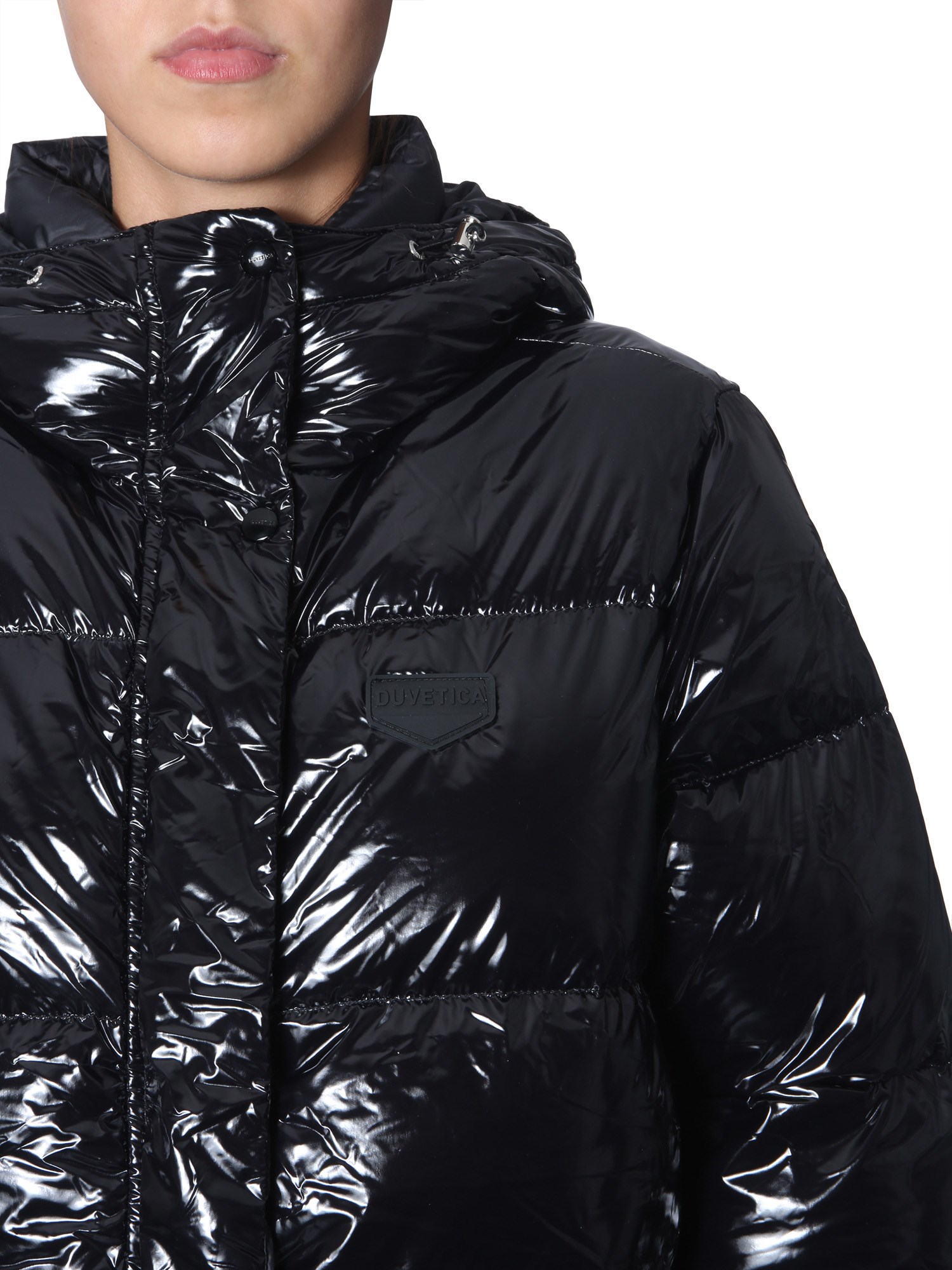 The long Zuben down jacket from Duvetica is your perfect partner for the adventure in cold weather or snow. The jacket is made of pure nylon with a glossy finish to keep you warm without compromising on style. It has a hoodie with coulisse to protect your head from the wind. It has two side pockets to carry small essentials safe.