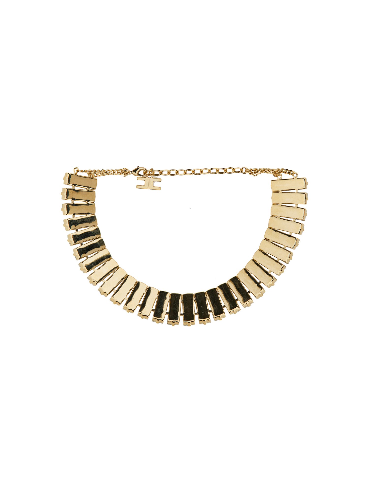 This chic choker from Elisabetta Franchi is made with a round, gold-tone chain with a hook closure at the end. It is perfect for adding a bit of flare to your look. This gold-tone chain has a hook closure at the end of the chain. The end of the chain also has a beautiful and elegant design that makes it look more like a baguette than a straight chain.
