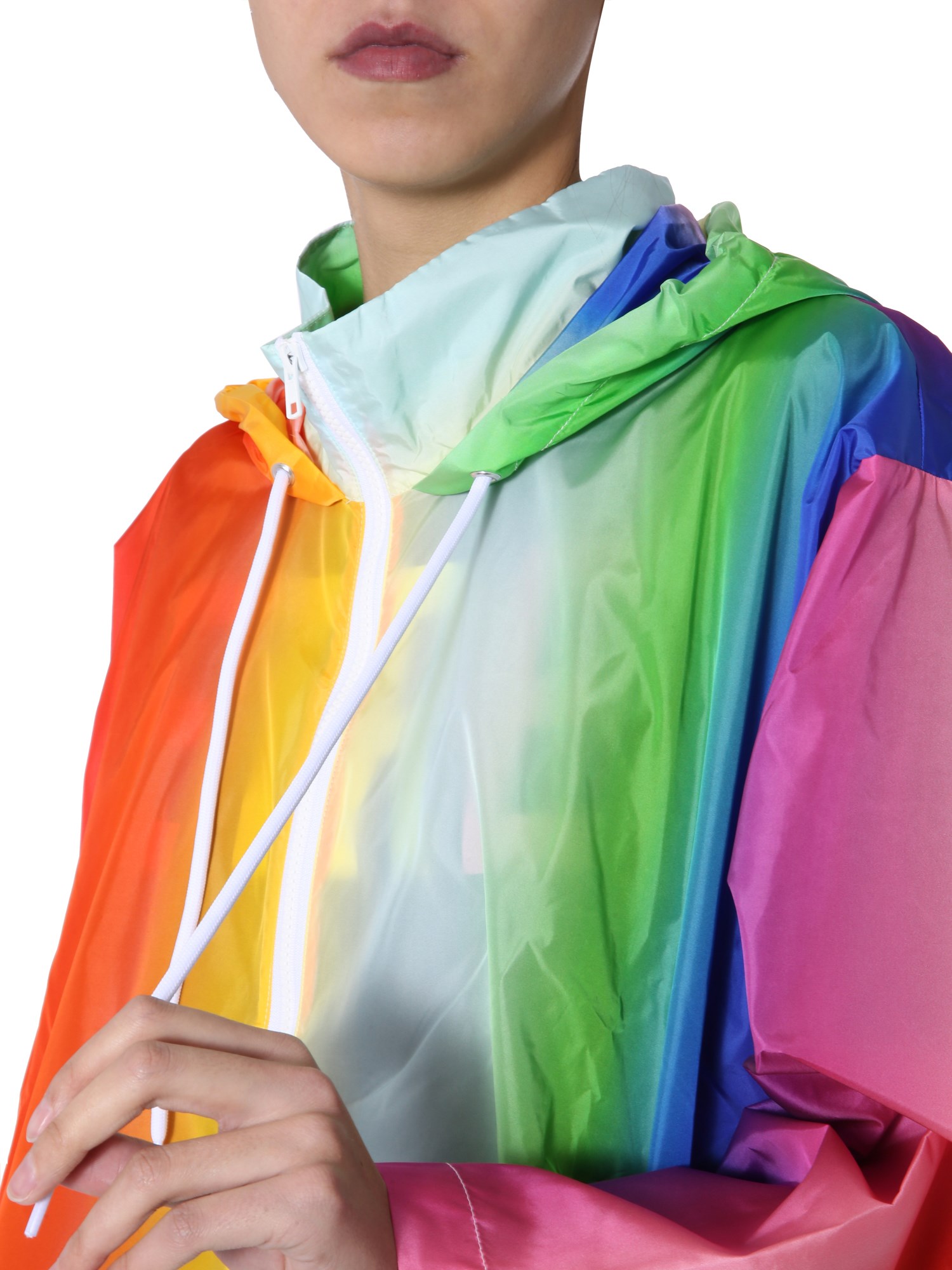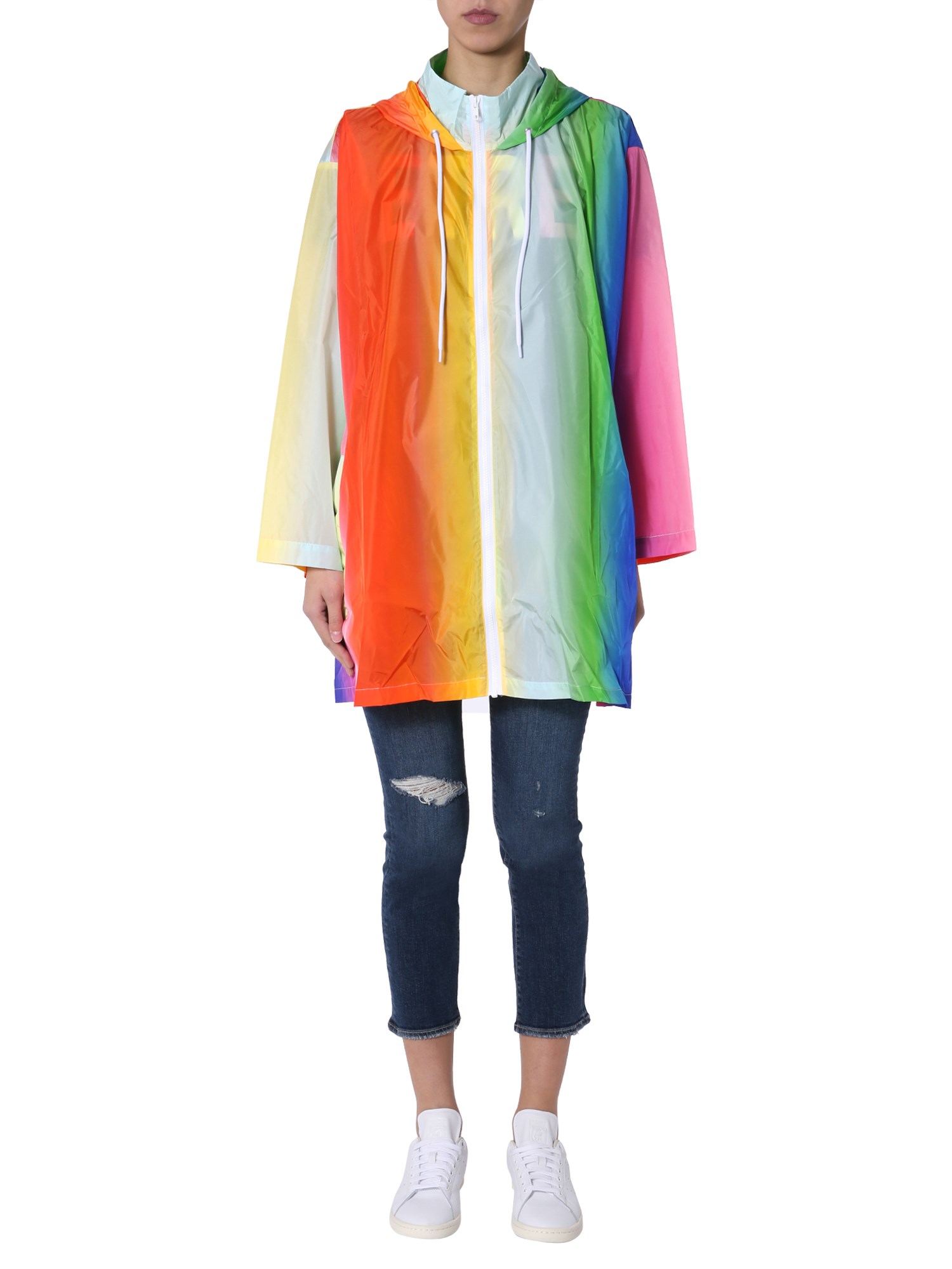 Brighten up everyone’s day with the Rainbow multi-coloured parka by Être Cécile. This attractive long top is made of stretchable fabric and has an unlined inner. Its hooded neck and front zip closure are designed for a comfortable fit. Pair up this colourful parka with basic leggings and shoes.