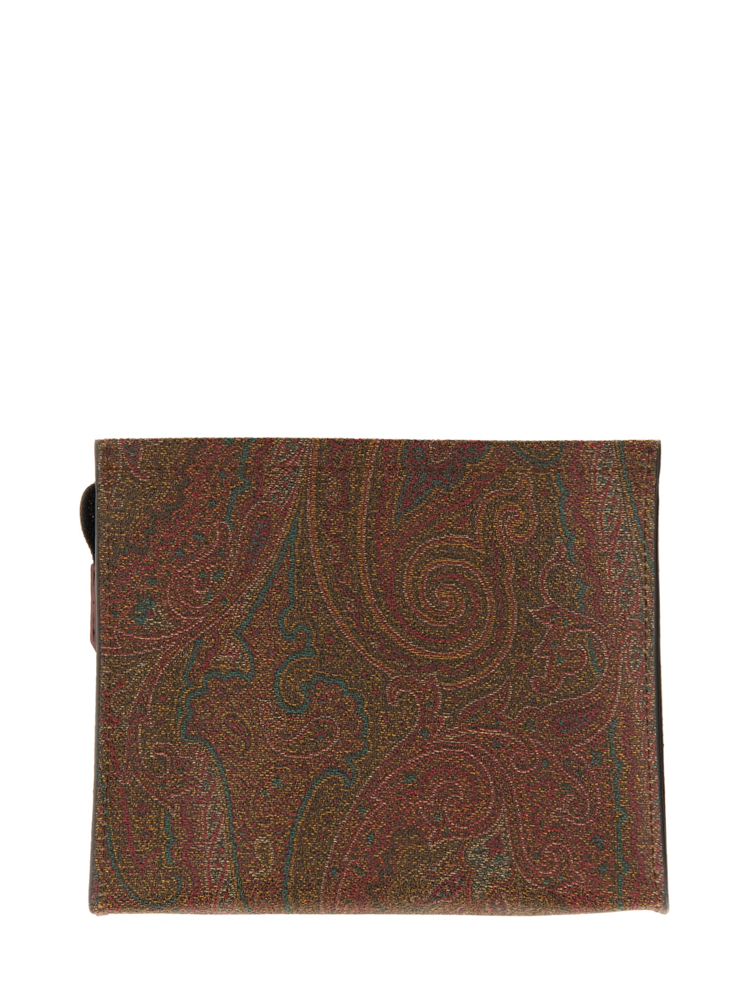 This paisley patterned cotton pouch from Etro is the perfect size to hold your favourite items. The zipper closure and the durable fabric are great for storing items like makeup, jewellery, and more. It is made of a cotton blend fabric that will keep you cool and fresh. This pouch is a perfect way to organize your essentials.