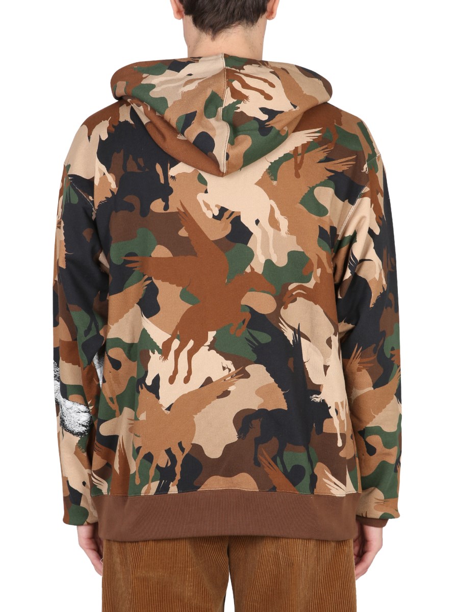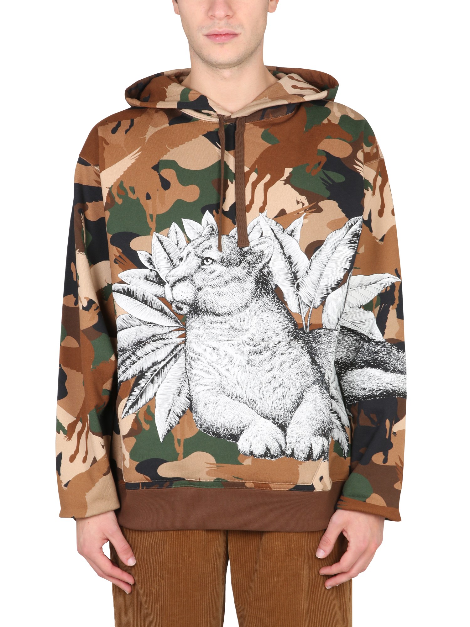 A camo hoodie from Etro that has the warmth of cotton, with a camouflage print. This hoodie is perfect for the fall, with the hoodie being perfect for a casual look or going out in style. The camo print is perfect for a fun fall look, while the camo print on the back gives the hoodie a unique twist.