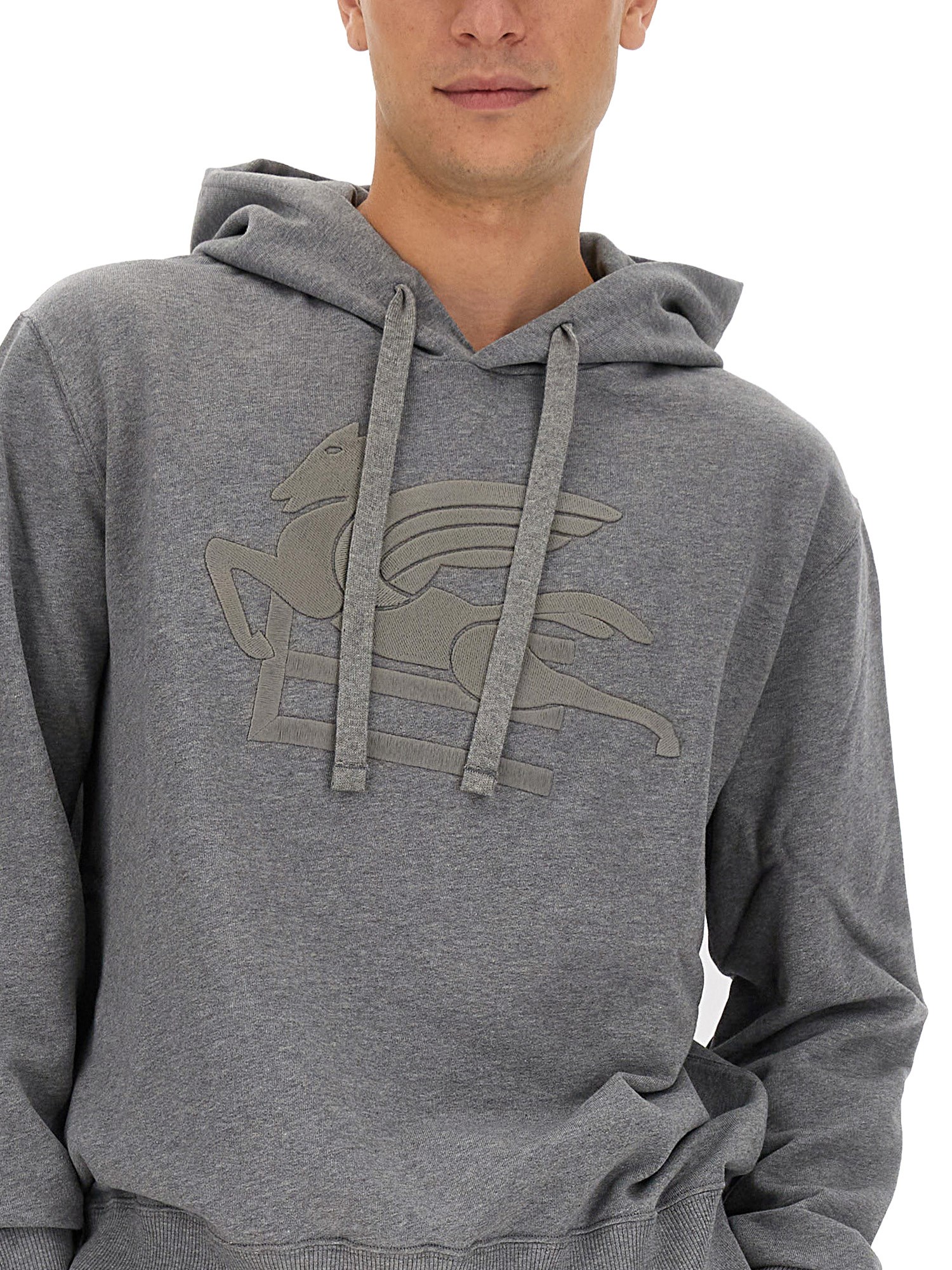 This sweatshirt from Etro is designed to keep you cosy and fashionable throughout the day. Made from premium cotton fabric, this sweatshirt offers a soft and gentle feel against your skin, ensuring maximum comfort and breathability. The drawstring hood adds a touch of versatility to the design, allowing you to adjust the fit according to your preference and style. With its classic grey colour, this sweatshirt effortlessly blends into any outfit and can be paired with jeans, leggings, or joggers for a casual yet trendy look.