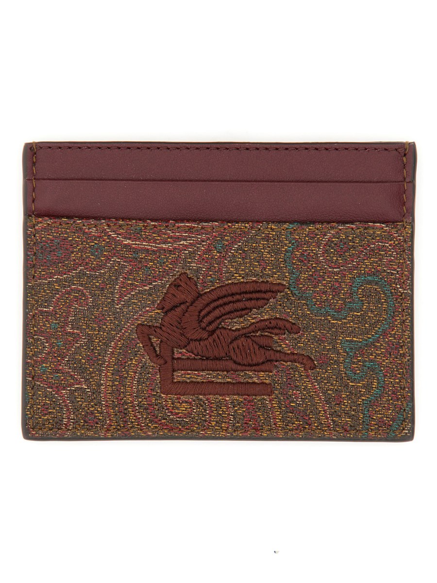 This stylish and practical accessory from Etro is perfect for keeping your cards organized and secure. Made from a blend of cotton and polyester, it features a beautiful paisley pattern and the Etro logo embroidered on the front. With multiple card slots and a compact design, it's easy to carry in your pocket or purse.