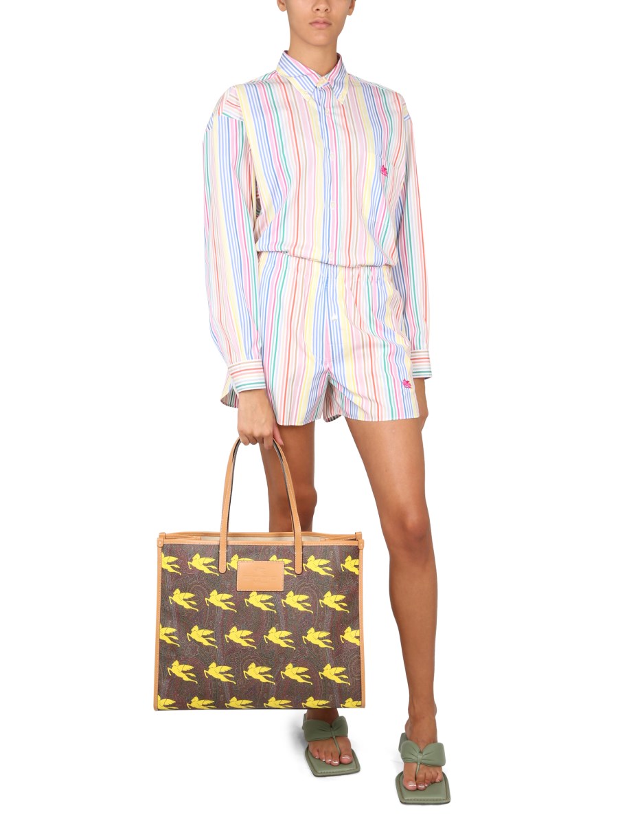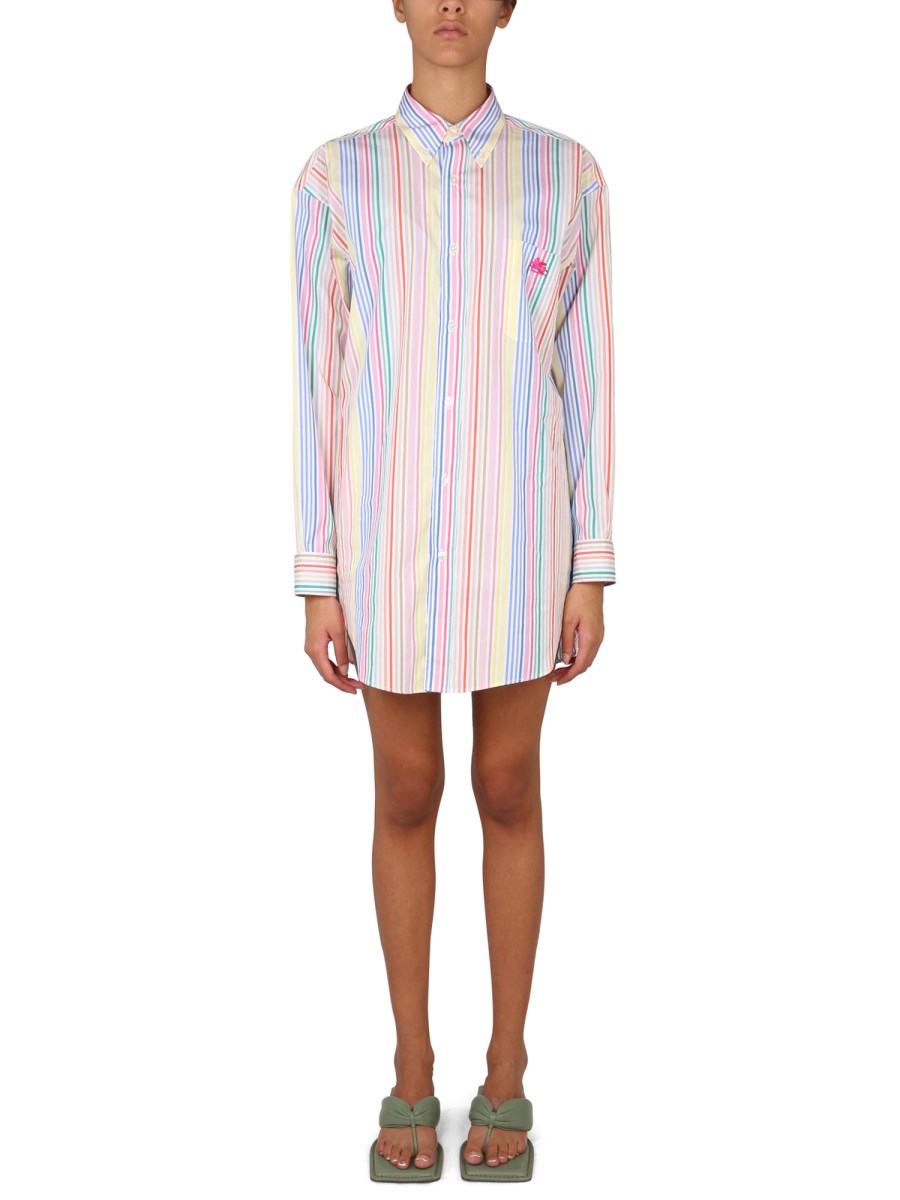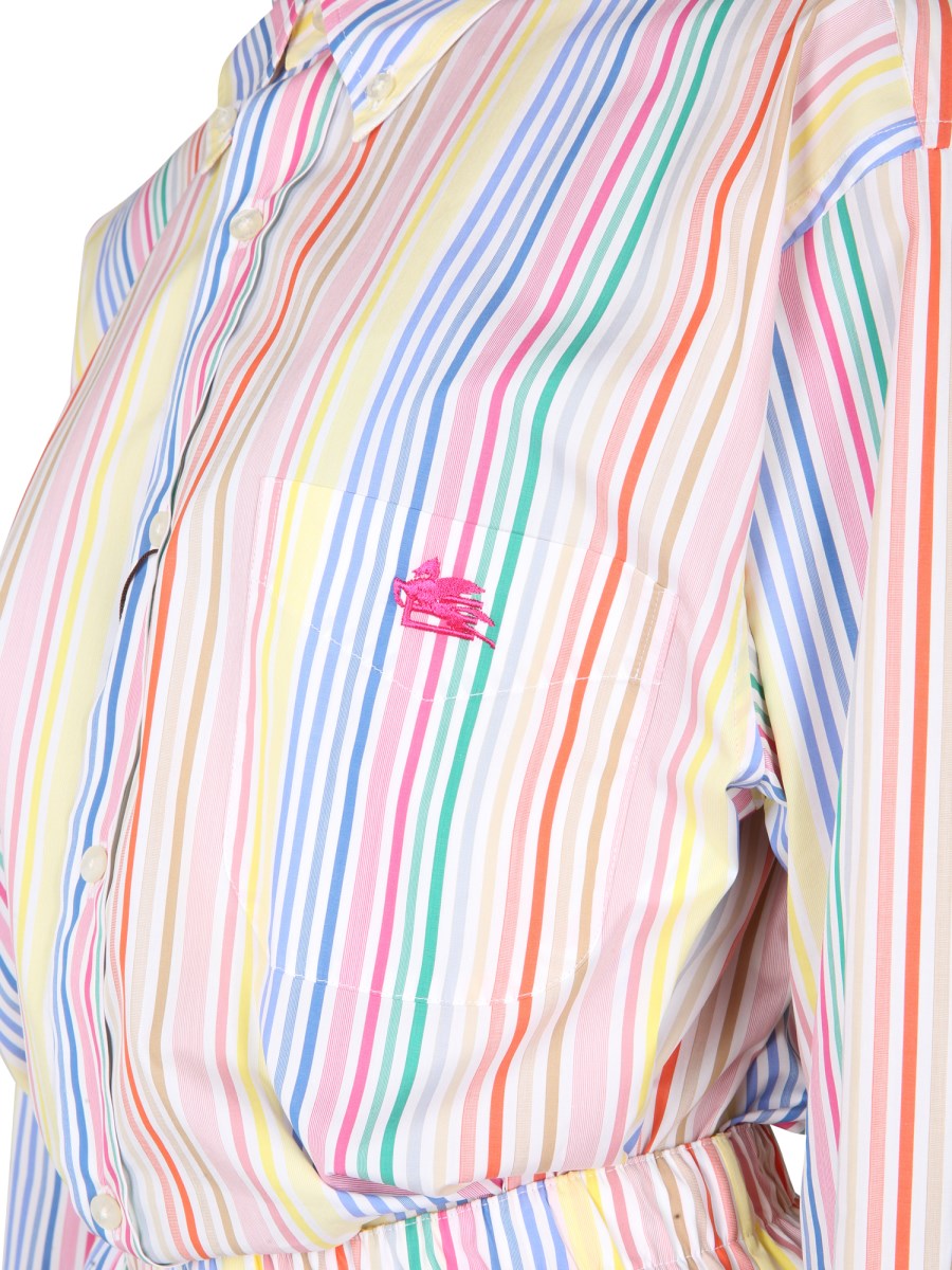 A lightweight striped shirt from Etro that is an ideal addition to any outfit, this shirt has a button-up front and a long collar. This shirt is so versatile. Wear it with jeans and a jacket, or with a dress and a cardigan. The shirt has a soft, but slightly stiff feel. The collar is a bit pointy, but is more rounded and not uncomfortable.