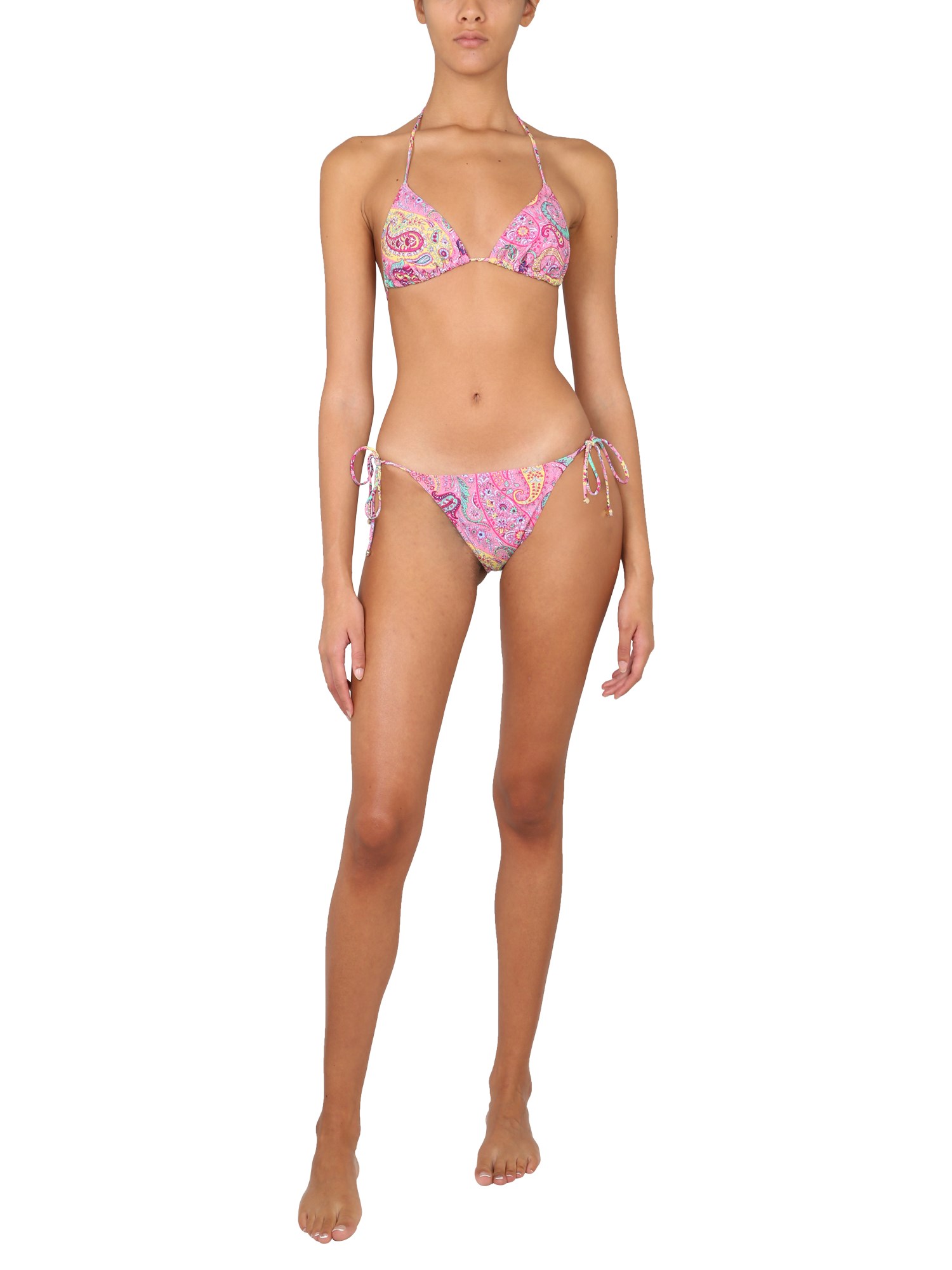 The Etro-designed bikinis in the style of this balconette bikini top with all over paisley pattern offer a relaxed, modern look. The bikinis are crafted from a fabric that is super soft and stretchy and provides a perfect fit. The top is made from high quality 100% cotton and the bottom is made from lightweight spandex.