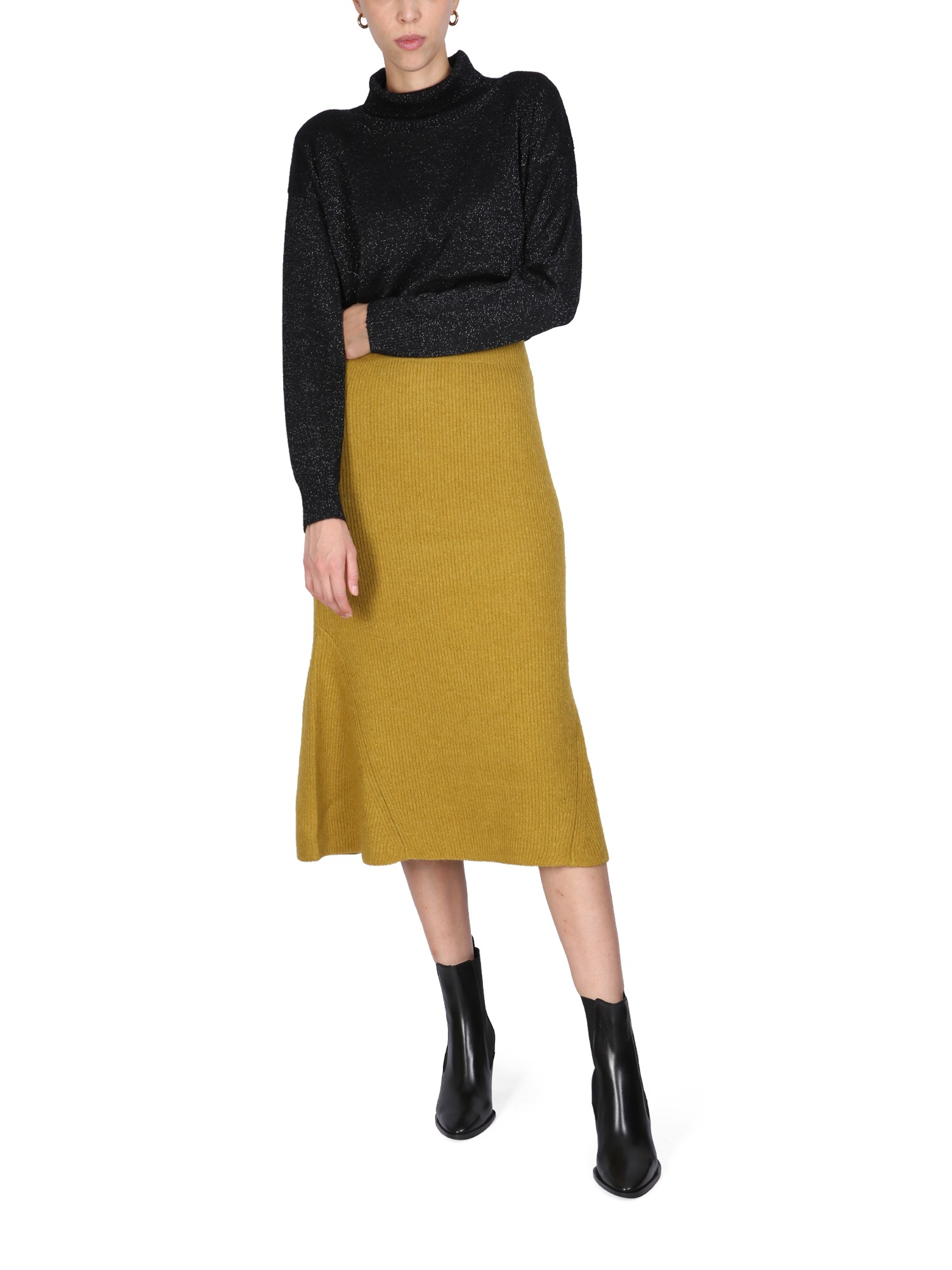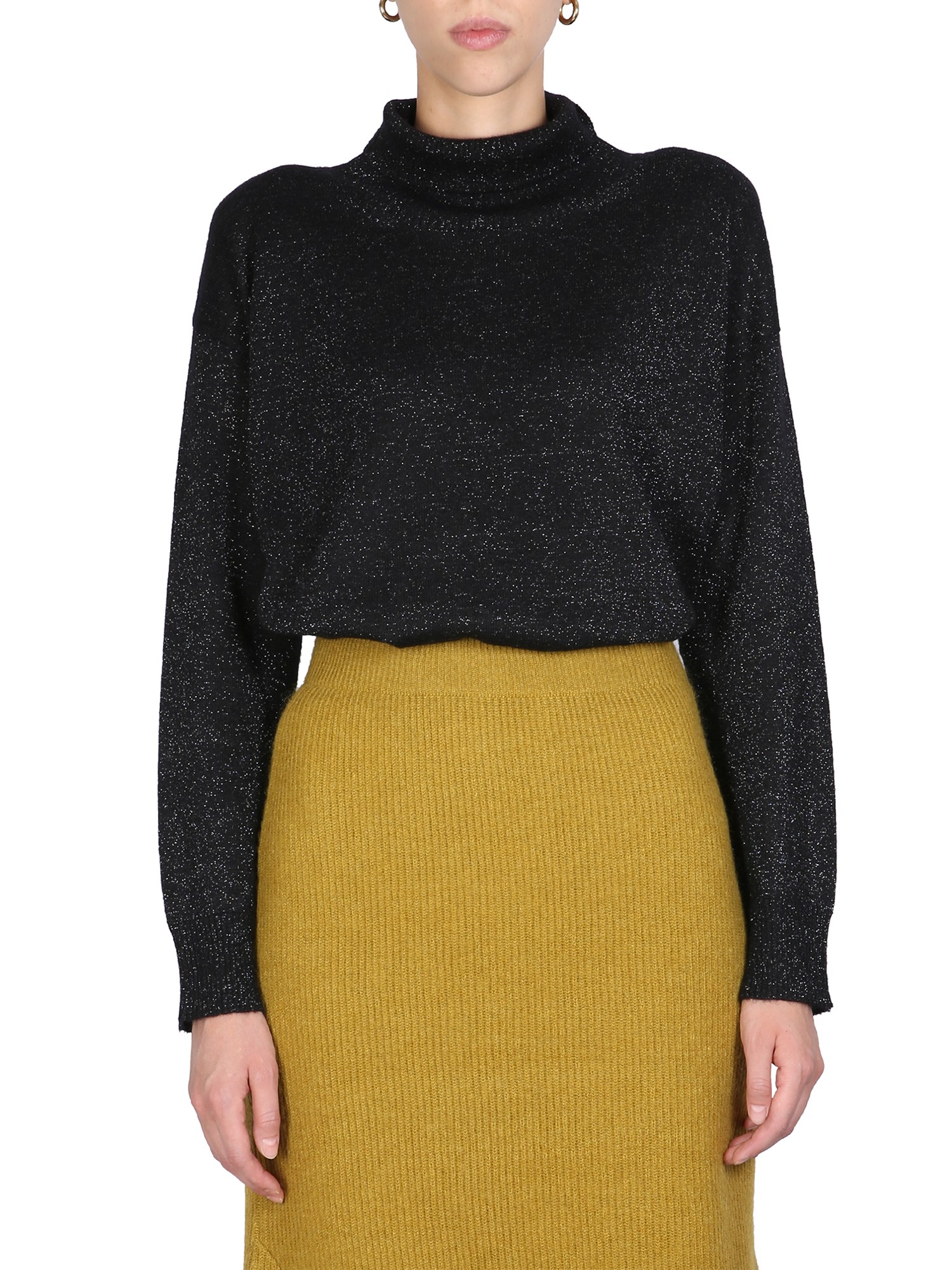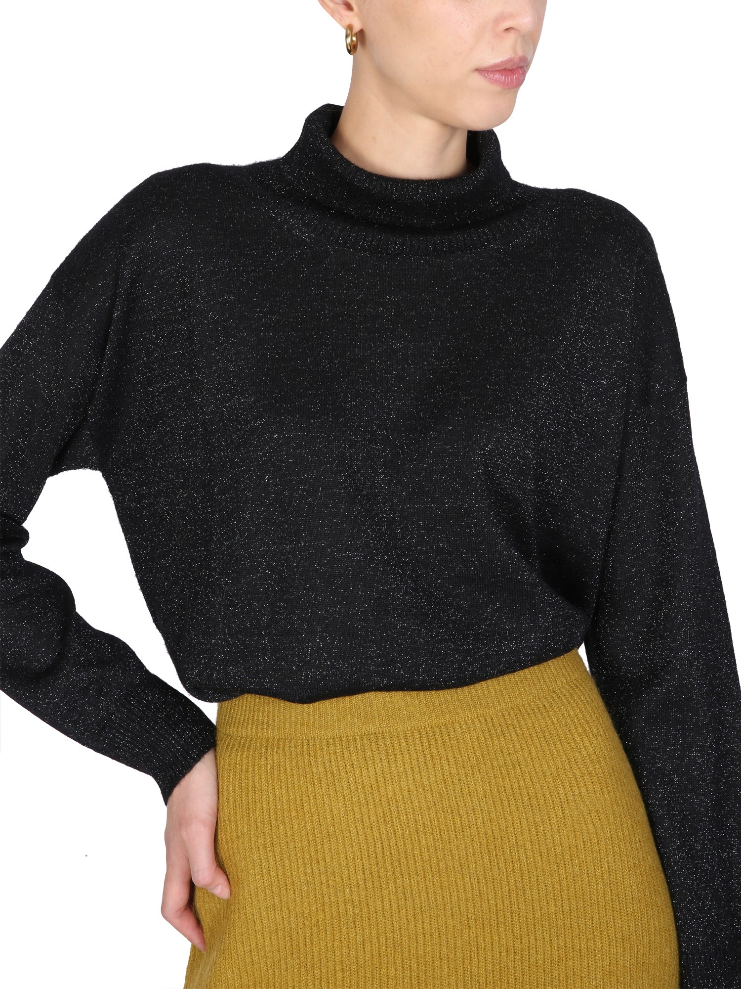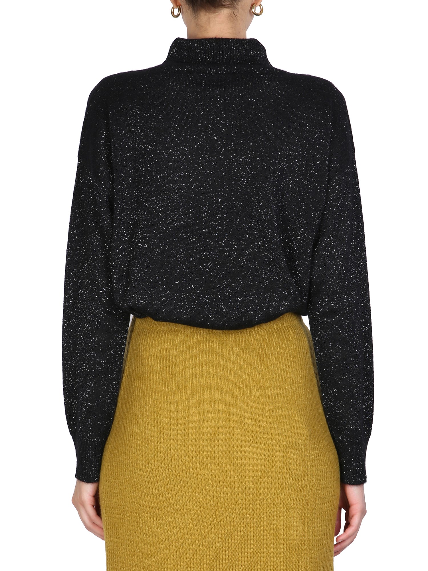 If you're looking for a sweater that will keep you warm and stylish this winter, then this is the one by Fabiana Filippi for you. This turtleneck sweater is made of 100% wool and features a high neck ribbed collar. This sweater is perfect for layering or wearing alone and will be a staple in your wardrobe for years to come.