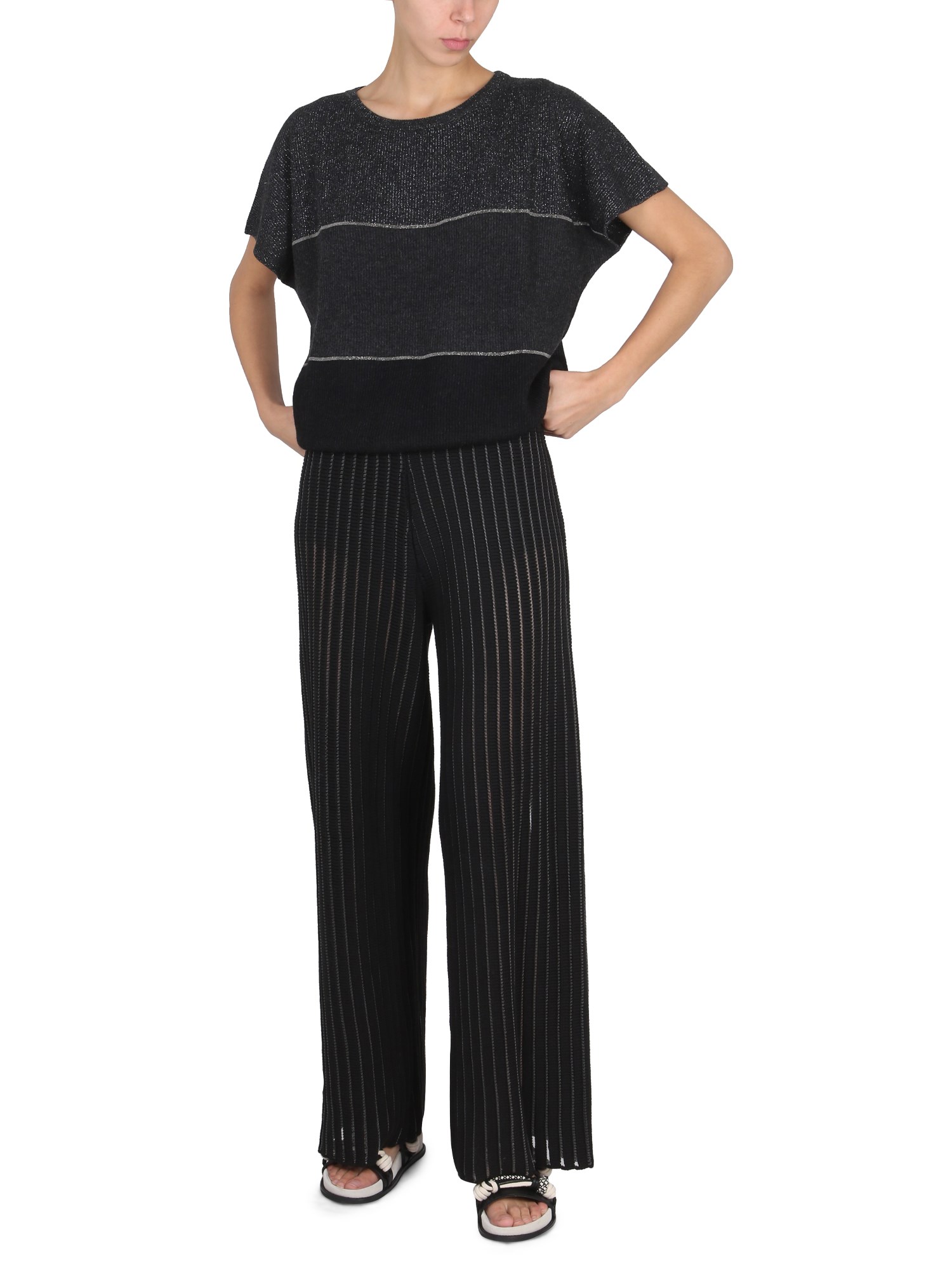 - CROWLING- COLOR BLOCK- SHINING DETAIL- 39% VIRGIN WOOL, 17% MOHAIR, 17% ALPACA, 14% POLYAMIDE, 8% SILK, 5% CASHMERE- MADE IN ITALY- THE MODEL IS 180 CM TALL AND WEARS SIZE 40 IT