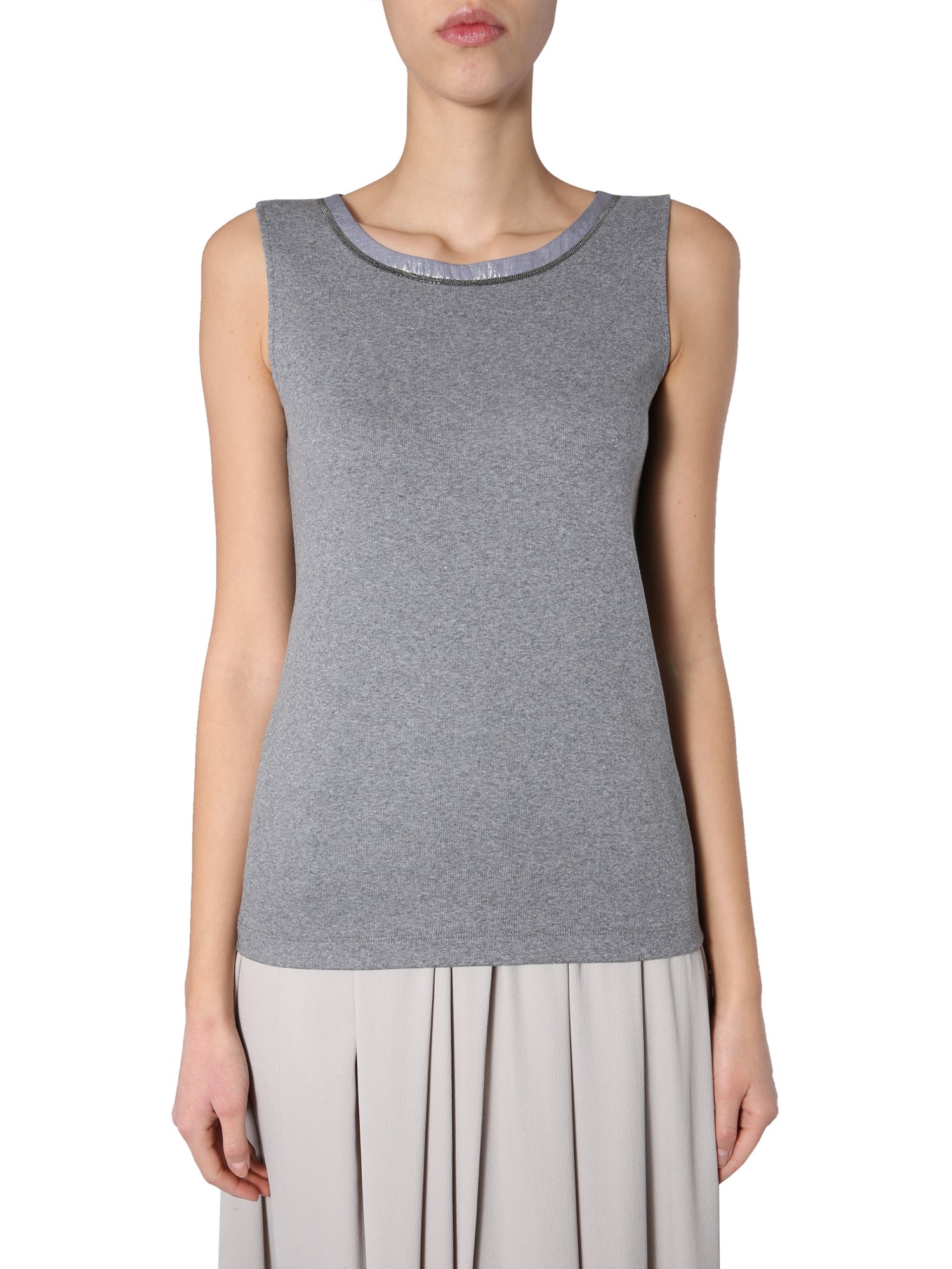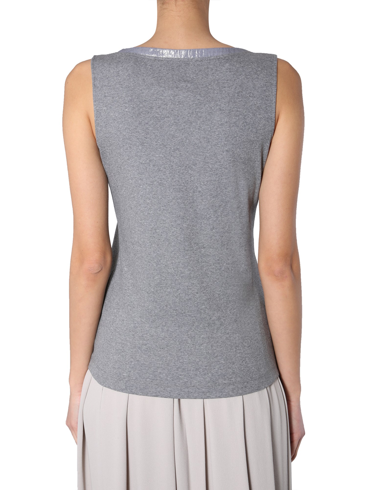 It is summer and the best time to wear this comfy and lightweight round neck tank top from Fabiana Filippi. The top flaunts a sleeveless design and simple exterior which make it easier for you to match it with any lower in your closet. Plus, who can question about the comfort when it is made of pure cotton?