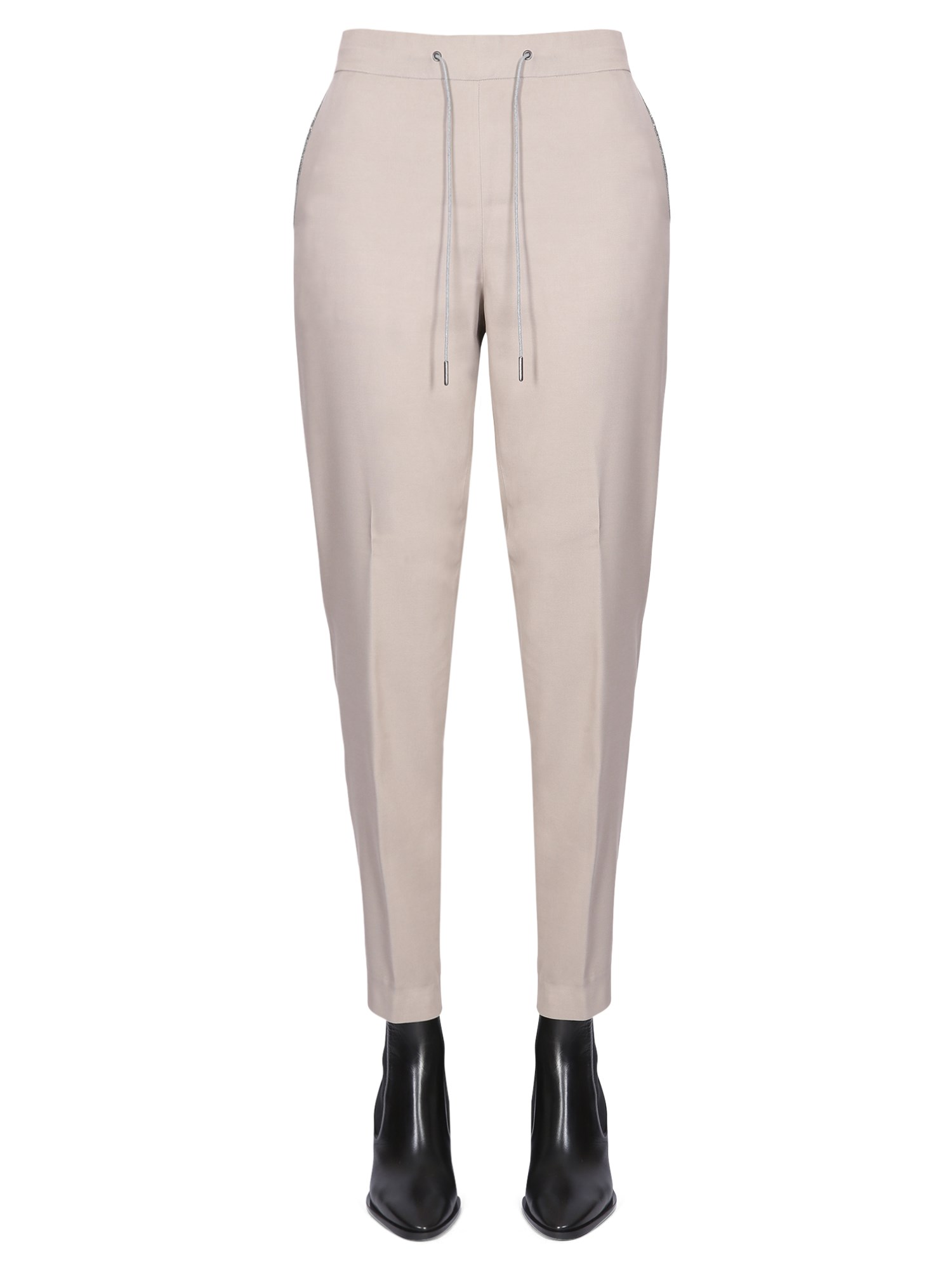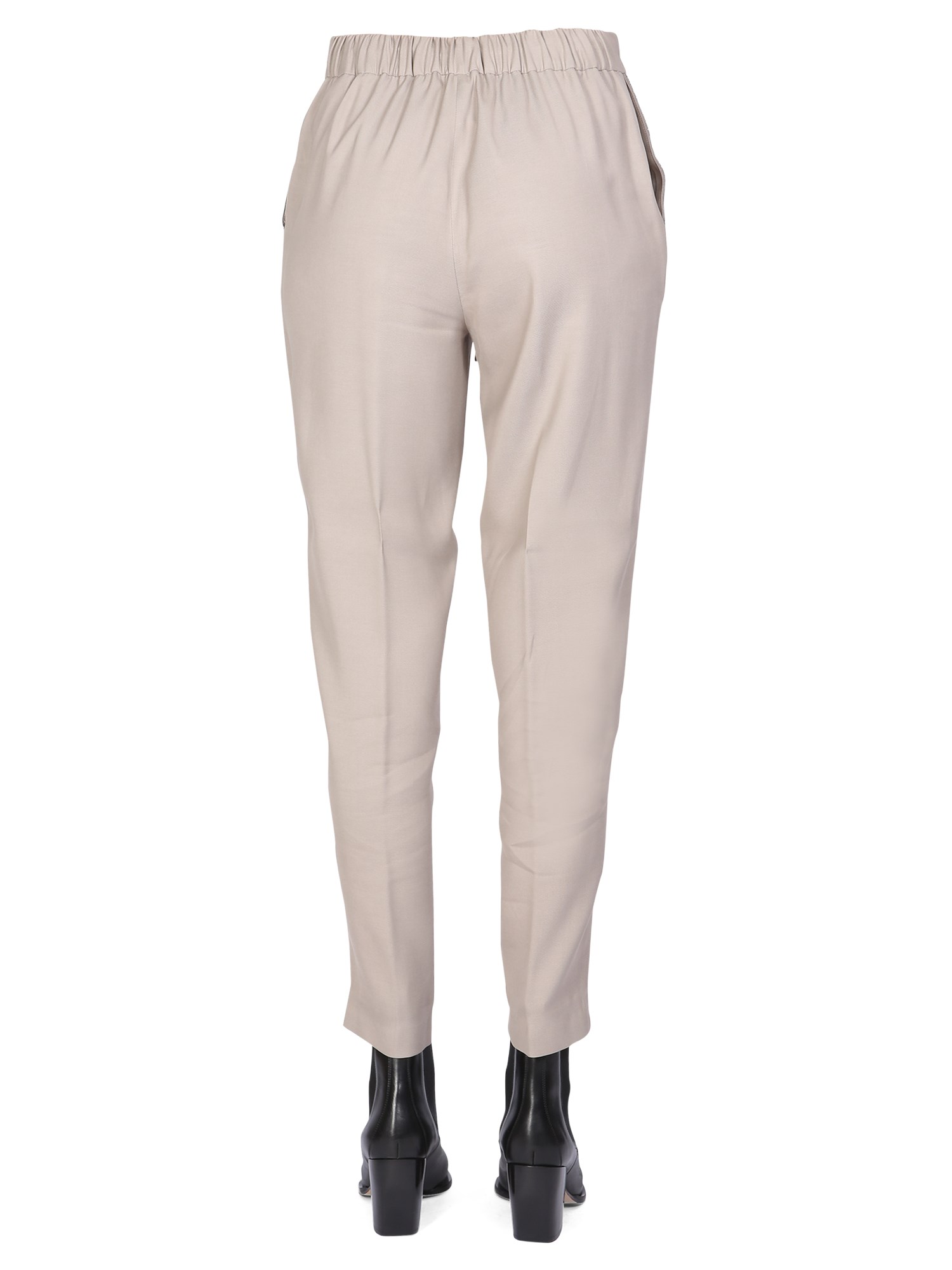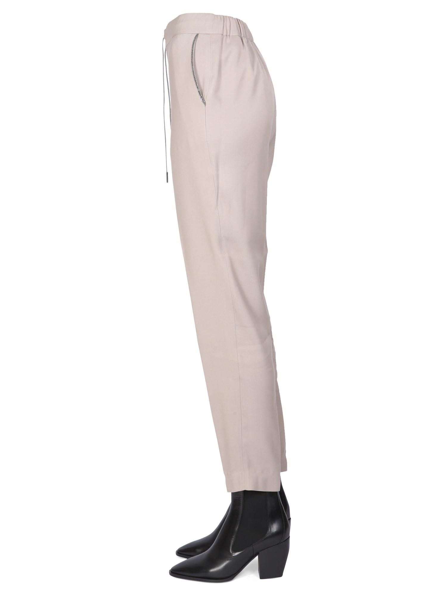 The viscose drawstring pants from the house of Fabiana Filippi are a versatile, chic piece that can be dressed up or down. The versatile nature of the piece allows you to wear it with a wide range of outfits. It features an elastic waistband with a drawstring and two side pockets.